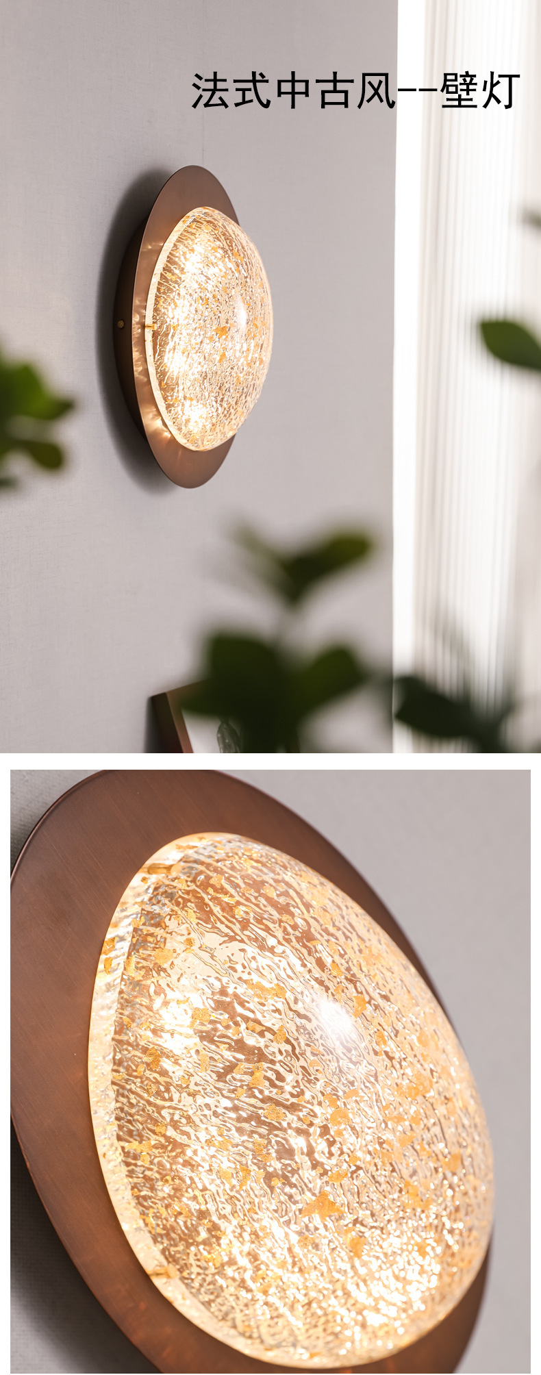 중간 호두 컬러 침대 옆 램프 프랑스 빈티지 수지 골드 호일 벽 램프 통로 배경 벽 장식 중산 램프
