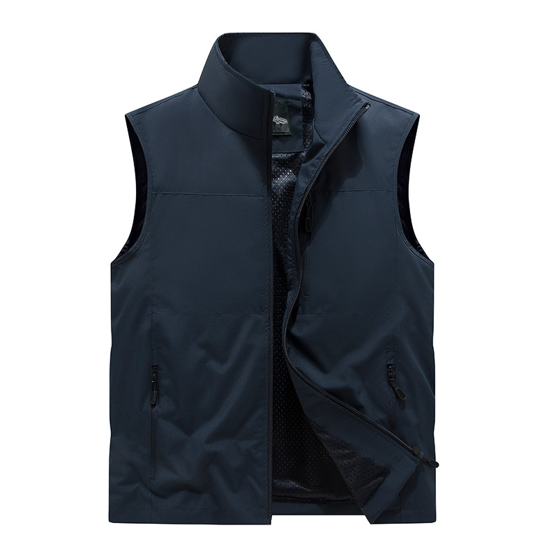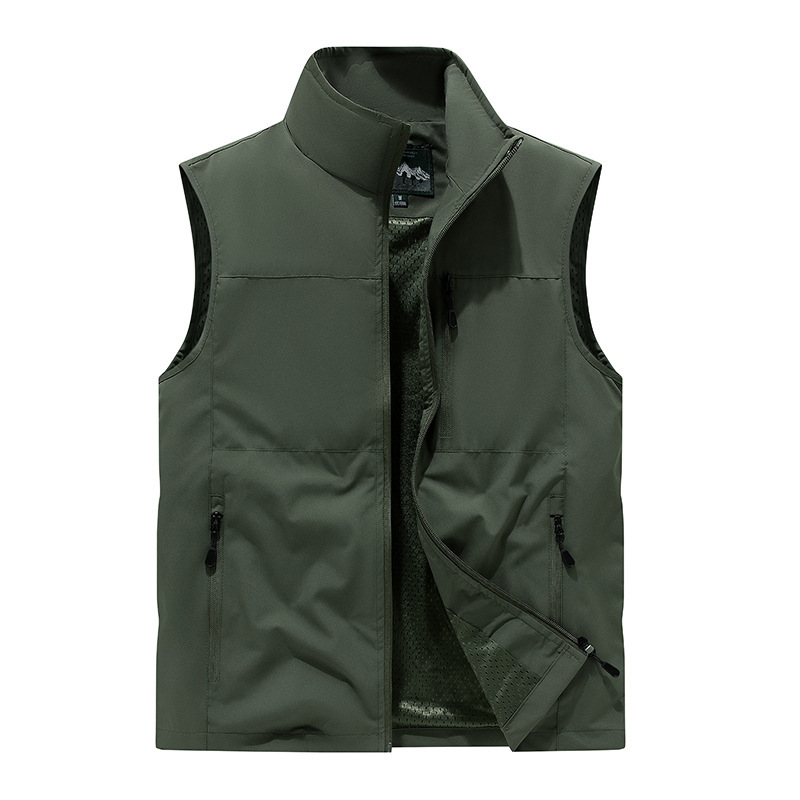 봄 새로운 캐주얼 통기성 조끼 야외 사진 낚시 스포츠 남성 카디건 스탠드 칼라 로고 양복 조끼스토어 가기