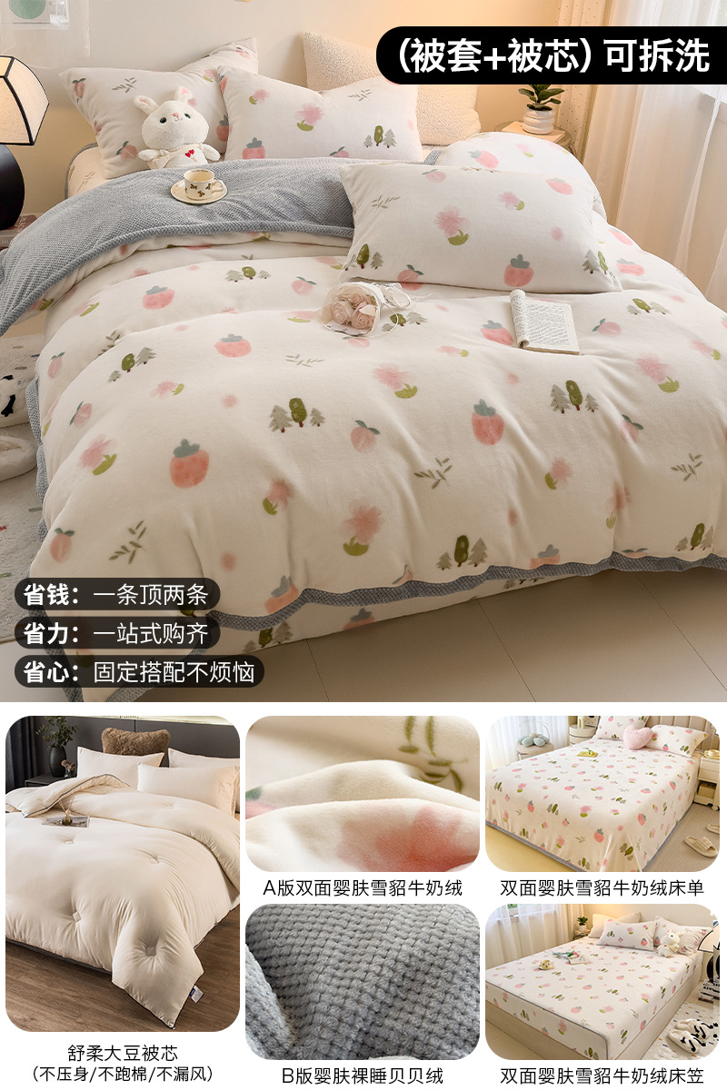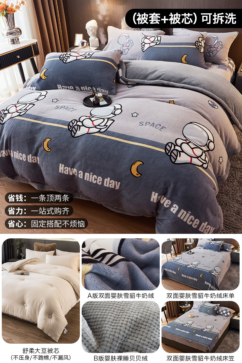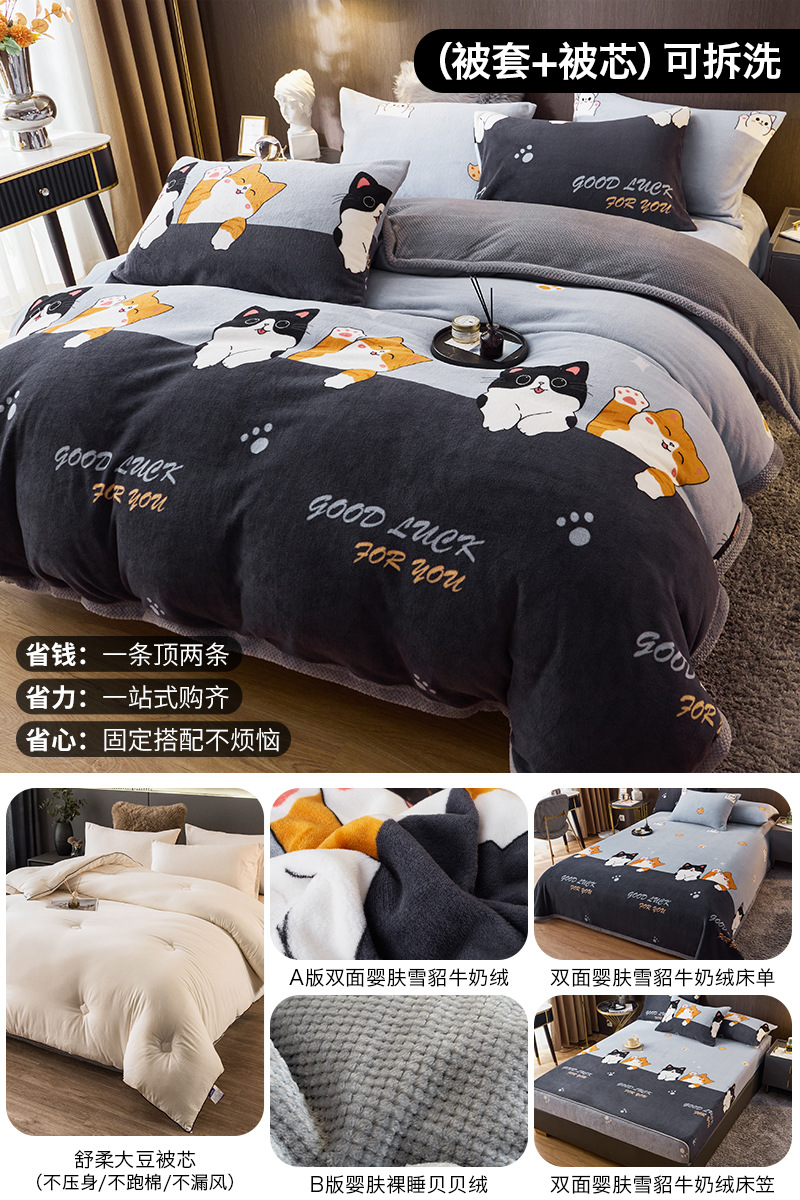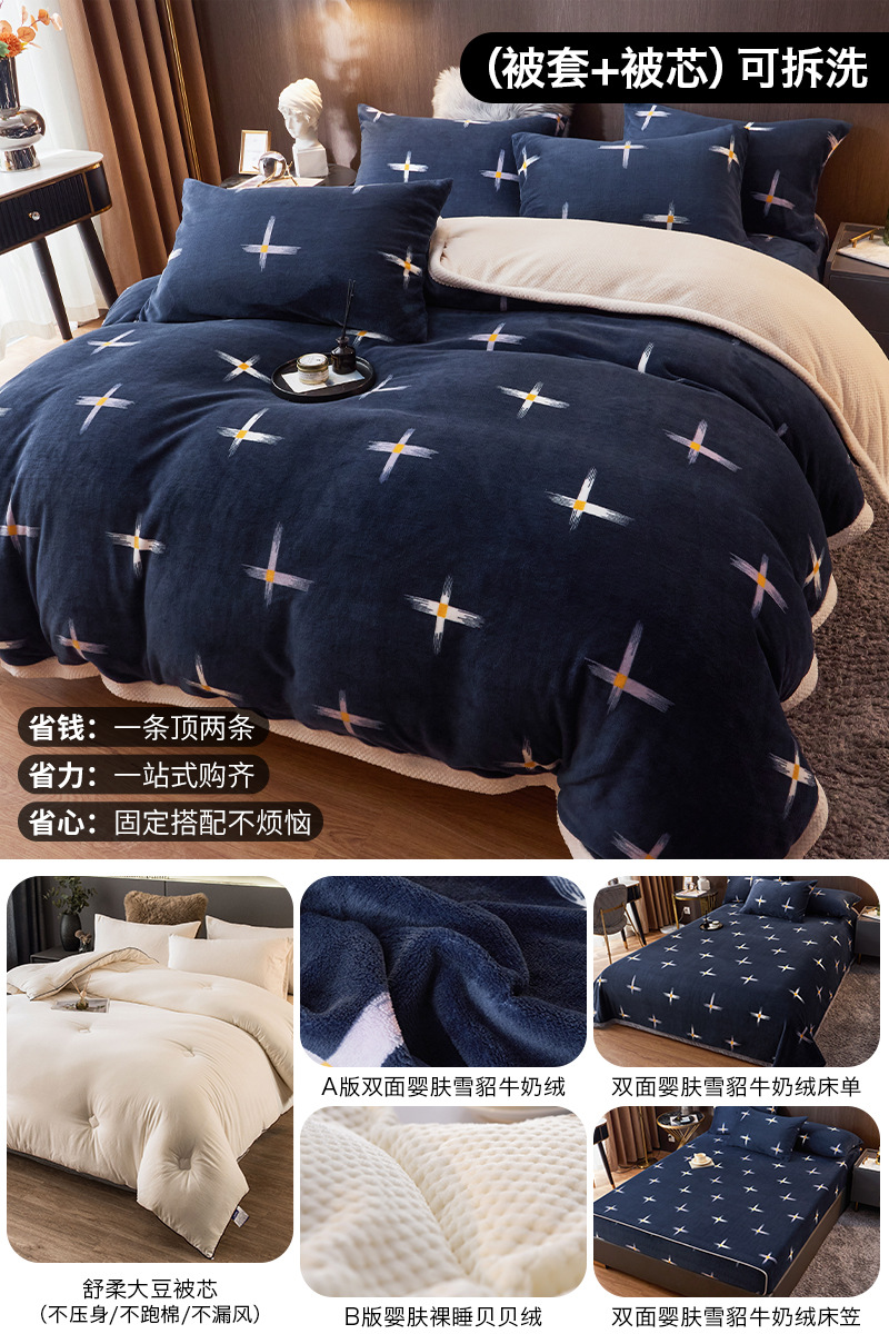 겨울 퀼트 4 피스 퀼트 코어 퀼트는 2025 년 새로운 두꺼운 따뜻한 면화 퀼트 산호 양털 가을 도매 전체 세트