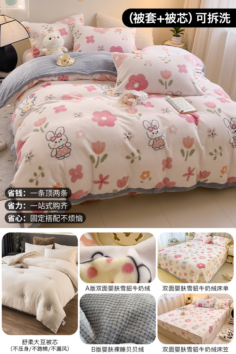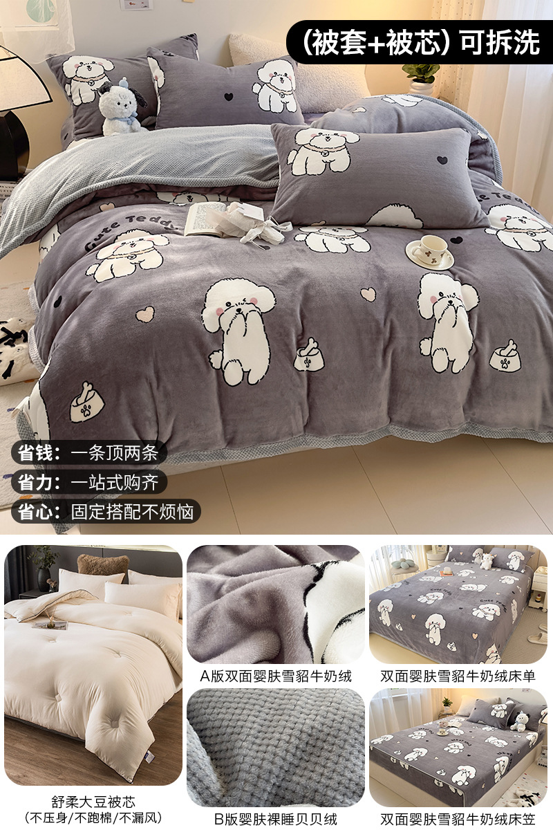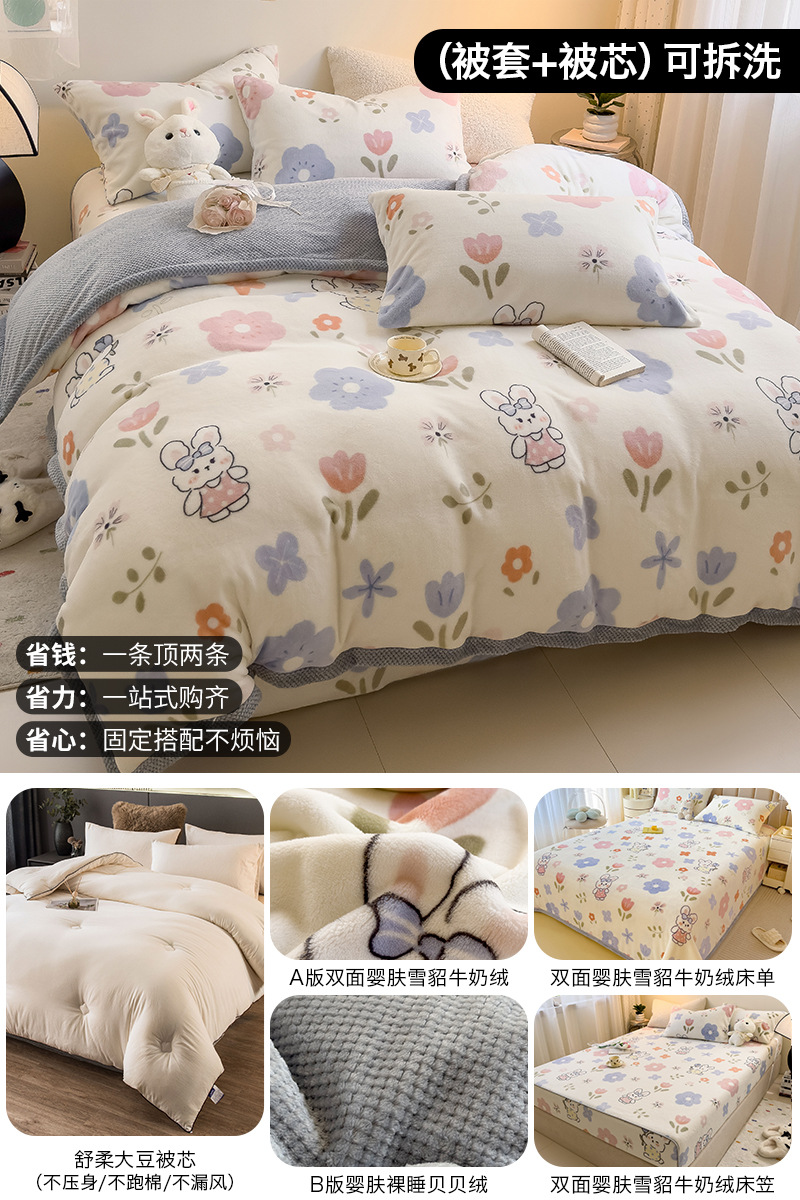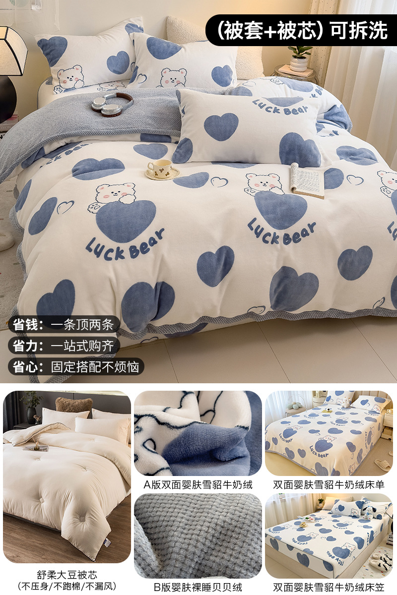 겨울 퀼트 4 피스 퀼트 코어 퀼트는 2025 년 새로운 두꺼운 따뜻한 면화 퀼트 산호 양털 가을 도매 전체 세트