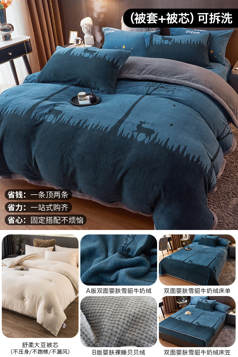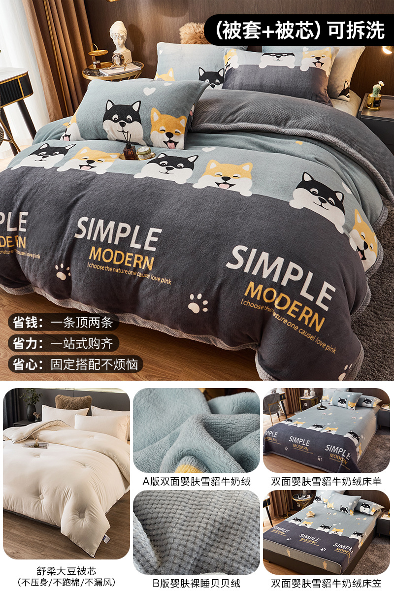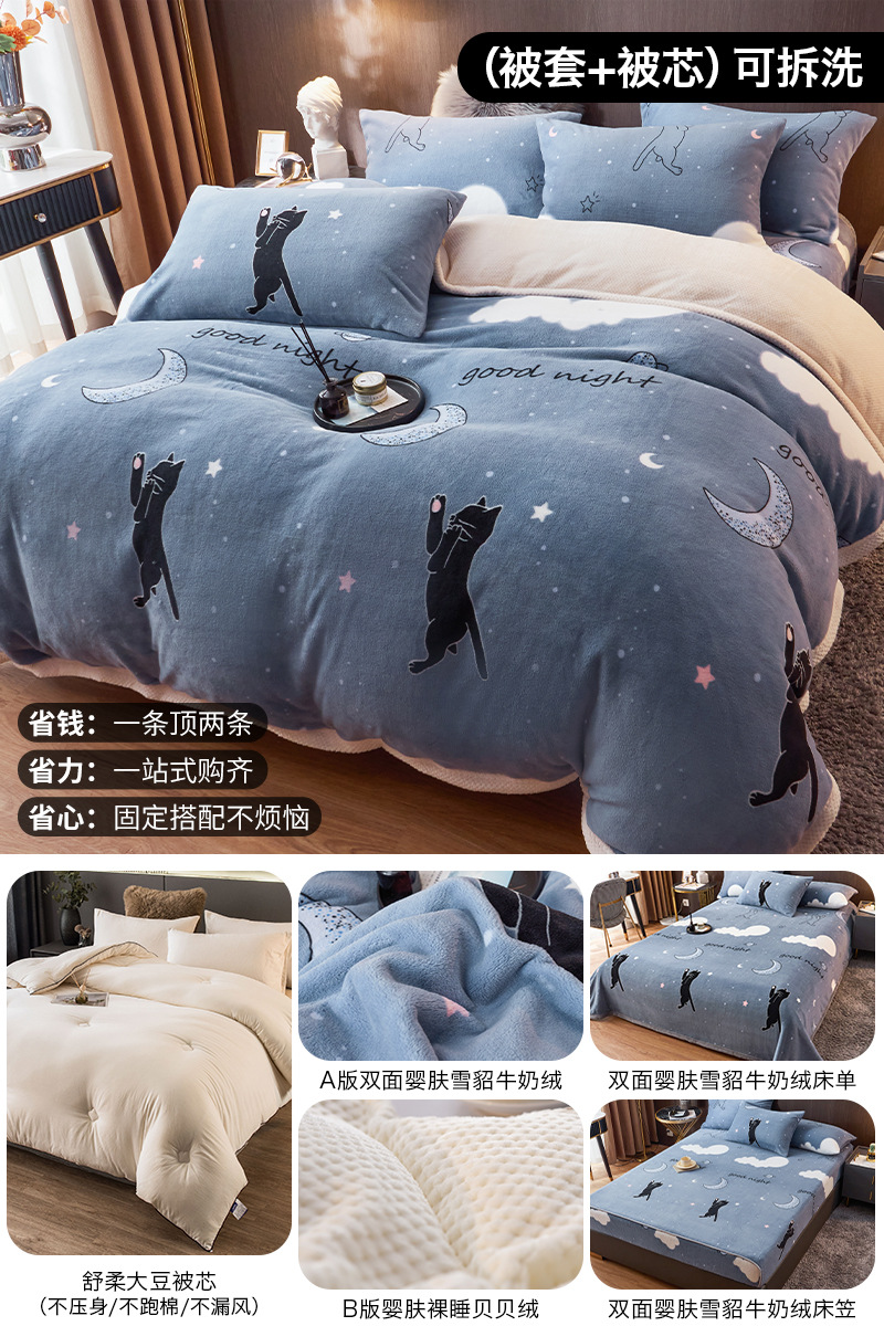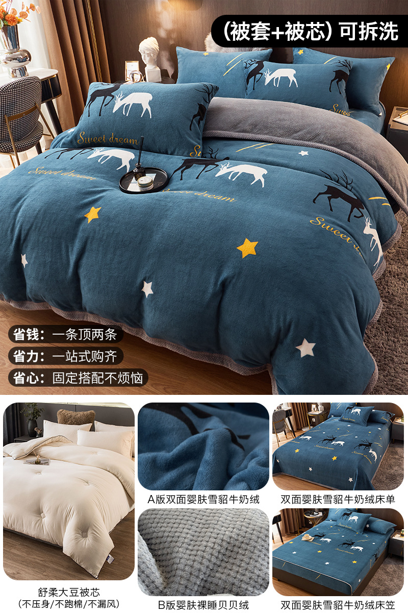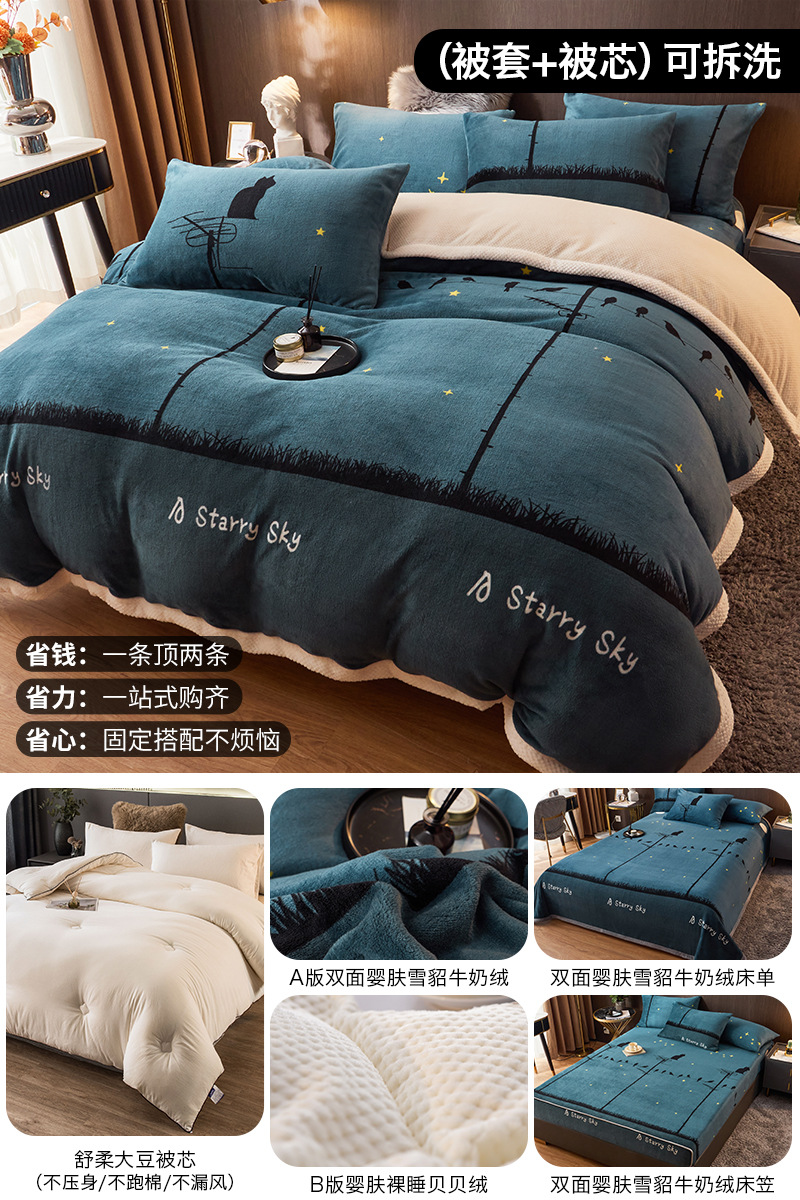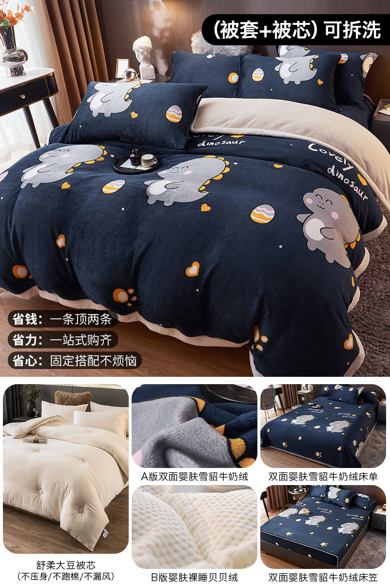 겨울 퀼트 4 피스 퀼트 코어 퀼트는 2025 년 새로운 두꺼운 따뜻한 면화 퀼트 산호 양털 가을 도매 전체 세트스토어 가기