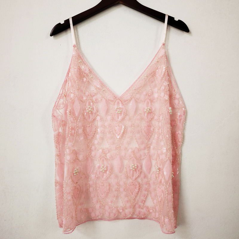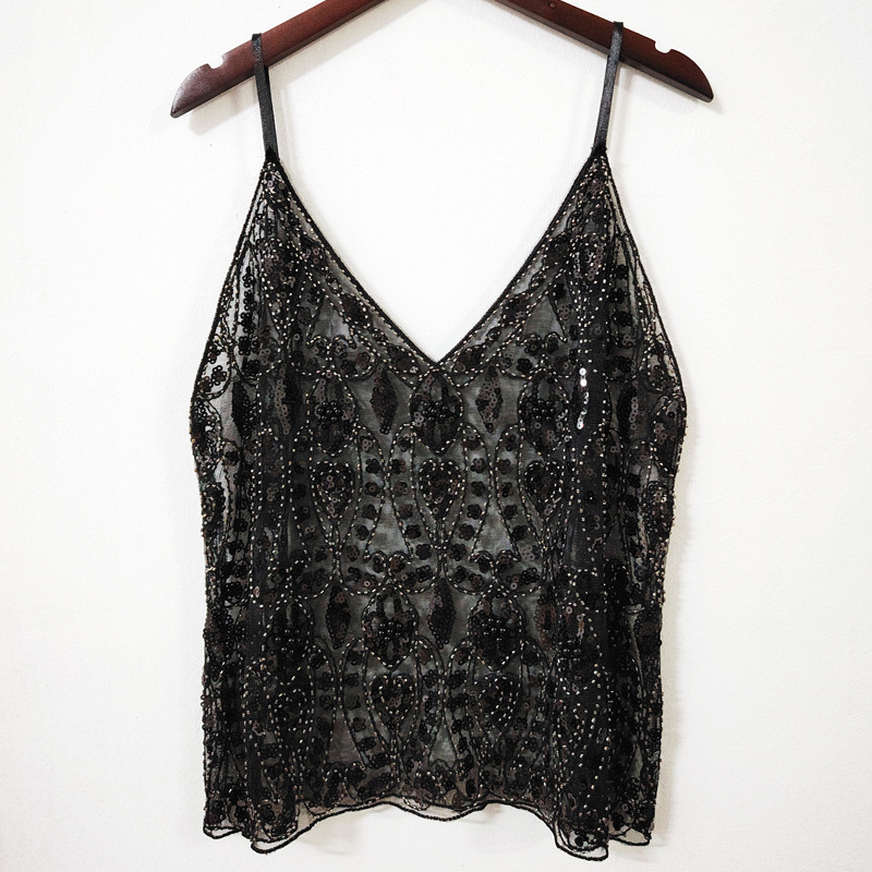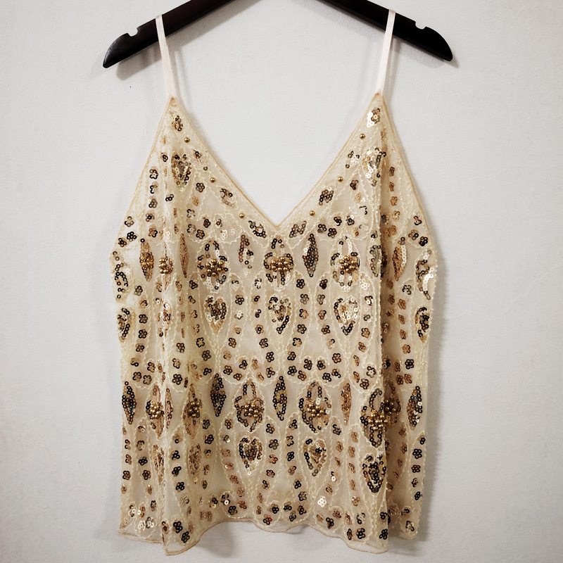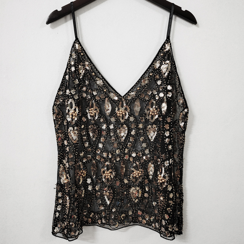 여름 세퀸 비즈 섹시한 슬림 짧은 V 넥 조끼 여성의 우아한 국경 아마존스토어 가기