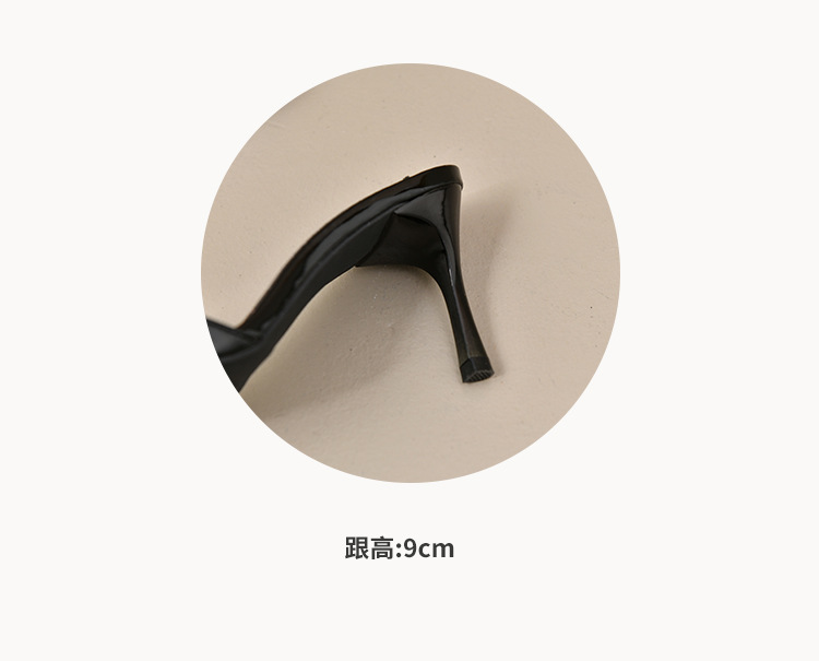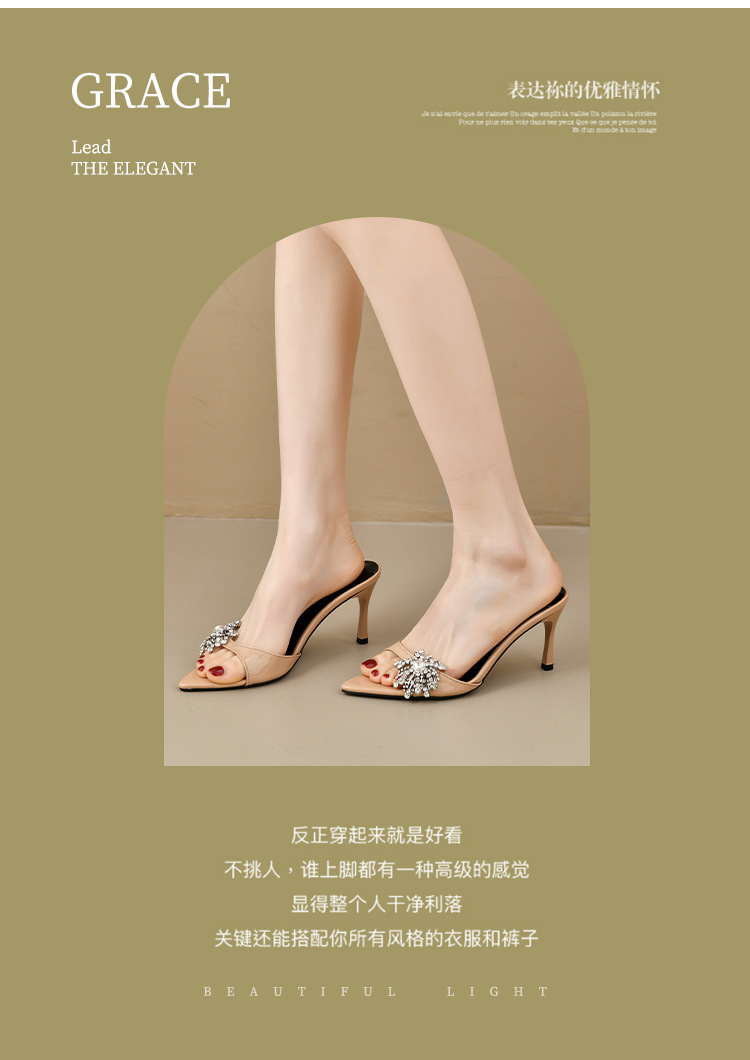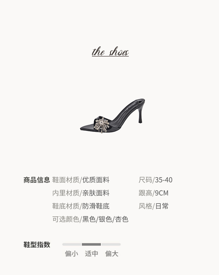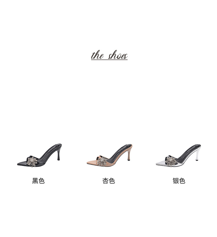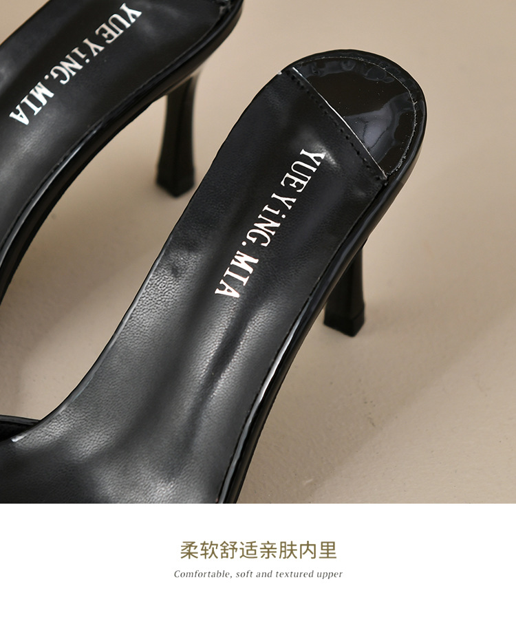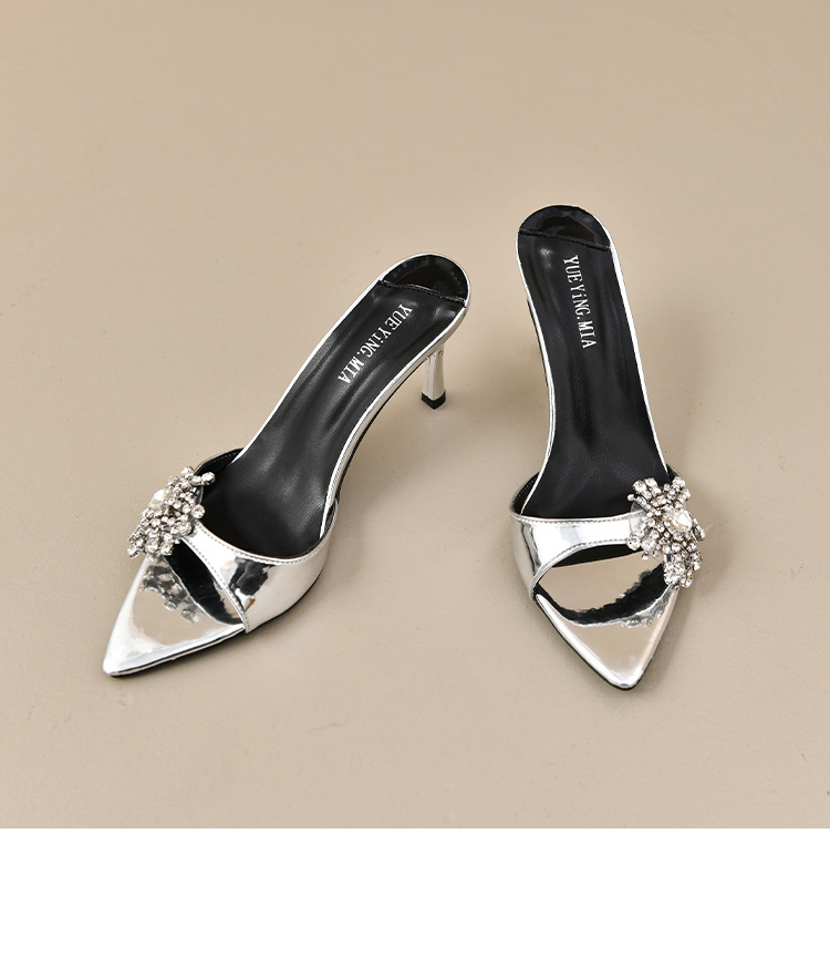 2025 년 새로운 여름 프랑스 특허 가죽 술 라인스톤 하이힐 샌들 여성용 블랙 슬리퍼 여성용 아우터웨어