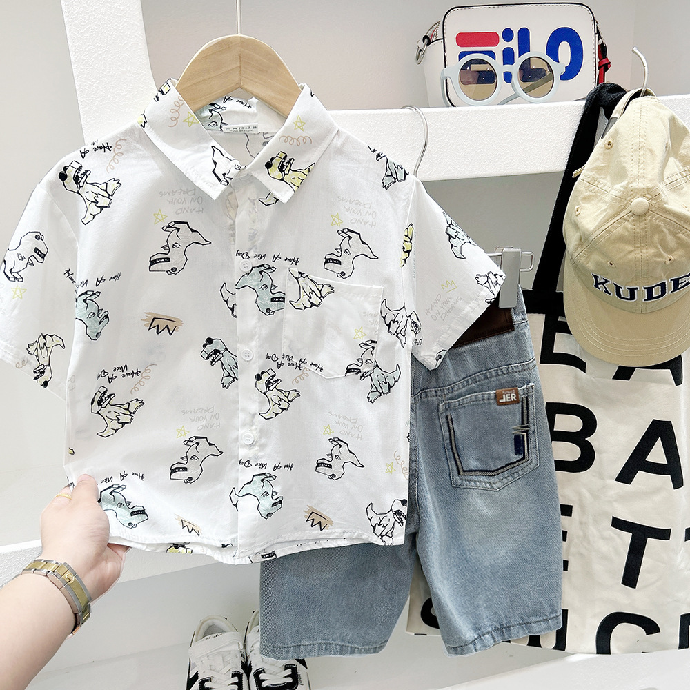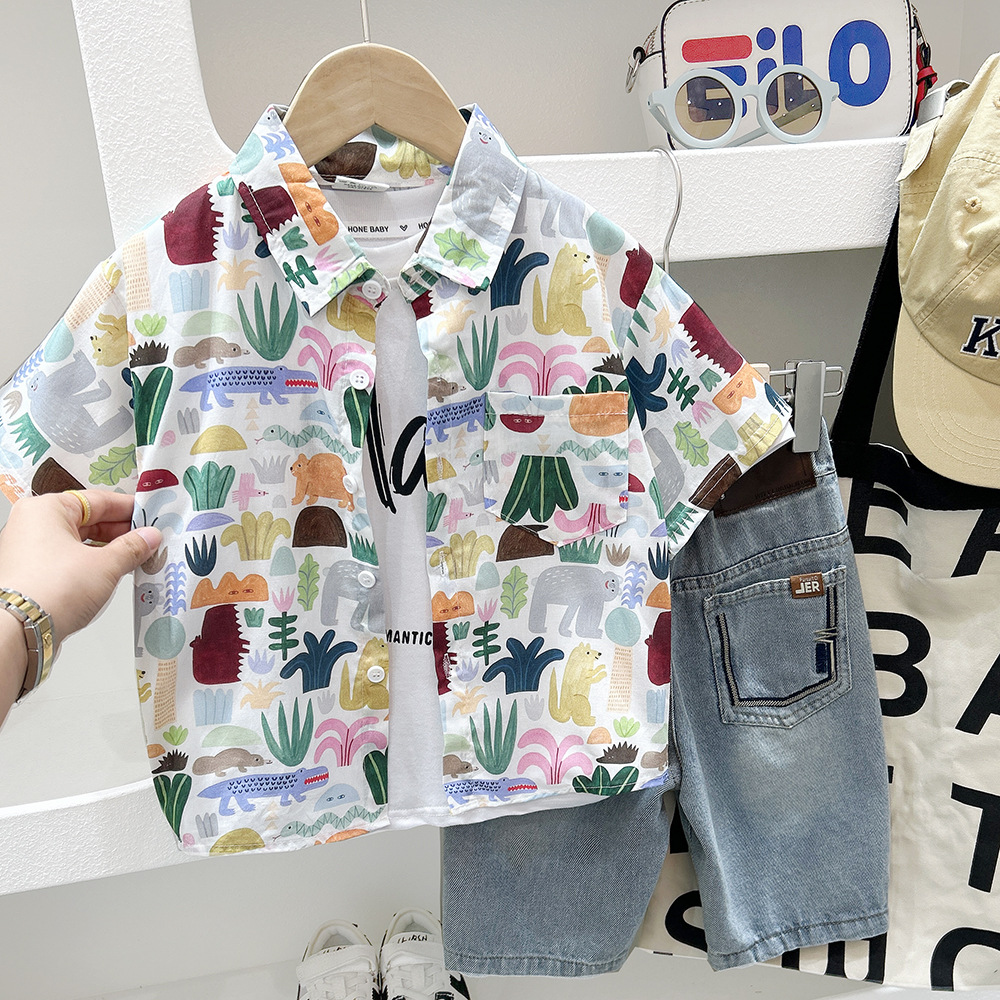 소년 여름 반팔 셔츠 2025 새로운 어린이 카디건 아기 만화 셔츠 캐주얼 느슨한 반소매 탑스토어 가기
