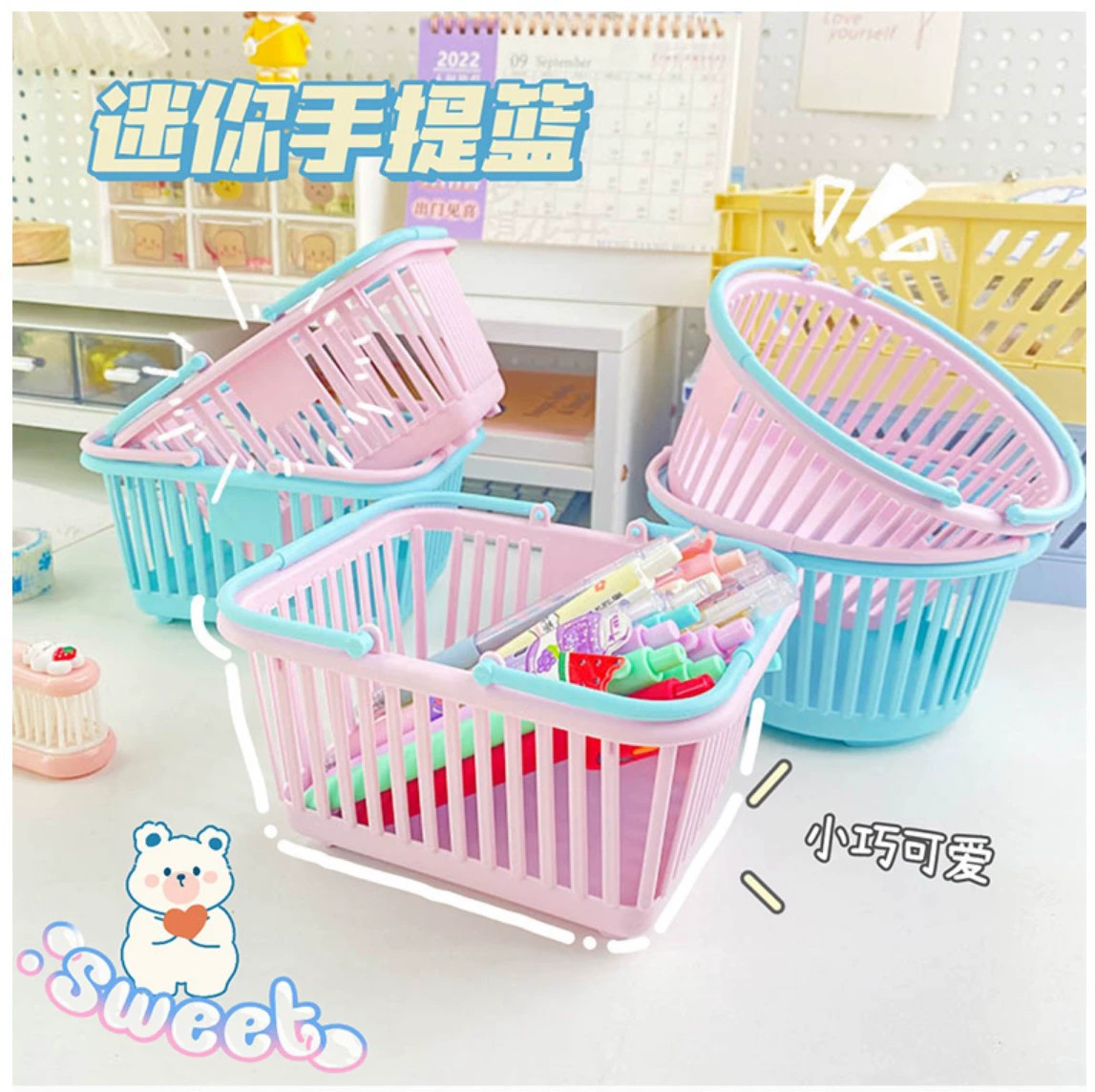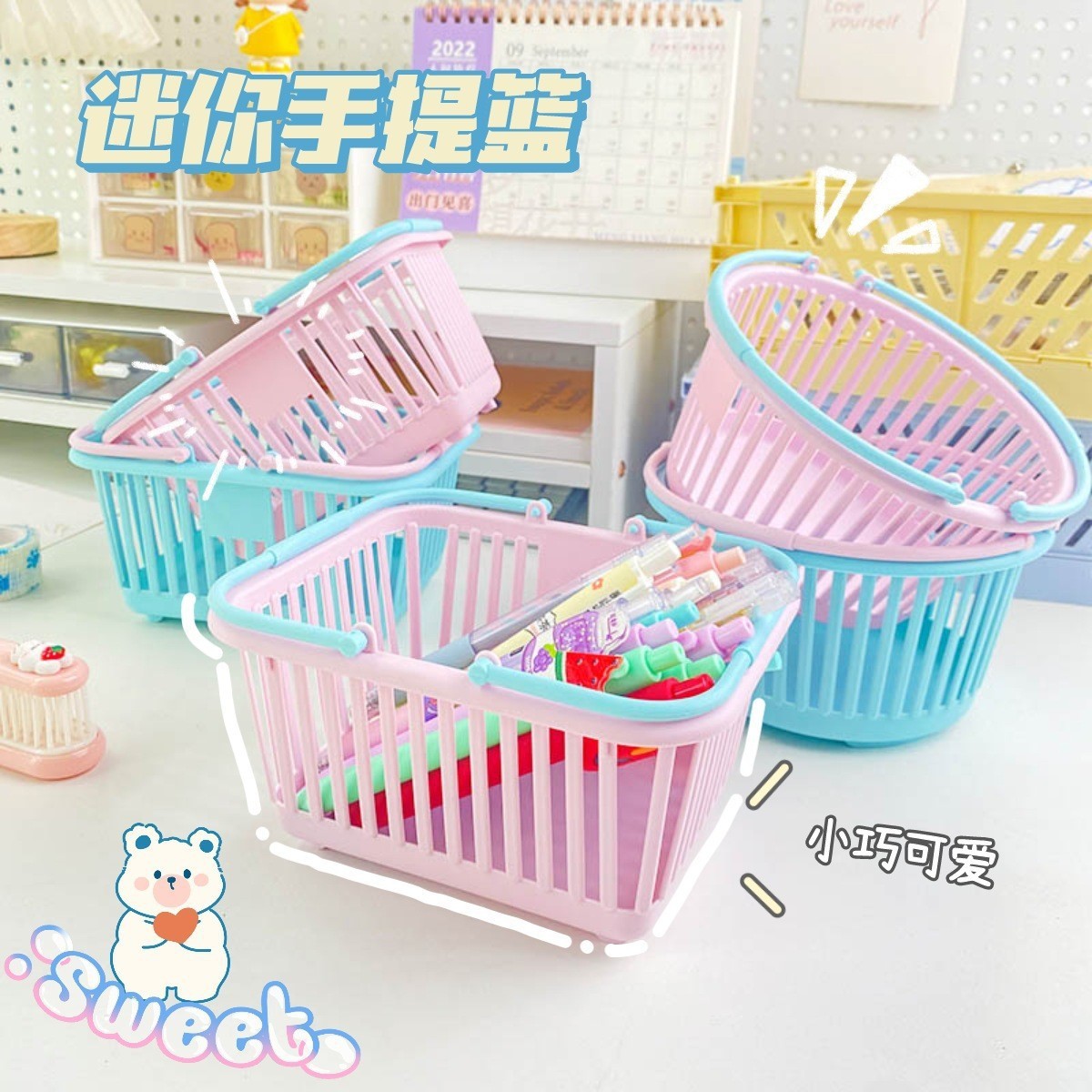 소형 소형 바구니 데스크탑 화장품 보관 바구니 학생 문구 깔끔한 상자 과수원 따기 휴대용 저장 바구니스토어 가기
