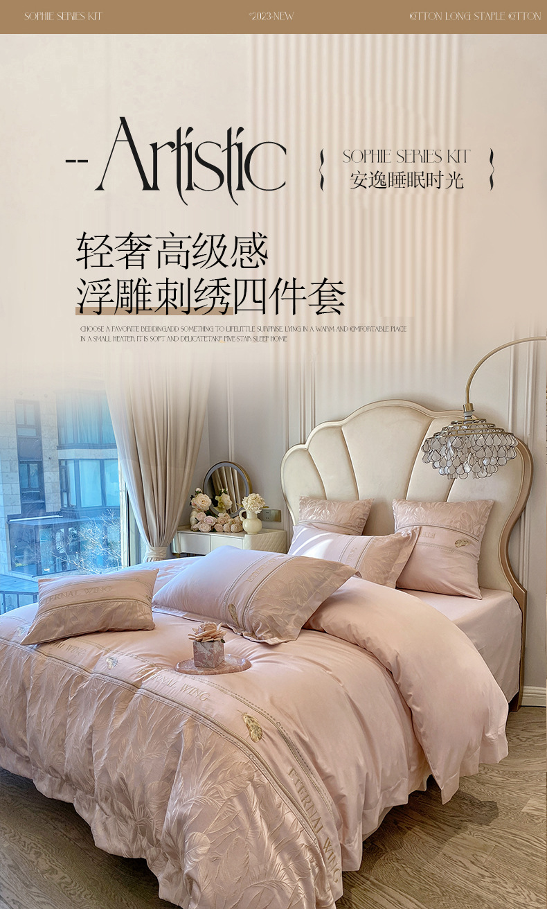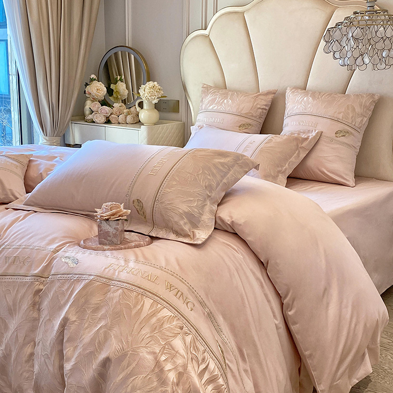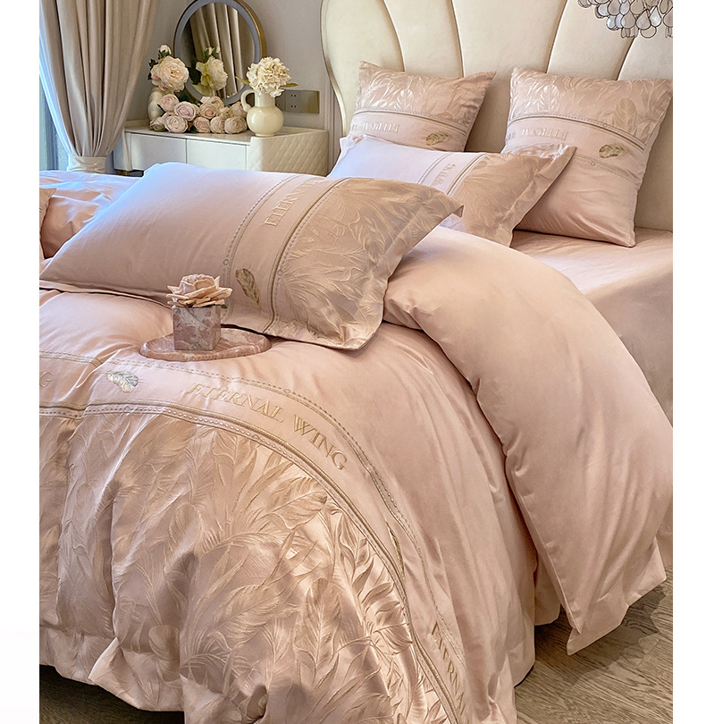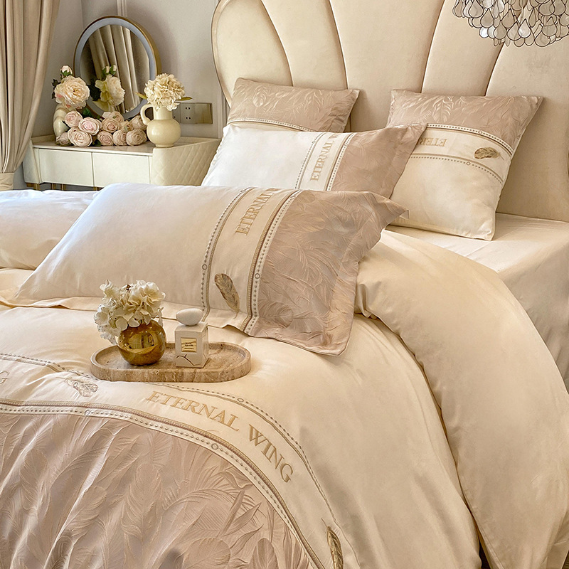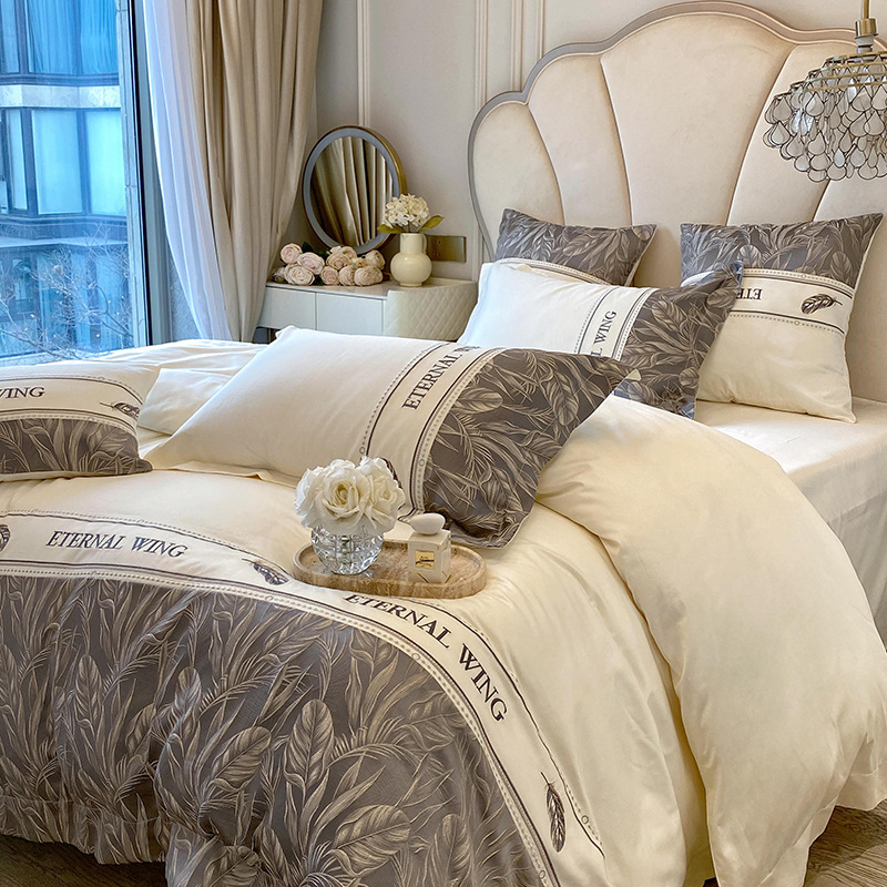 2025 새로운 클래스 빗질면 고급 구호 자수 4 종 세트 잎 깃털 1.8m 침대 시트 4 종 세트