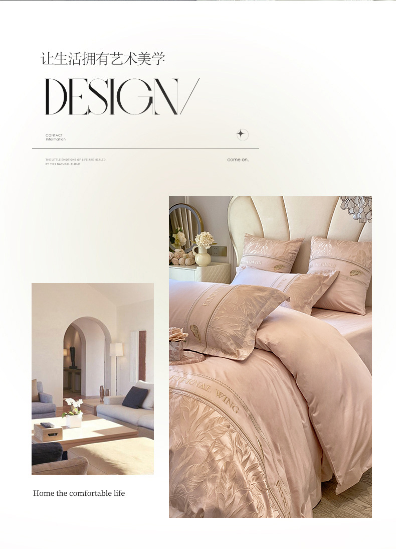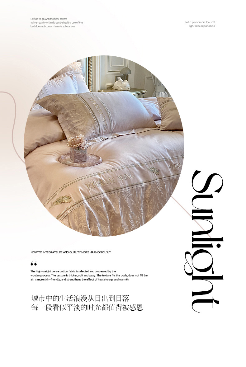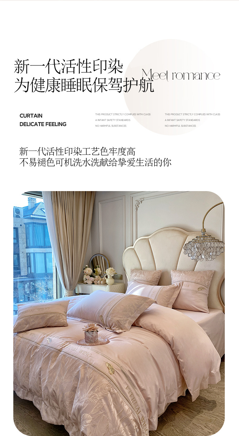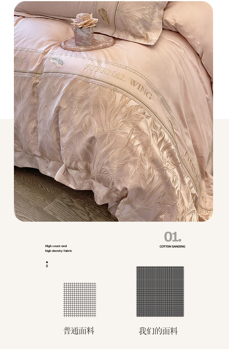 2025 새로운 클래스 빗질면 고급 구호 자수 4 종 세트 잎 깃털 1.8m 침대 시트 4 종 세트스토어 가기