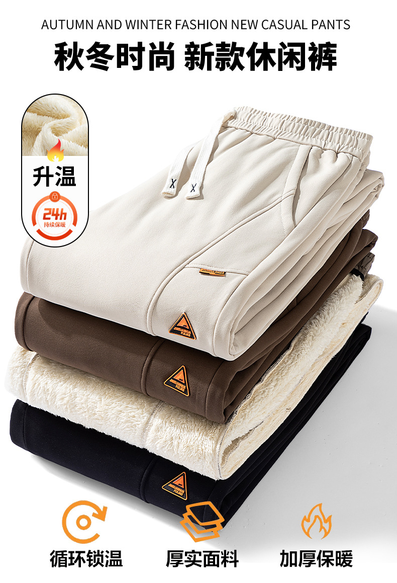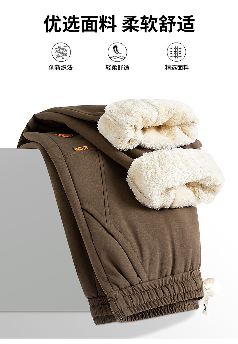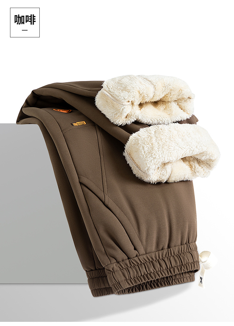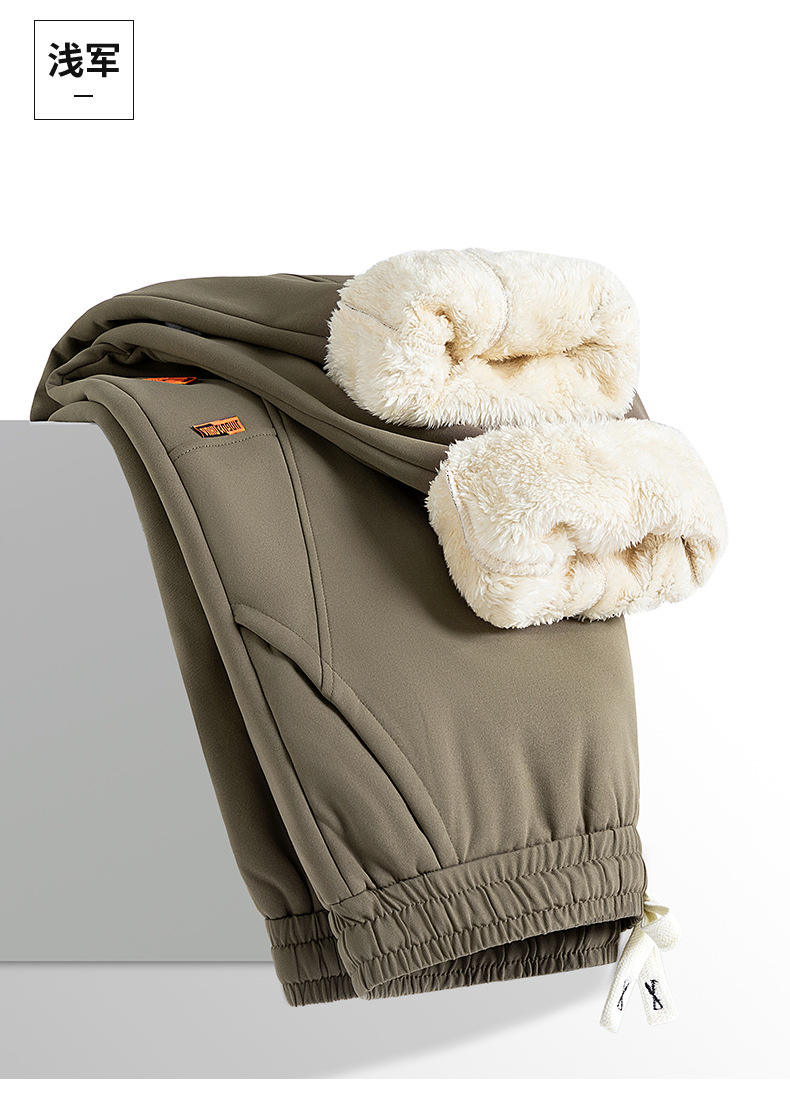 2025 가을과 겨울 새로운 캐주얼 바지 양고기 벨벳 겨울 기모 두꺼운 스포츠 바지 빛 카키 재고 한국어 버전