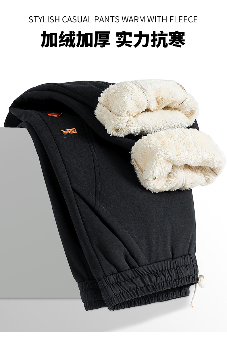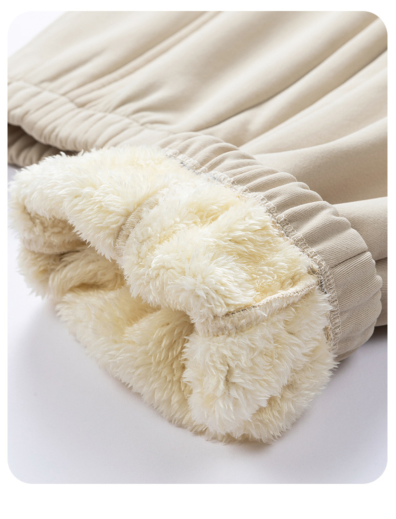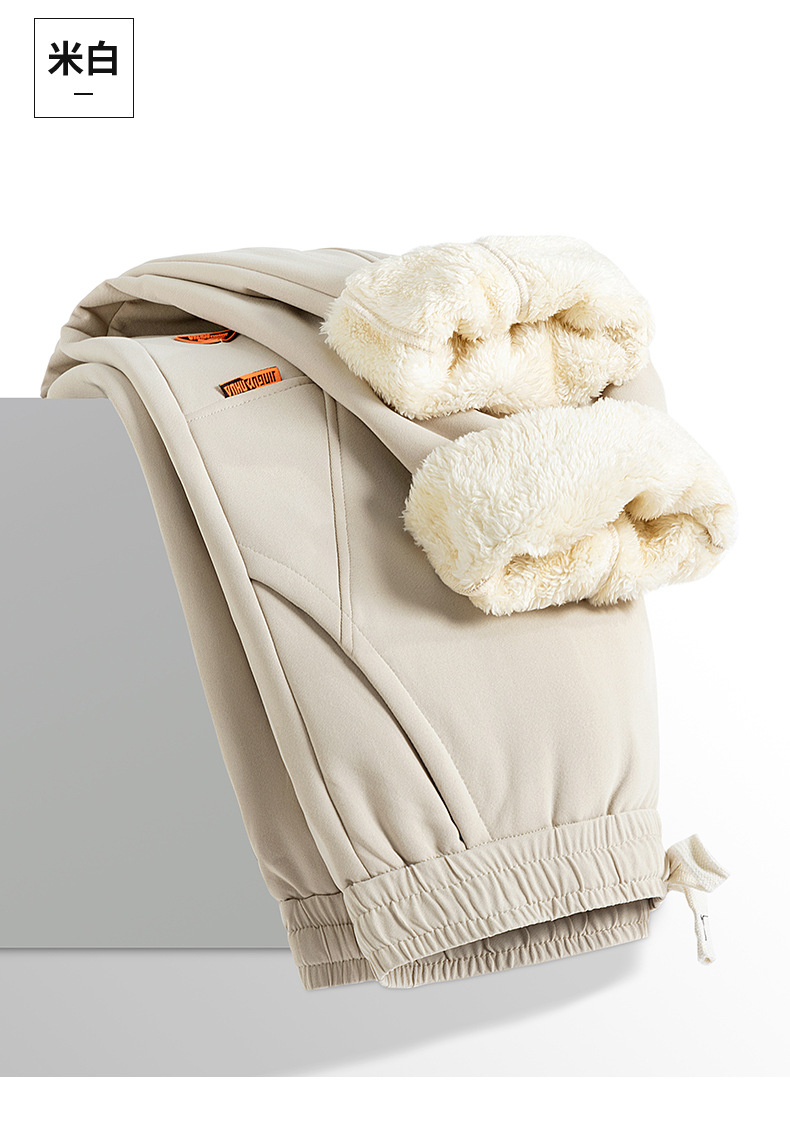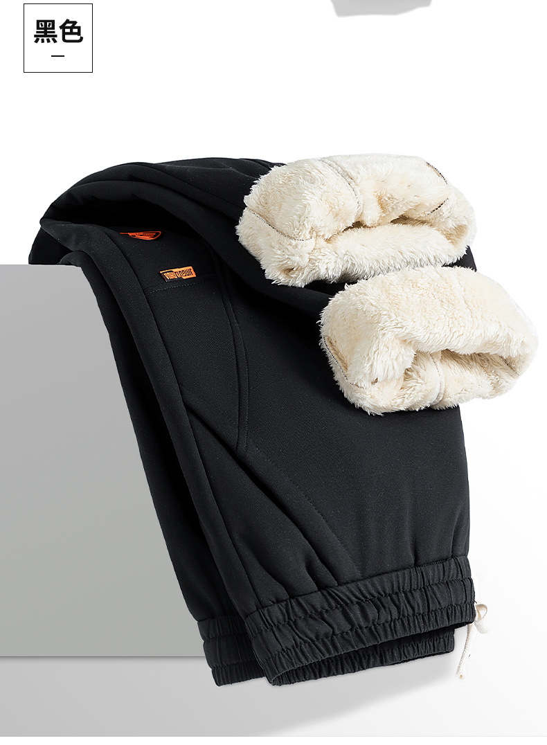 2025 가을과 겨울 새로운 캐주얼 바지 양고기 벨벳 겨울 기모 두꺼운 스포츠 바지 빛 카키 재고 한국어 버전