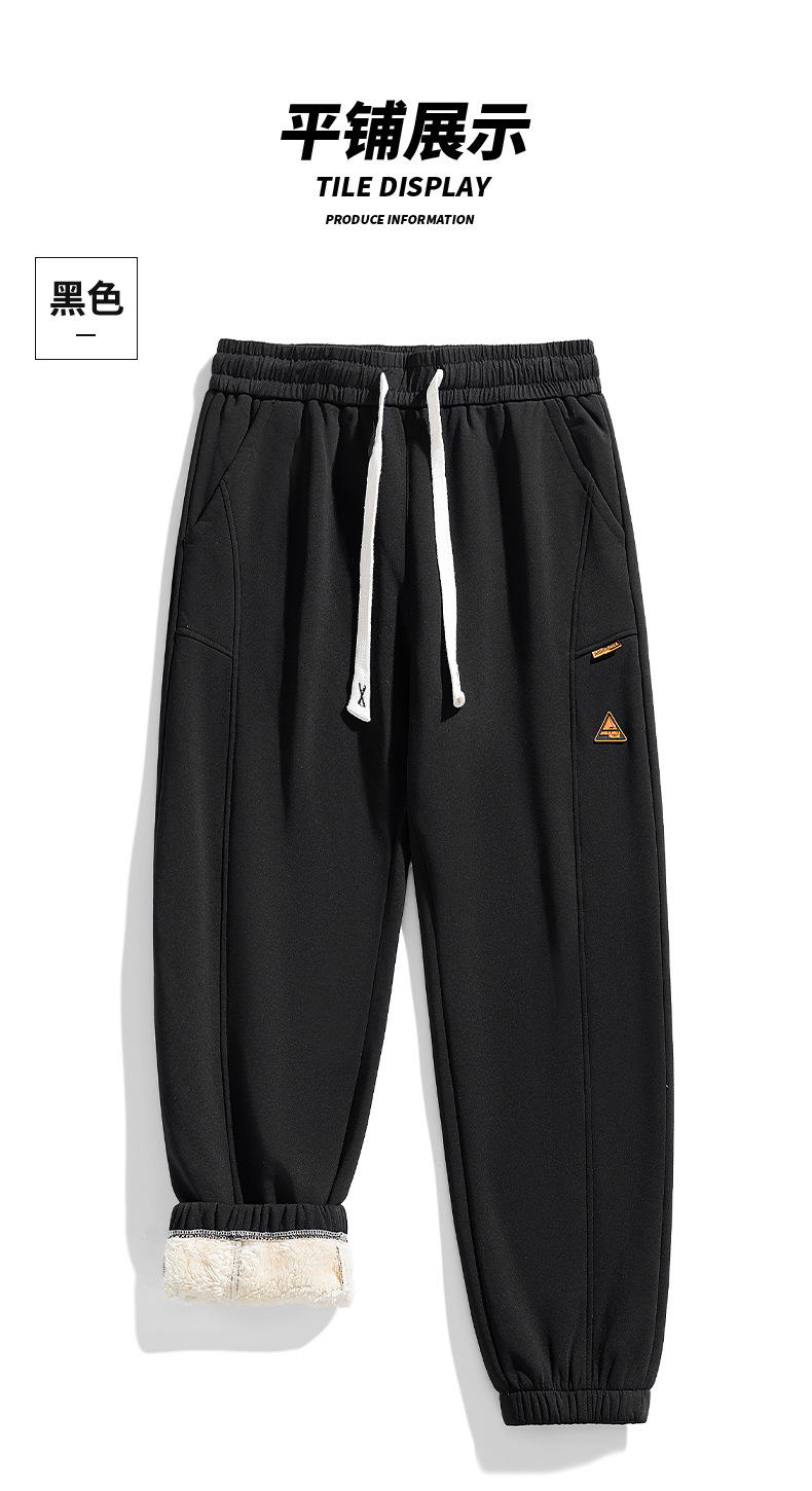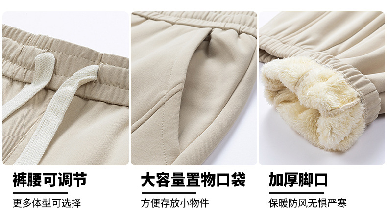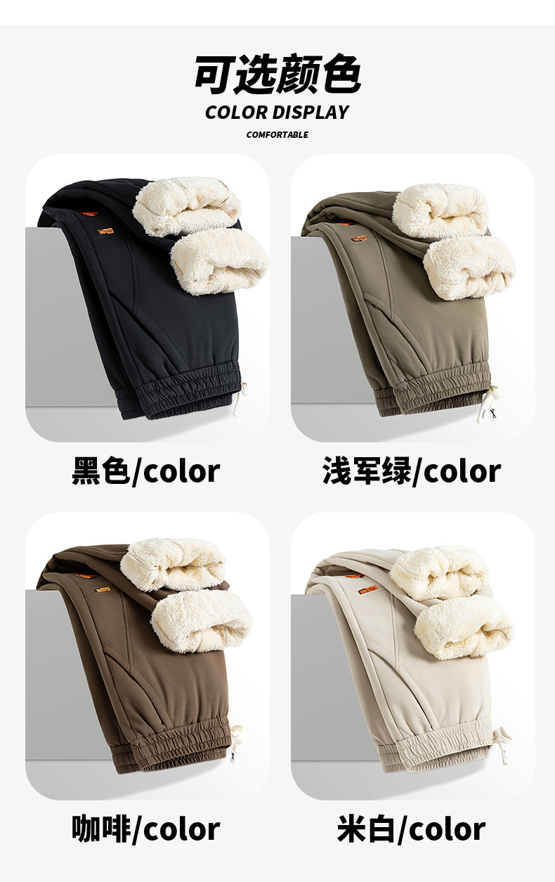 2025 가을과 겨울 새로운 캐주얼 바지 양고기 벨벳 겨울 기모 두꺼운 스포츠 바지 빛 카키 재고 한국어 버전스토어 가기