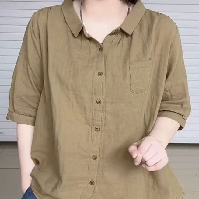 아마존 2025 여름 새로운 하프 슬리브 셔츠 여성 한국 버전 올 매치 연령 감소 느슨한 탑 도매