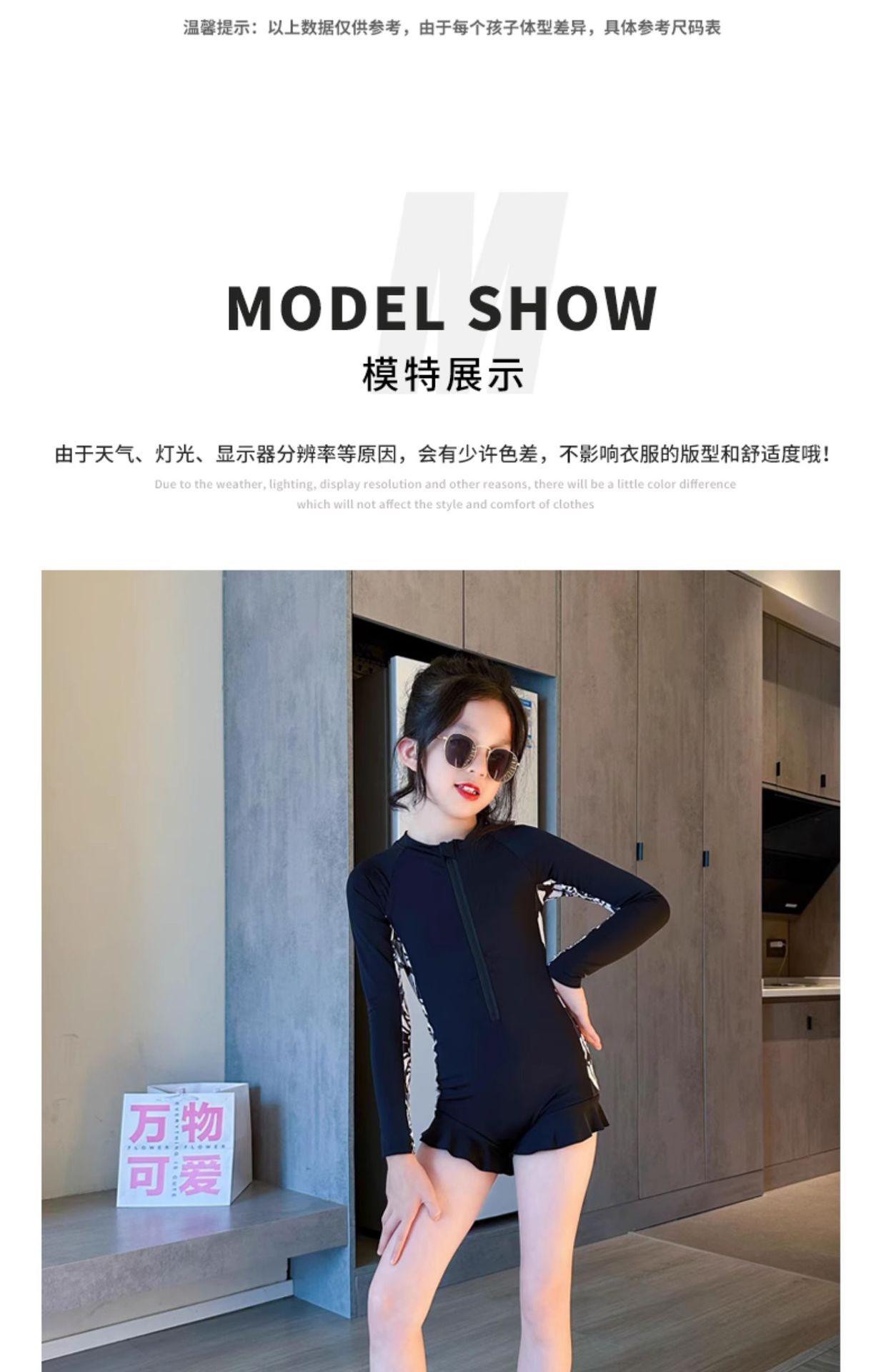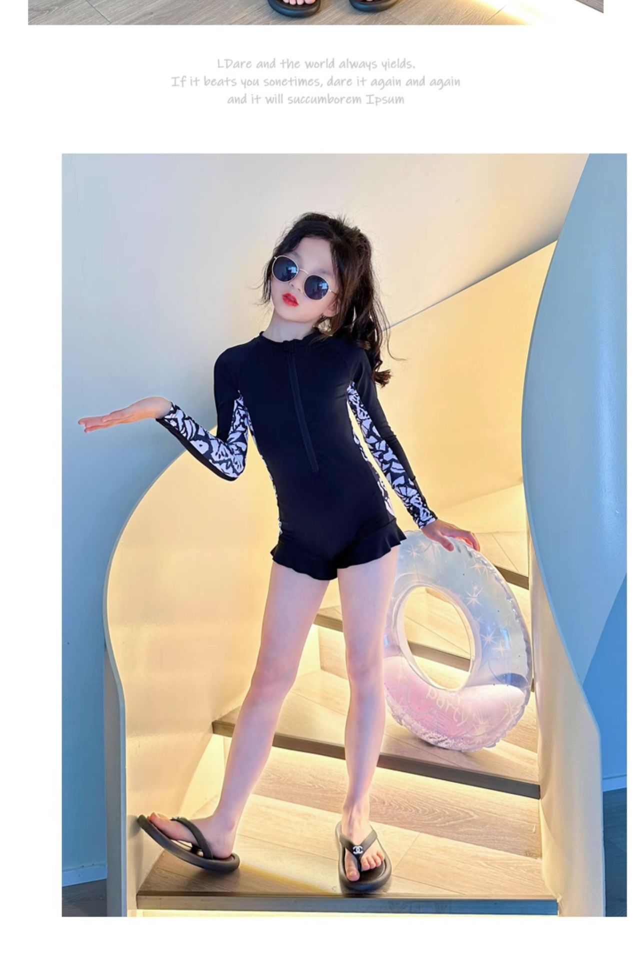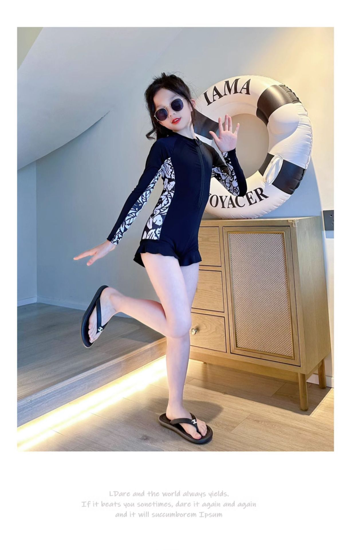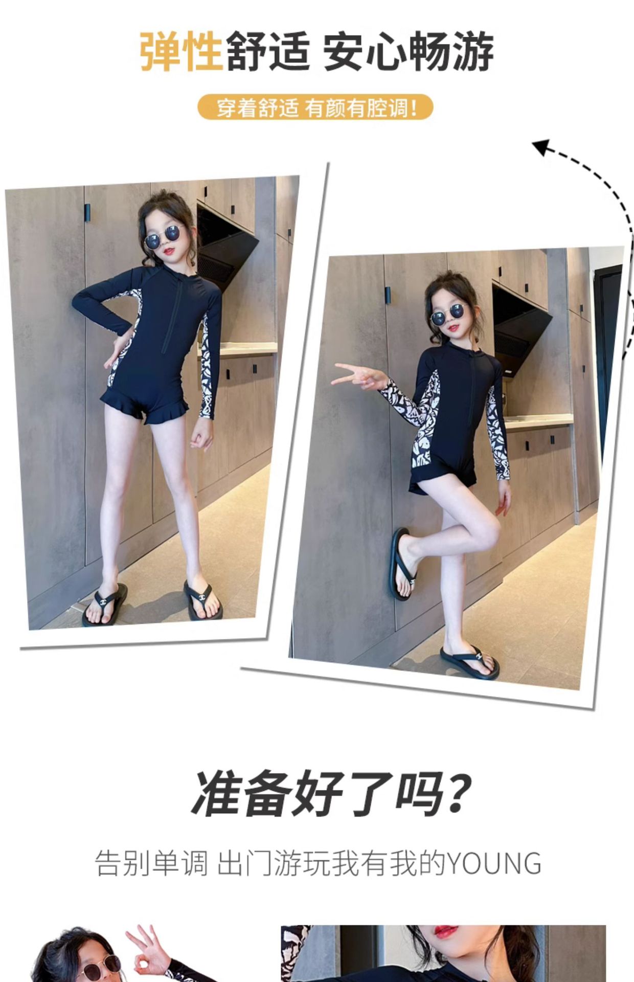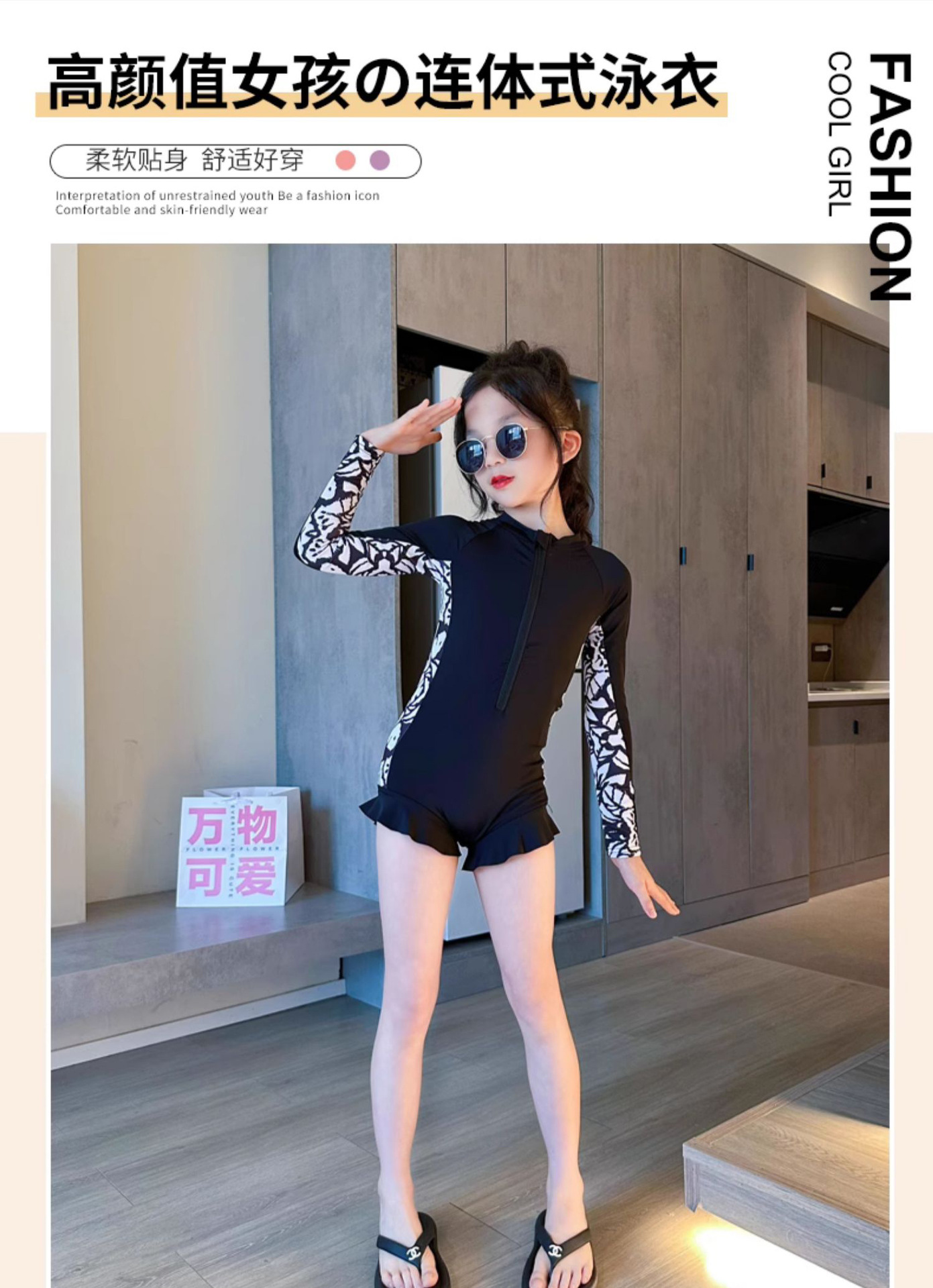 소녀수영복 어린이 긴팔 수영복 긴팔 대형어린이 2025 새 10 살 소녀 원피스 수영복 선스크린스토어 가기