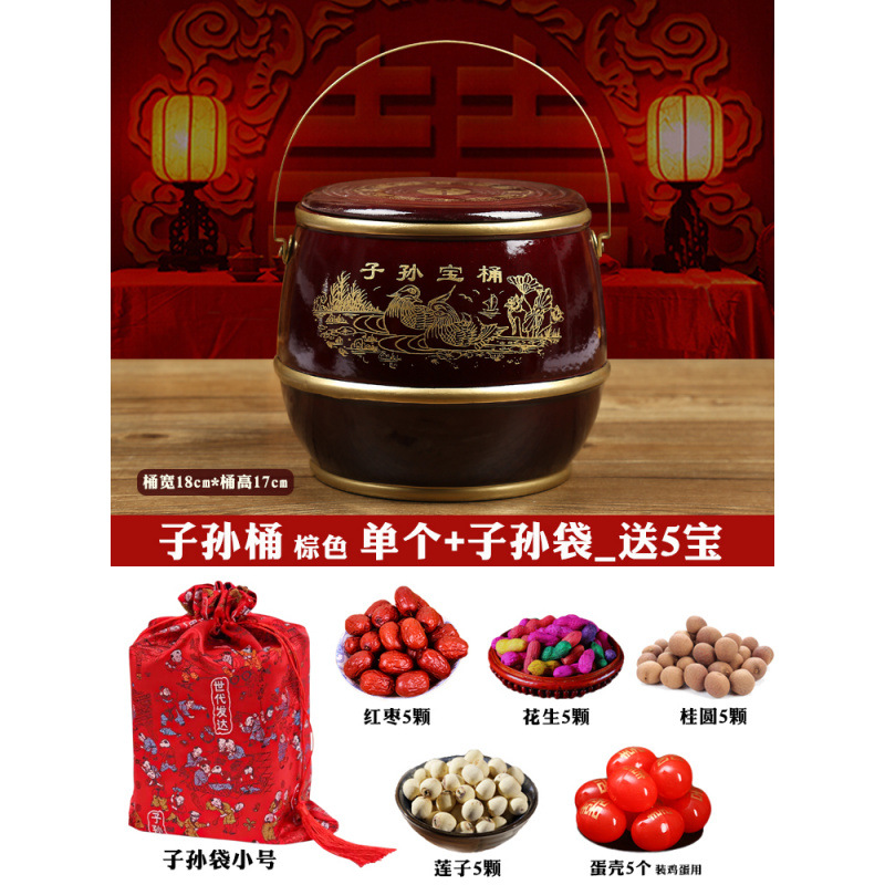 • 붉은 원목 싱글 배럴 + 후손 가방 [보물 5개 무료]