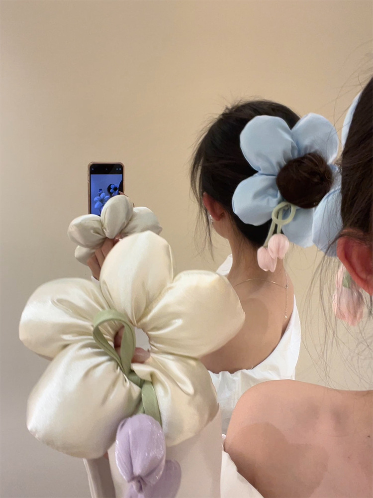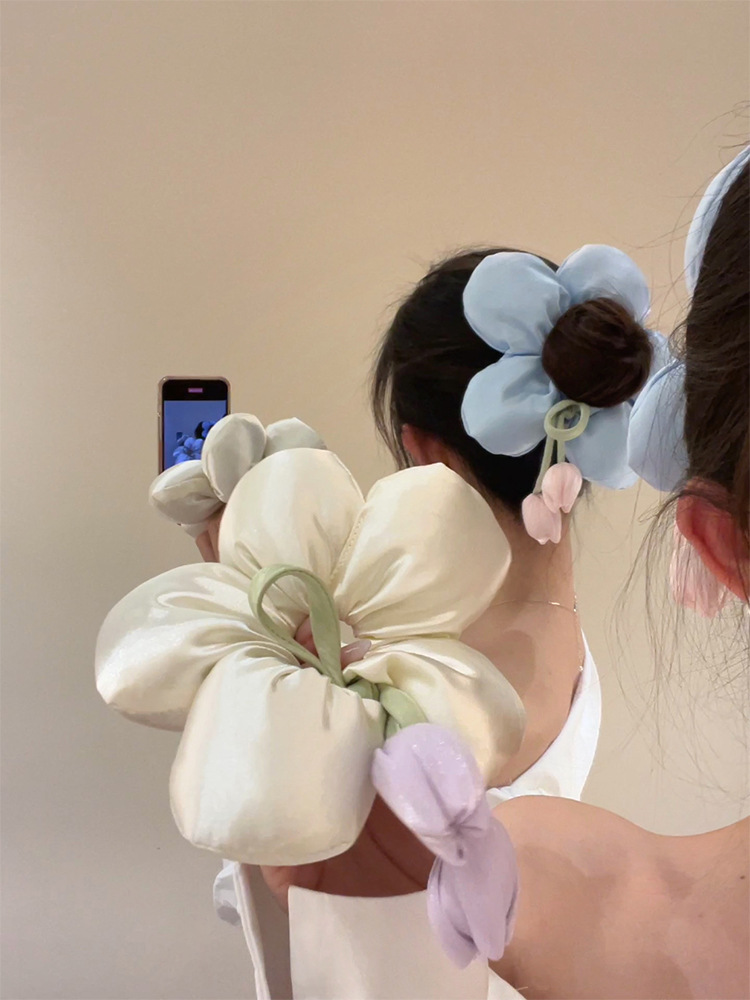 봄 ~ 스폰지 3 차원 튤립 리본 대형 장내 머리 반지 여성 꽃 머리 밧줄 공 머리 액세서리 머리 밧줄 보기
