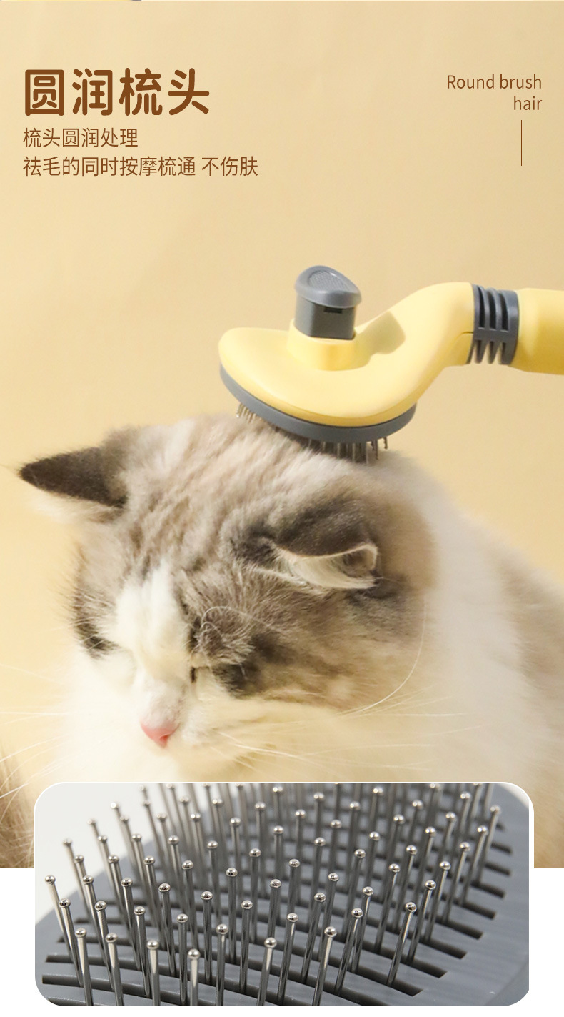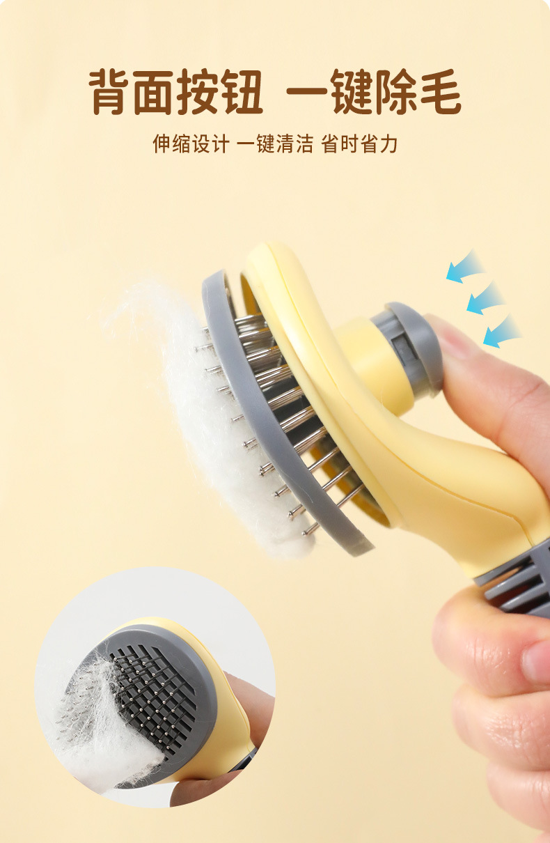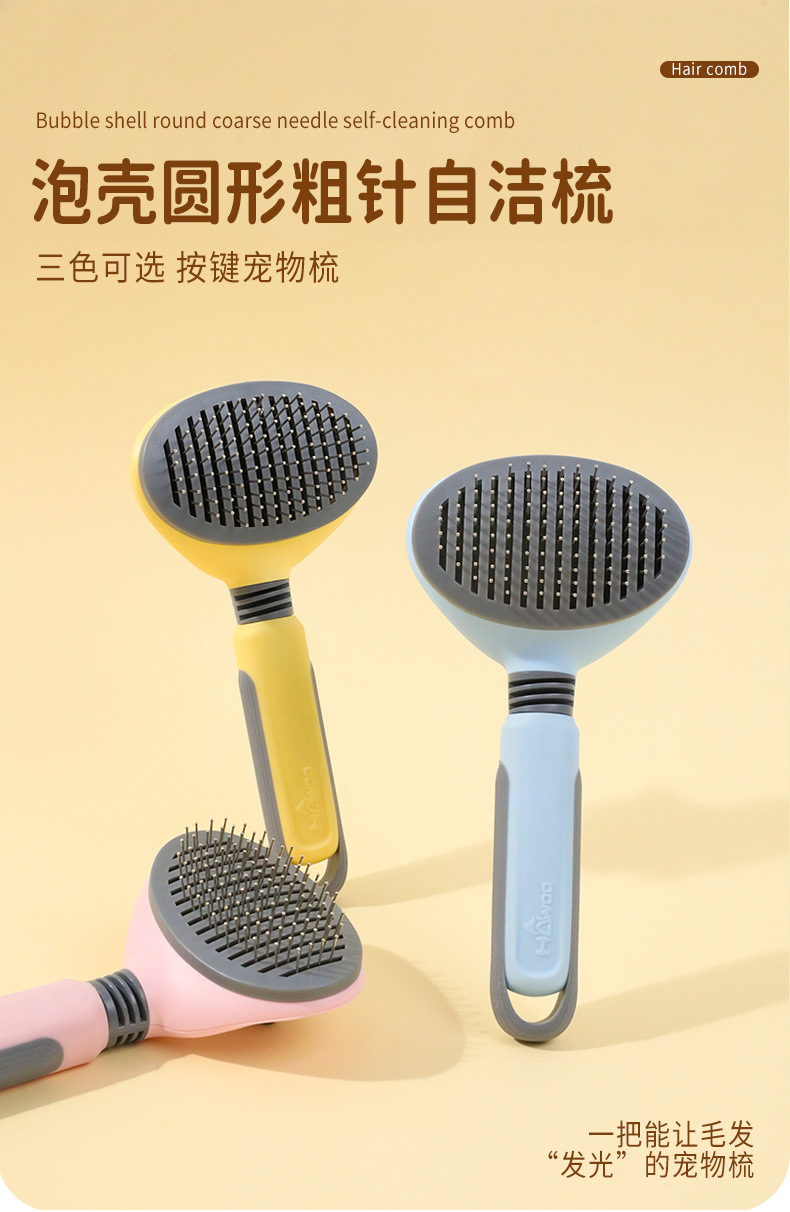 애완동물 빗 고양이 털 빗 원형 강철 바늘 자가 세척 빗 털 제거 대형 애완동물 강아지 미용 빗 도매스토어 가기