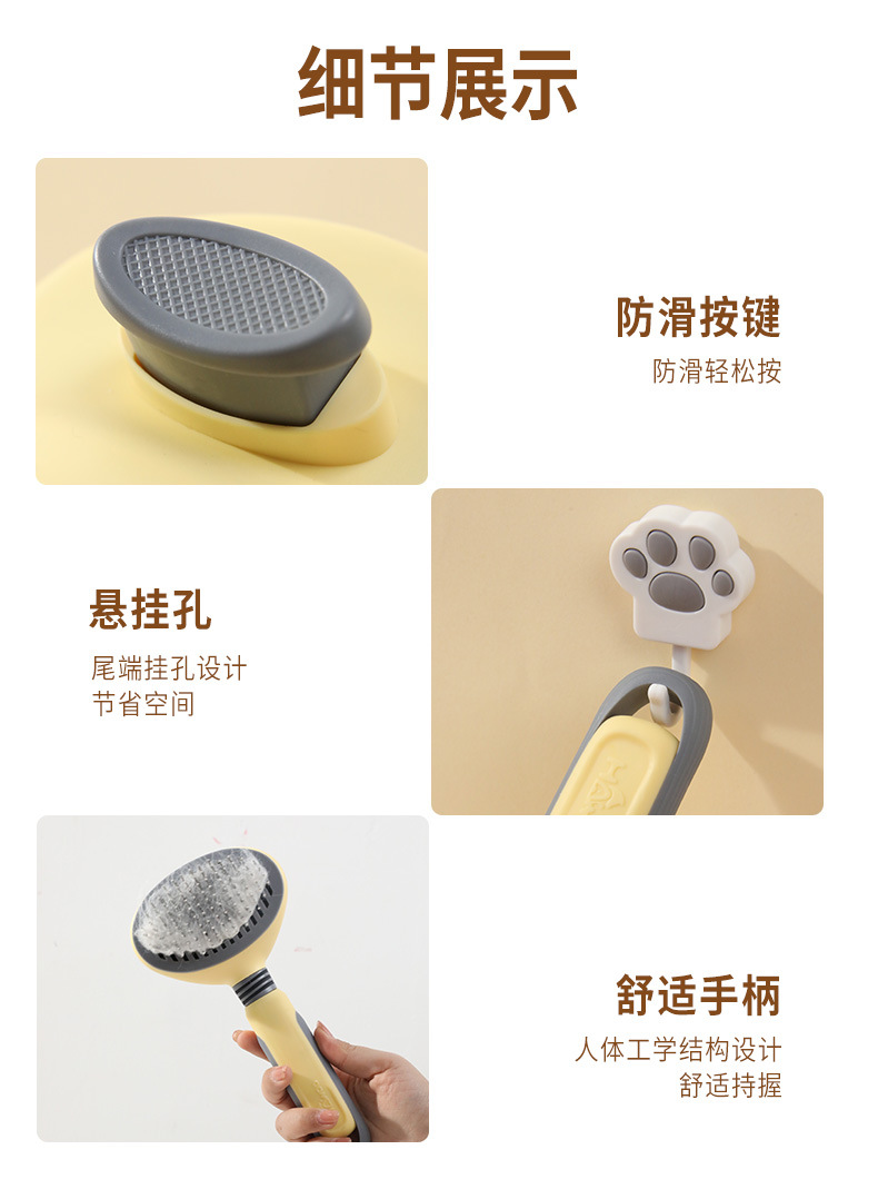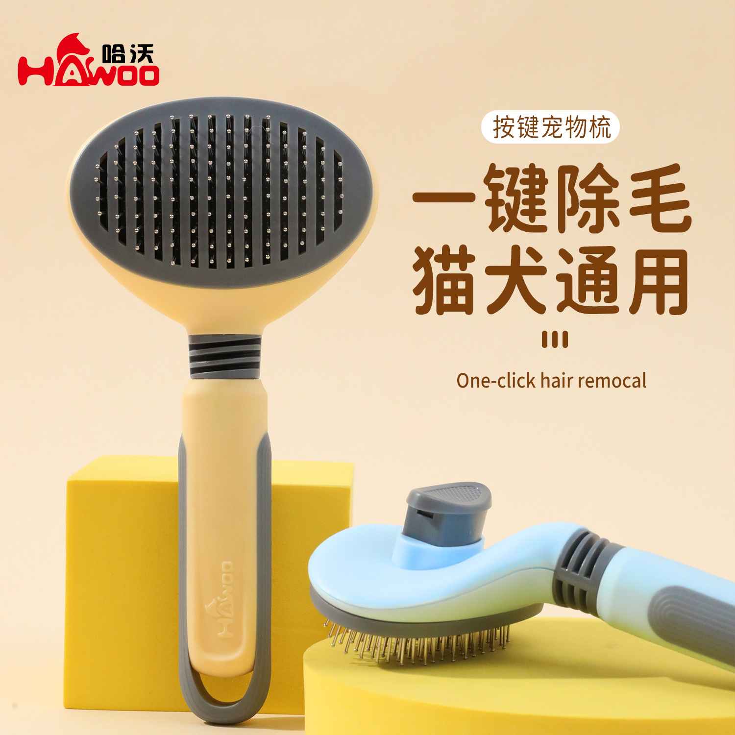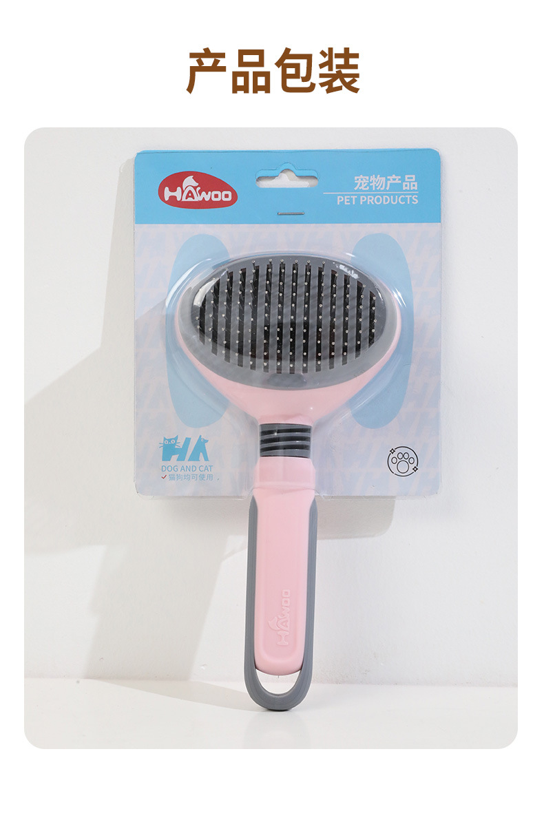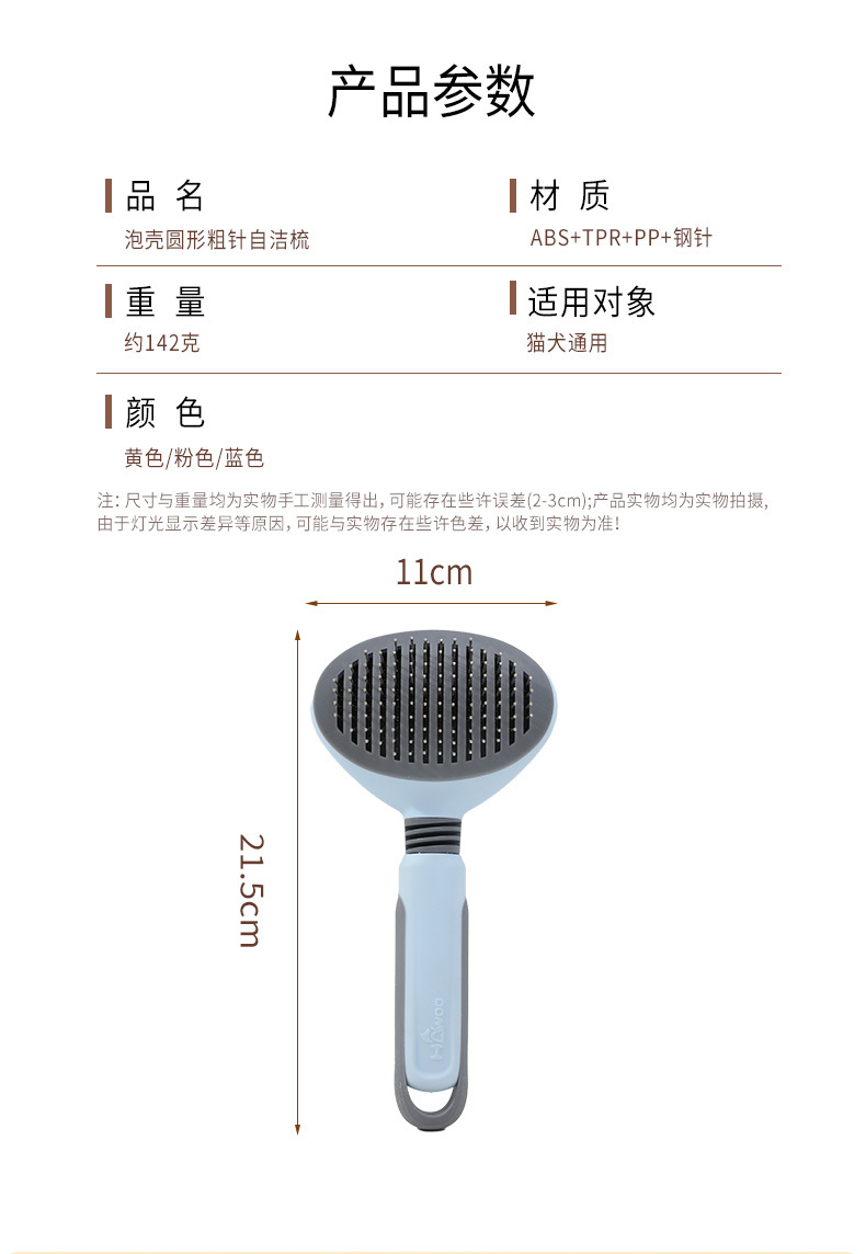 애완동물 빗 고양이 털 빗 원형 강철 바늘 자가 세척 빗 털 제거 대형 애완동물 강아지 미용 빗 도매스토어 가기