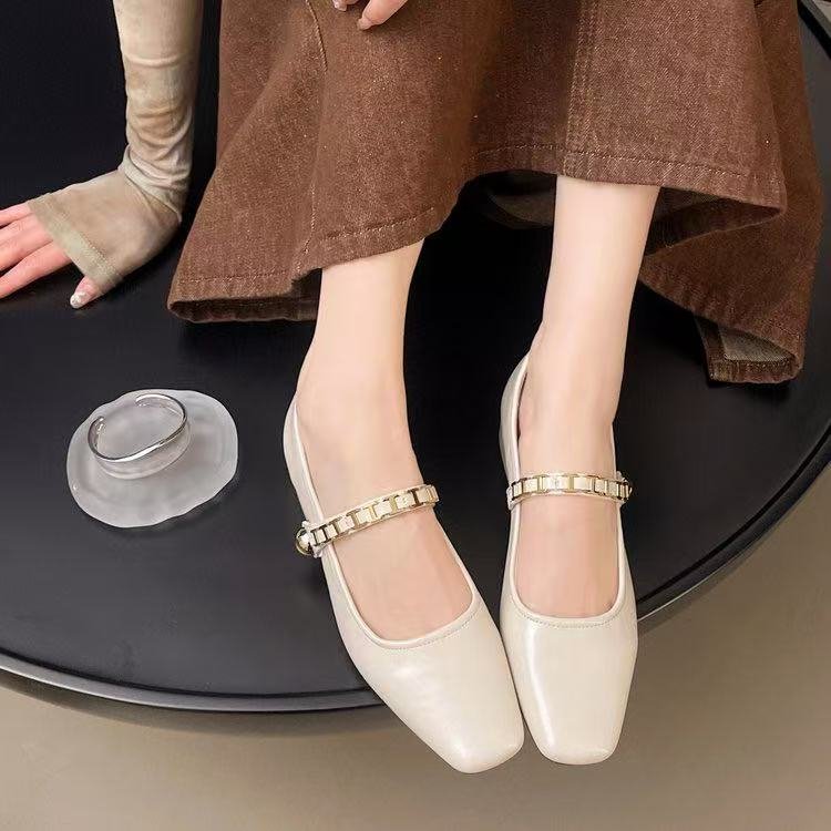 패션 우아한 레트로 스퀘어 발가락 버클 두꺼운 힐 얕은 입 싱글 레이어 신발 여성의 2025 새로운 봄과 가을 메리 제인 작은 가죽 신발스토어 가기