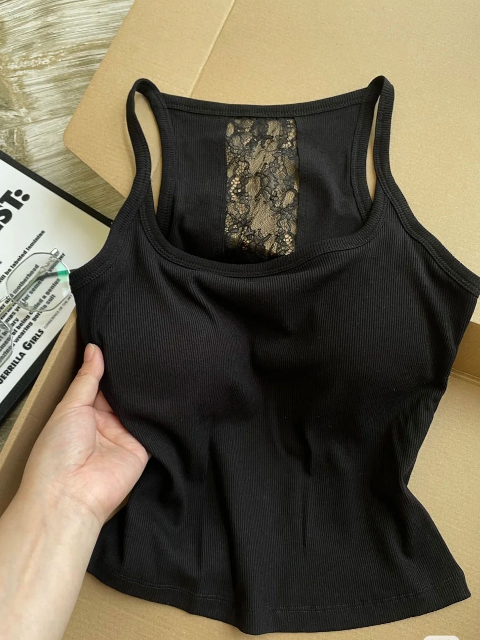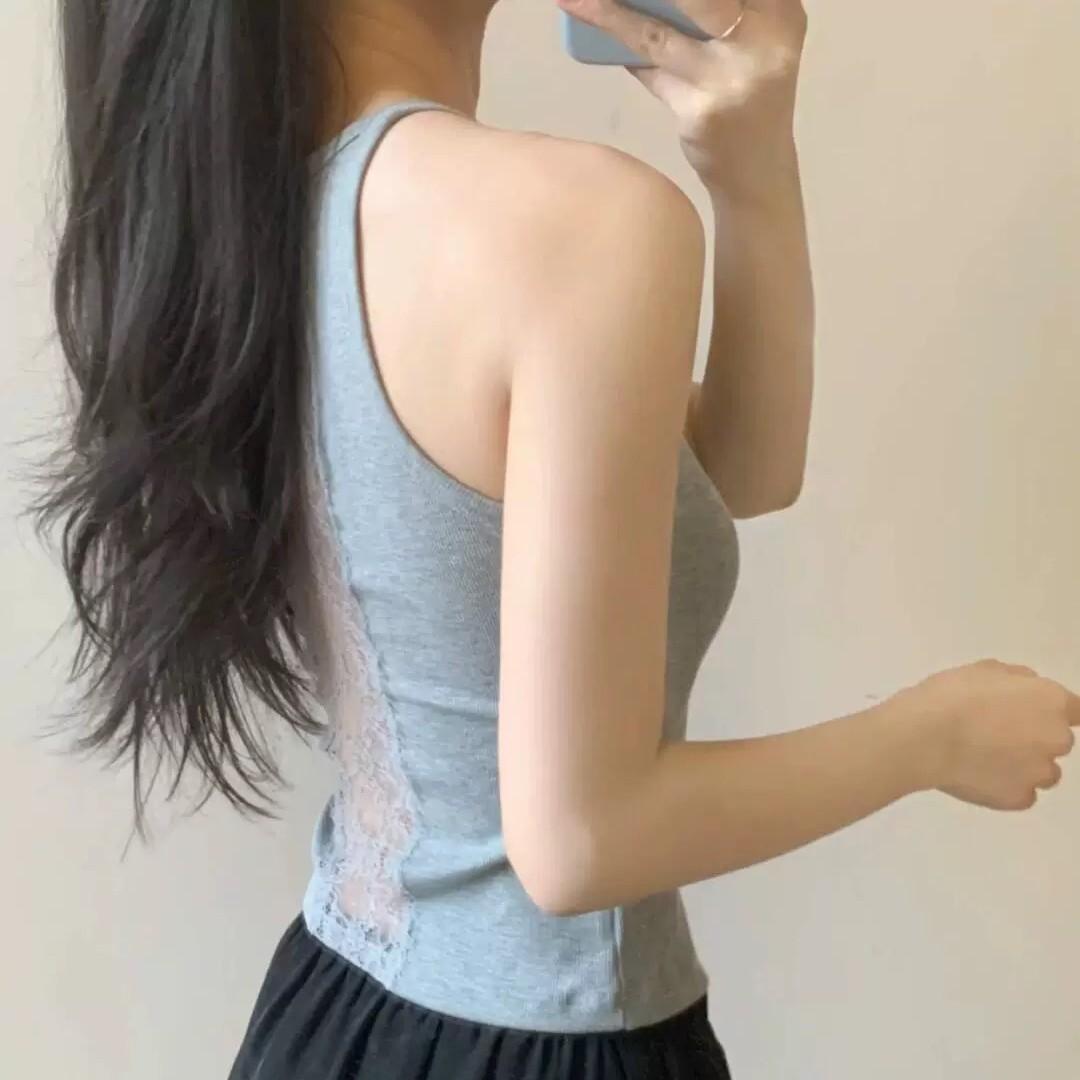 #1153 새로운 순수한 목 레이스 카미솔 섹시한 백리스 아름다운 스트랩 가슴 패드 슬림 스파이스 걸 탑