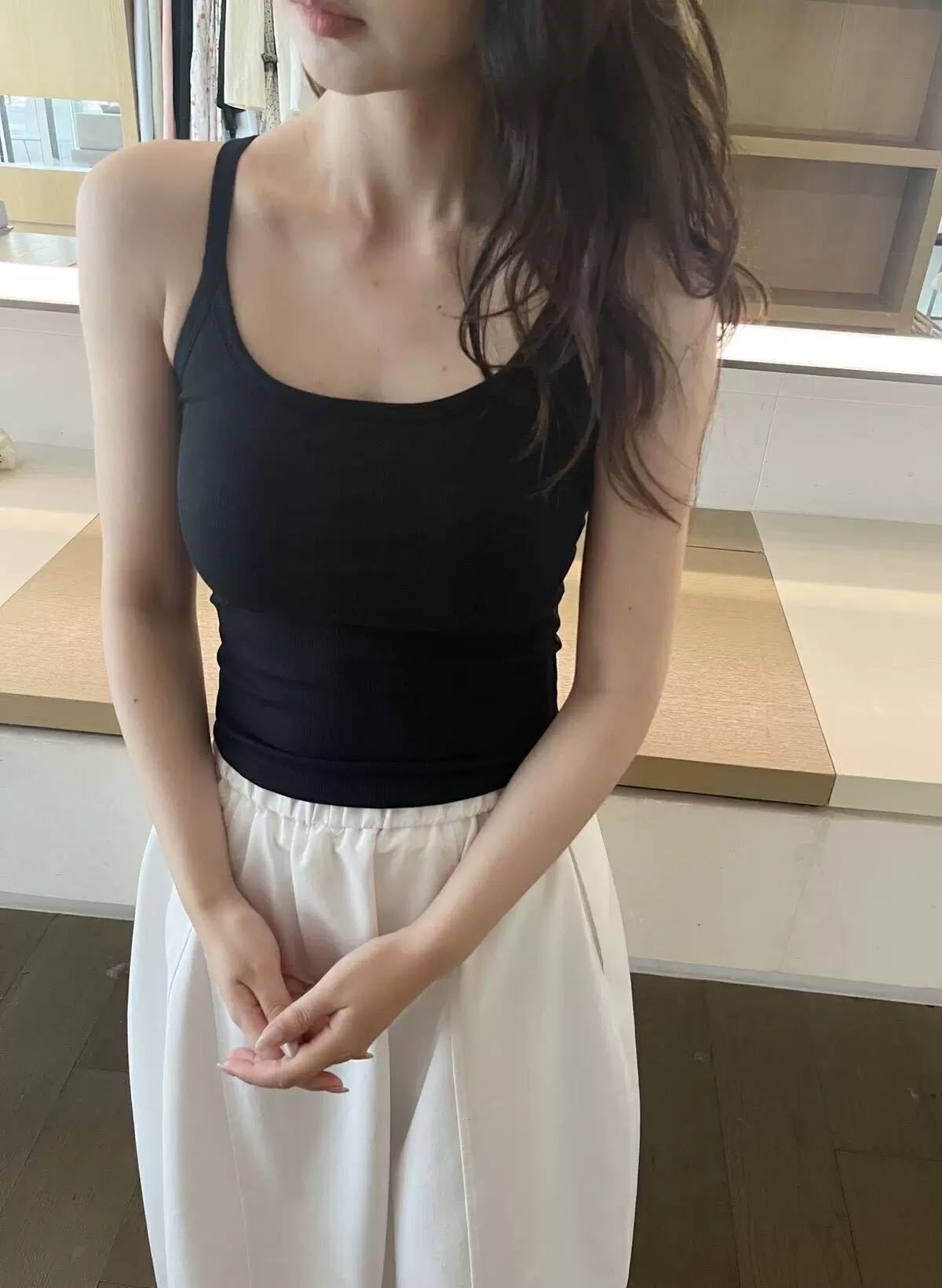 #1153 새로운 순수한 목 레이스 카미솔 섹시한 백리스 아름다운 스트랩 가슴 패드 슬림 스파이스 걸 탑스토어 가기