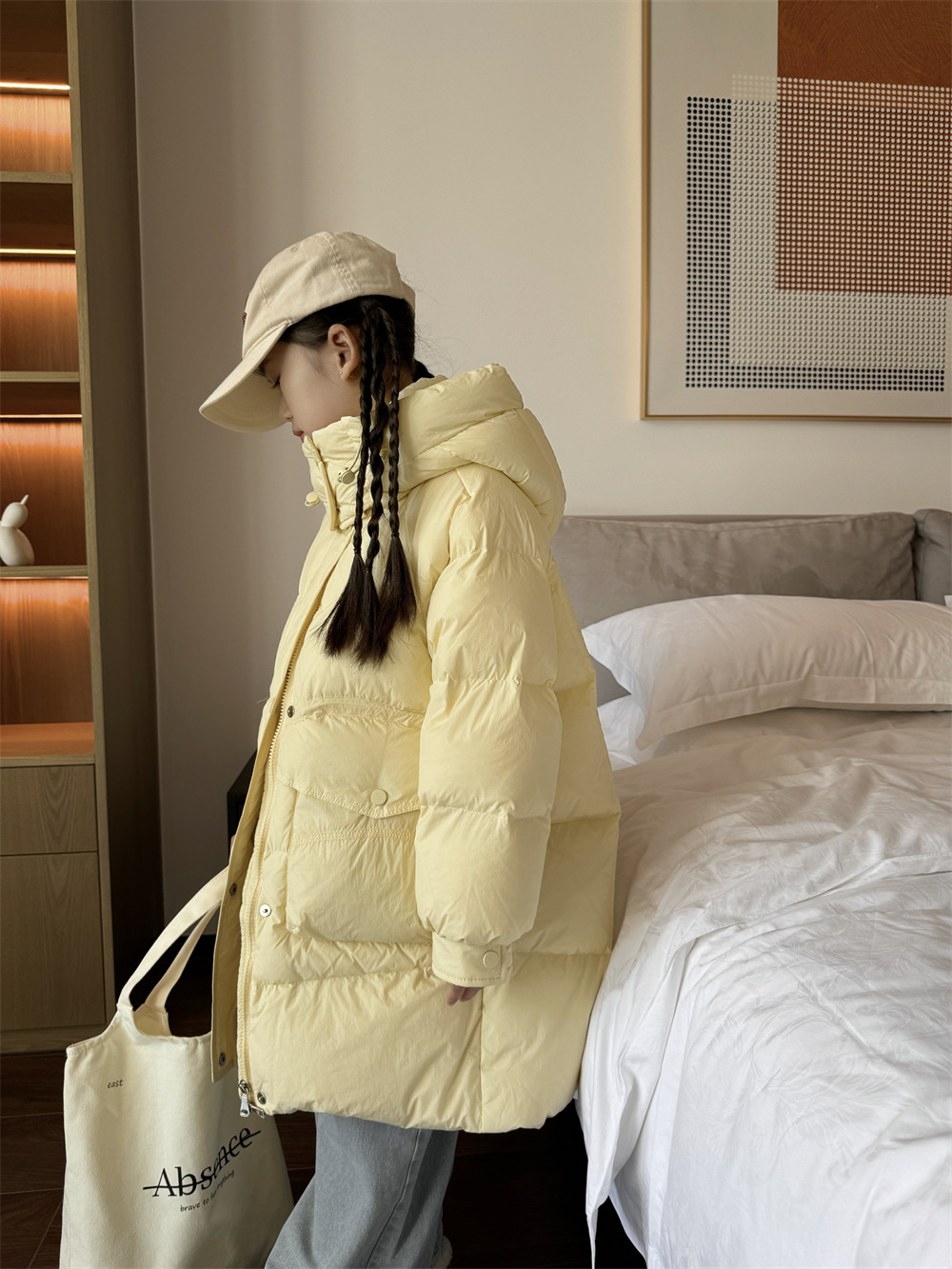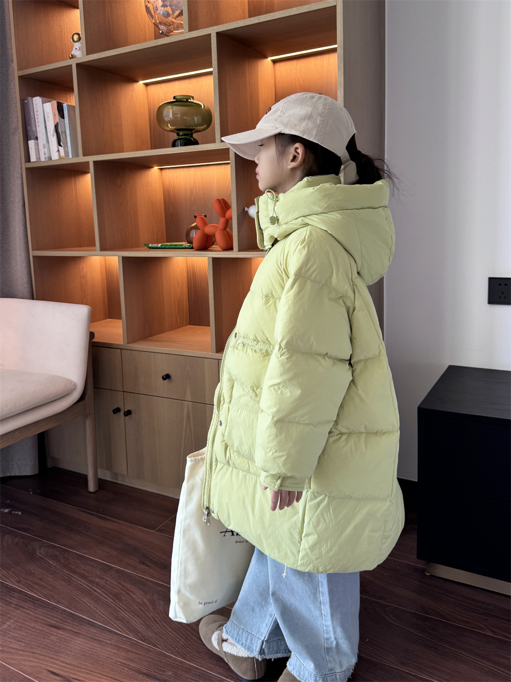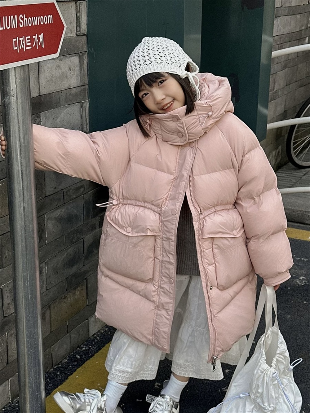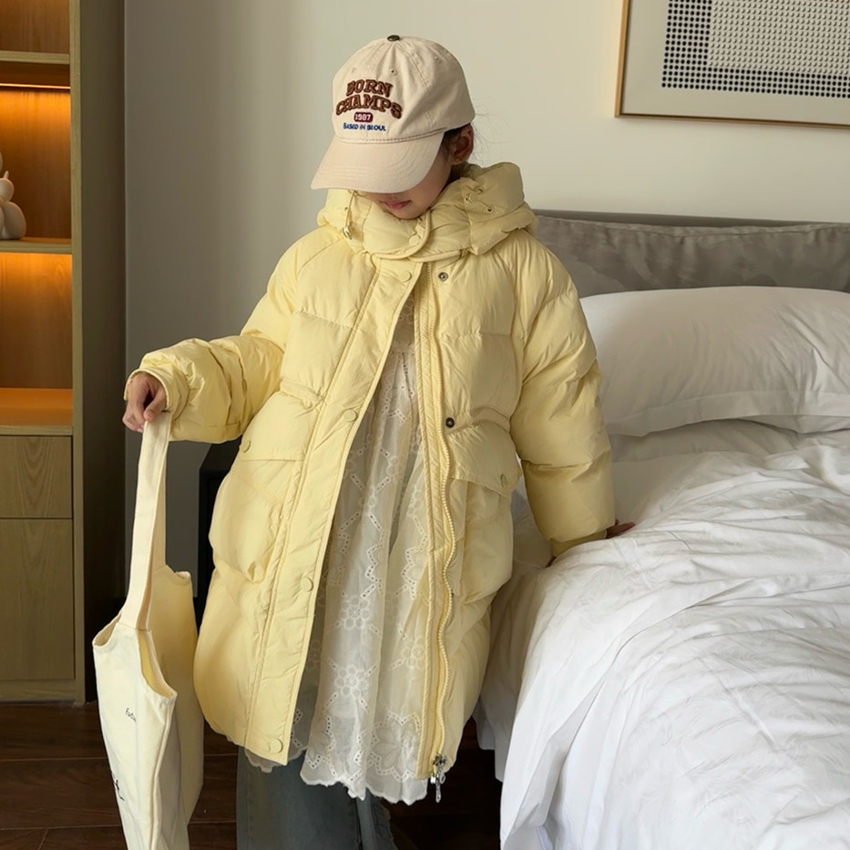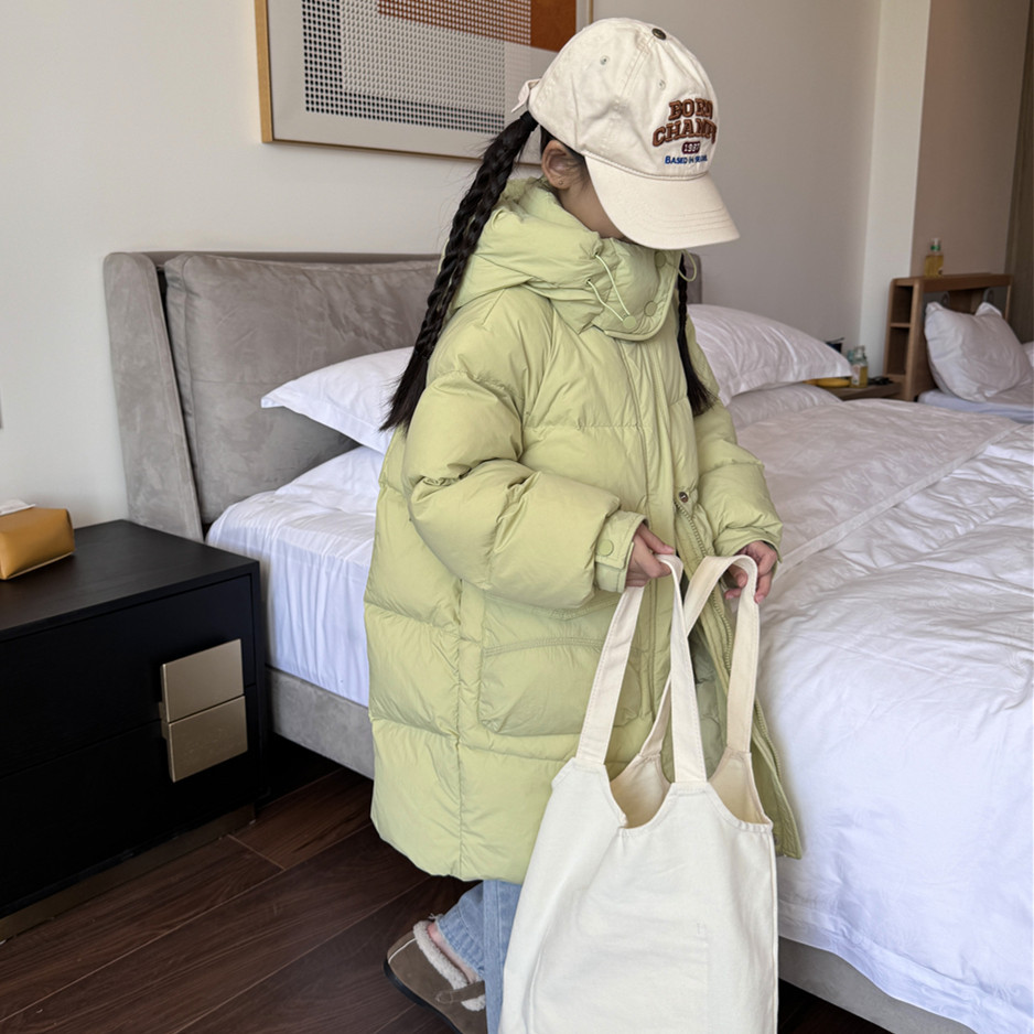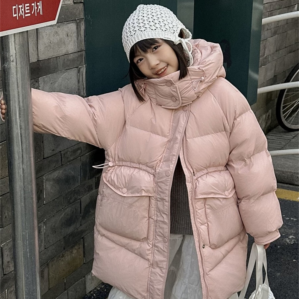 2025 여아 다운 재킷, 중간 길이, 따뜻하고 두꺼운, 큰 어린이와 여아를 위한 겨울용 흰색 오리털 재킷, 트렌디한 아동복스토어 가기