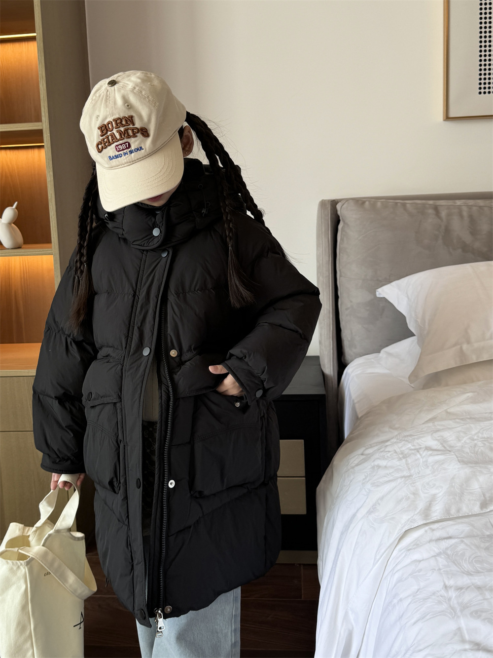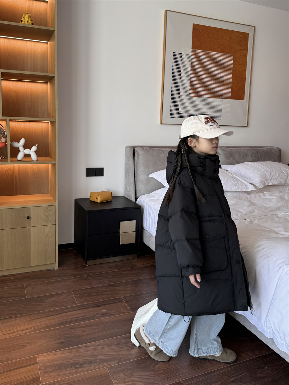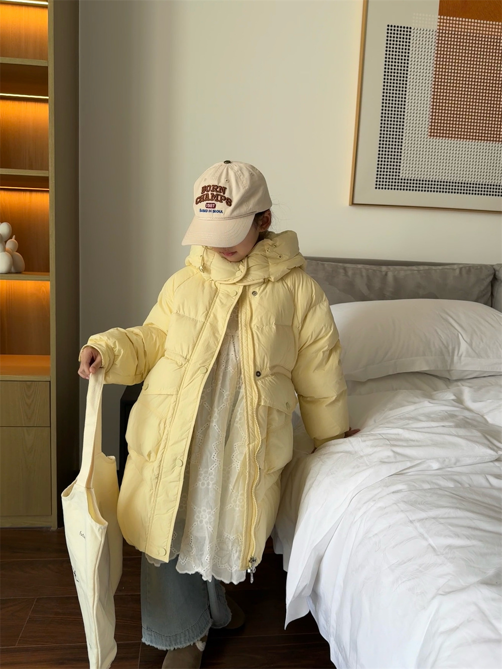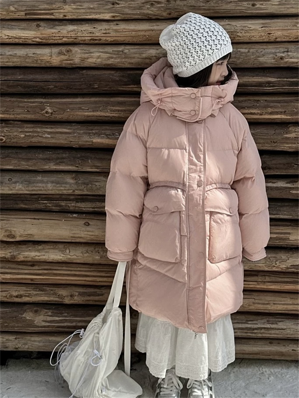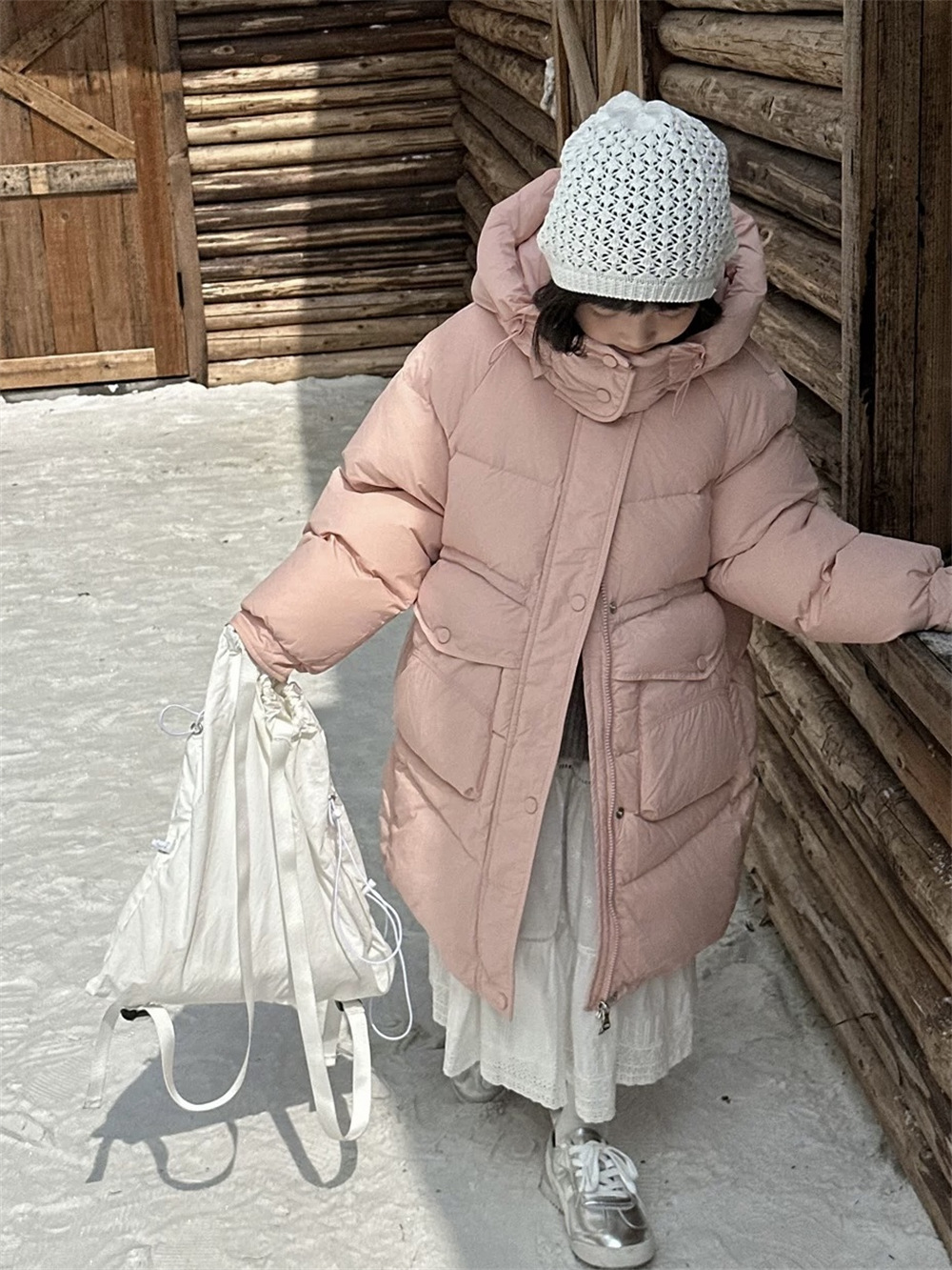 2025 여아 다운 재킷, 중간 길이, 따뜻하고 두꺼운, 큰 어린이와 여아를 위한 겨울용 흰색 오리털 재킷, 트렌디한 아동복스토어 가기