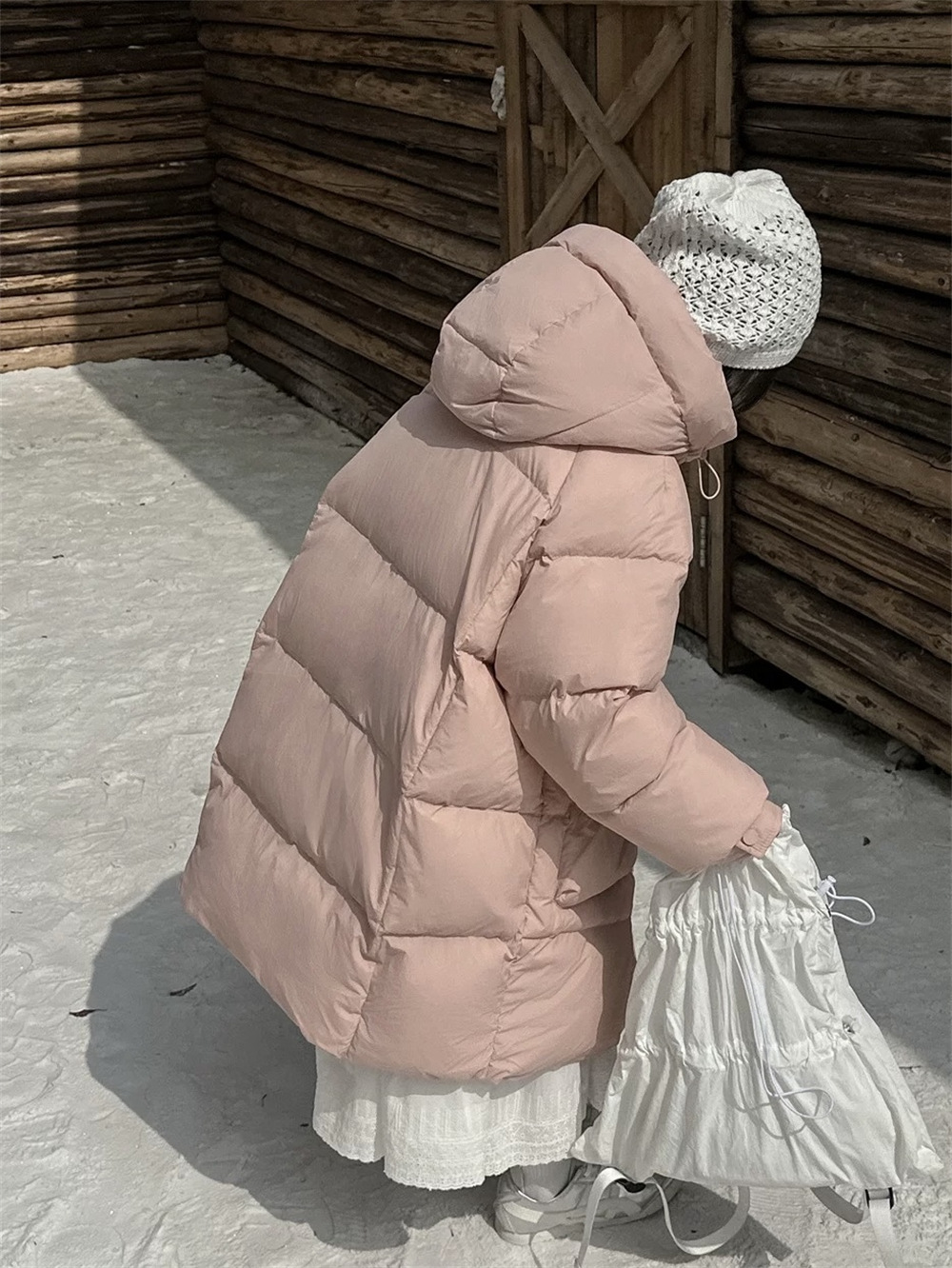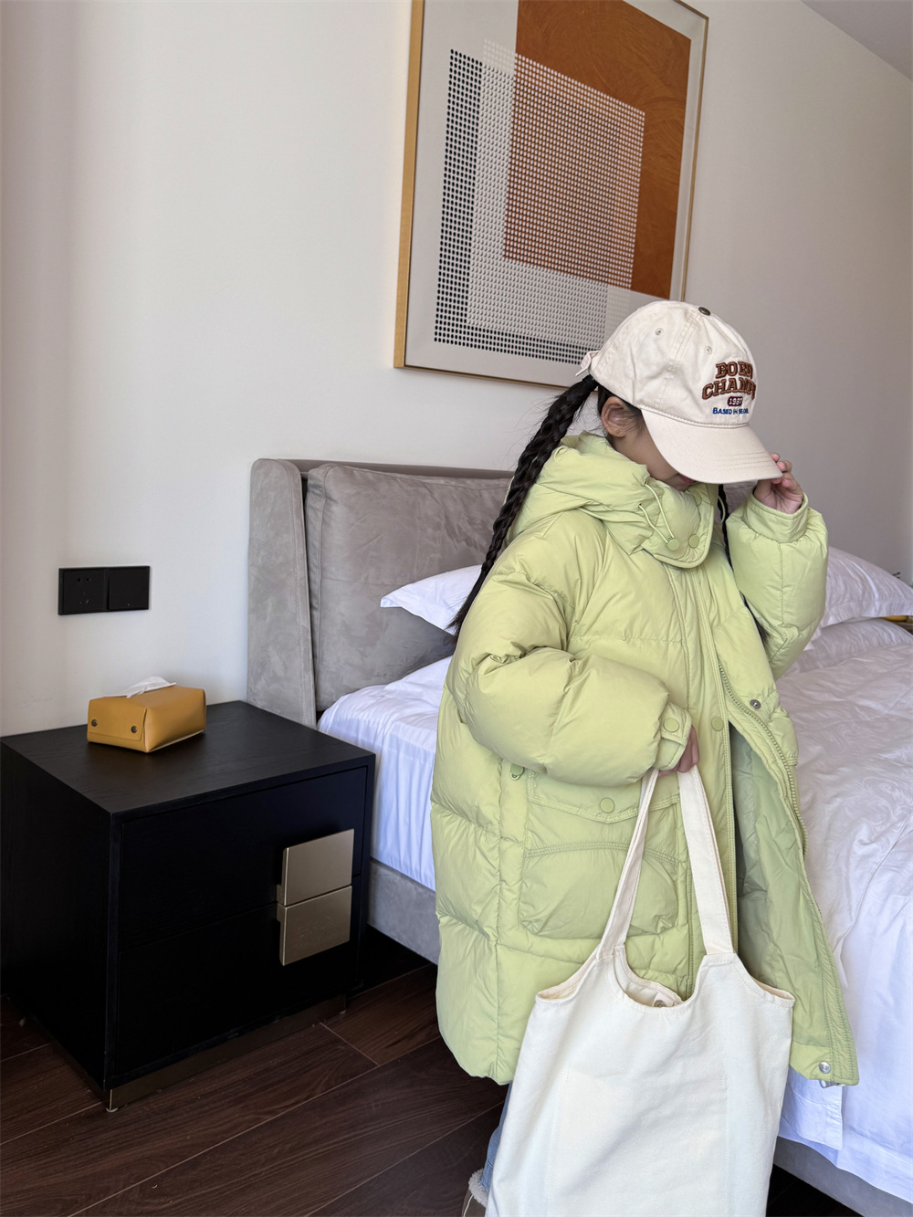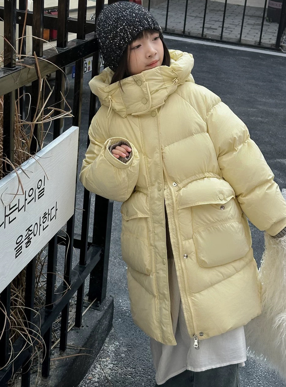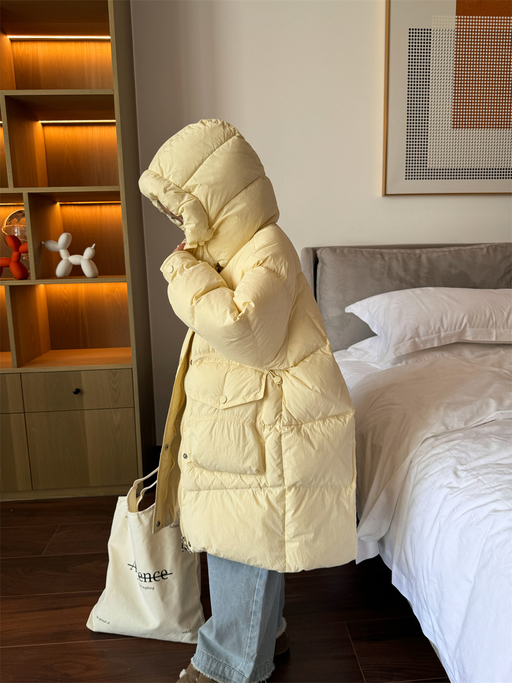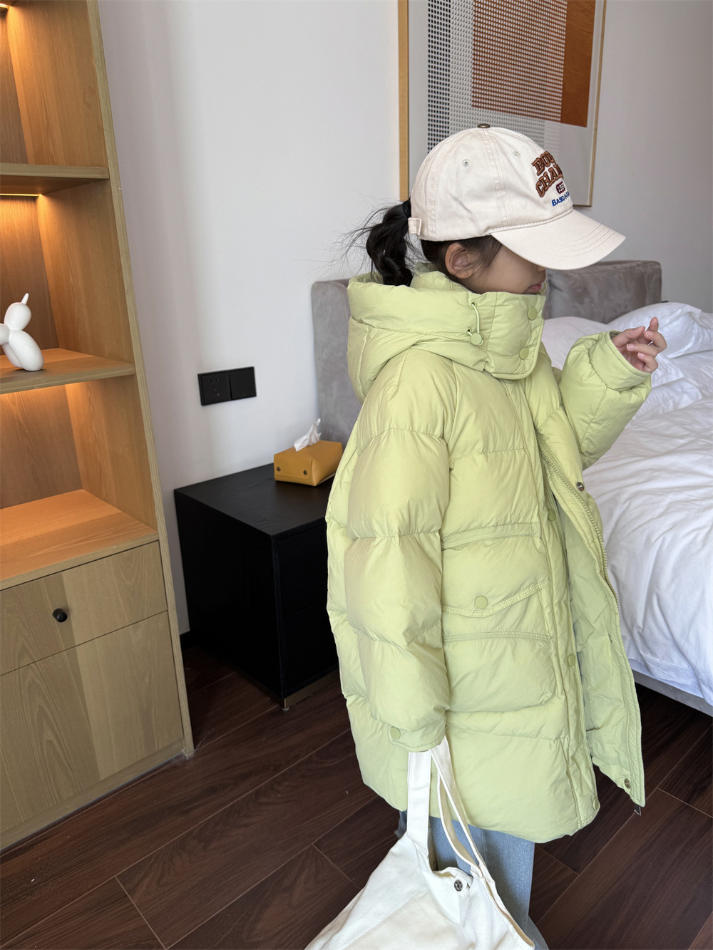 2025 여아 다운 재킷, 중간 길이, 따뜻하고 두꺼운, 큰 어린이와 여아를 위한 겨울용 흰색 오리털 재킷, 트렌디한 아동복스토어 가기
