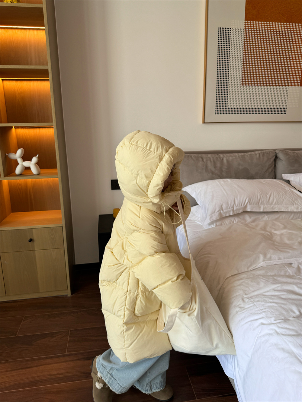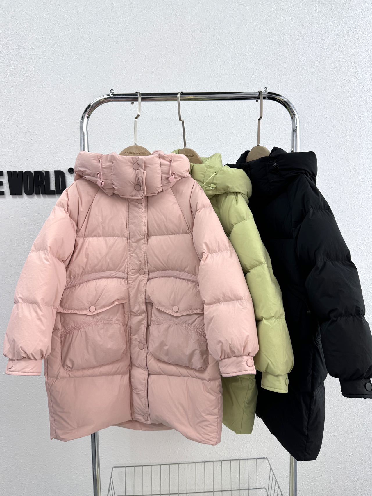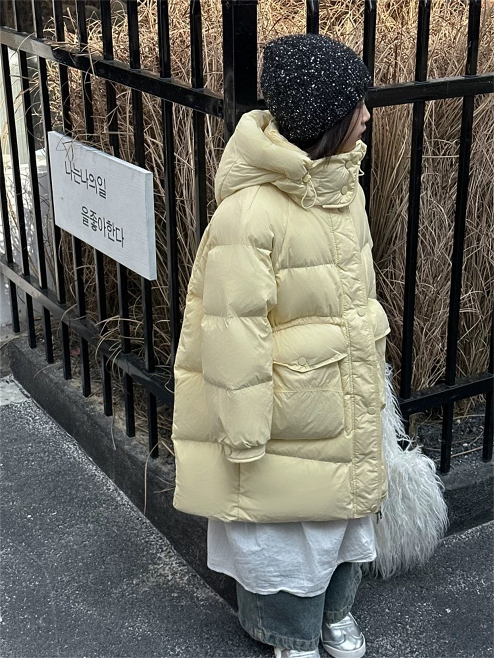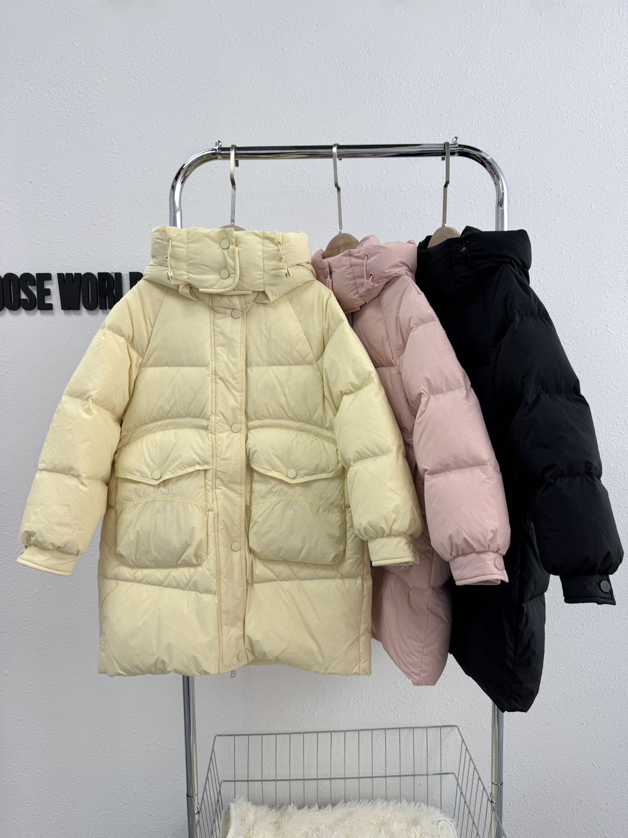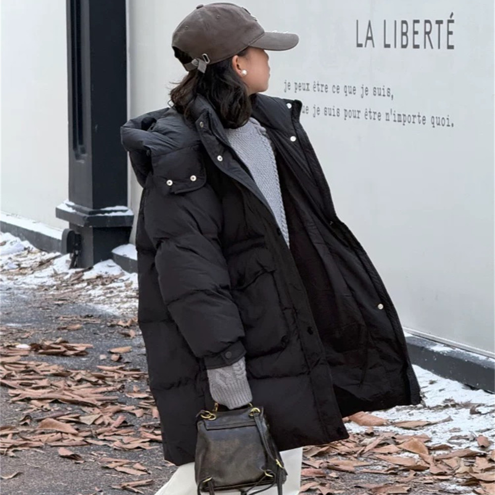 2025 여아 다운 재킷, 중간 길이, 따뜻하고 두꺼운, 큰 어린이와 여아를 위한 겨울용 흰색 오리털 재킷, 트렌디한 아동복스토어 가기