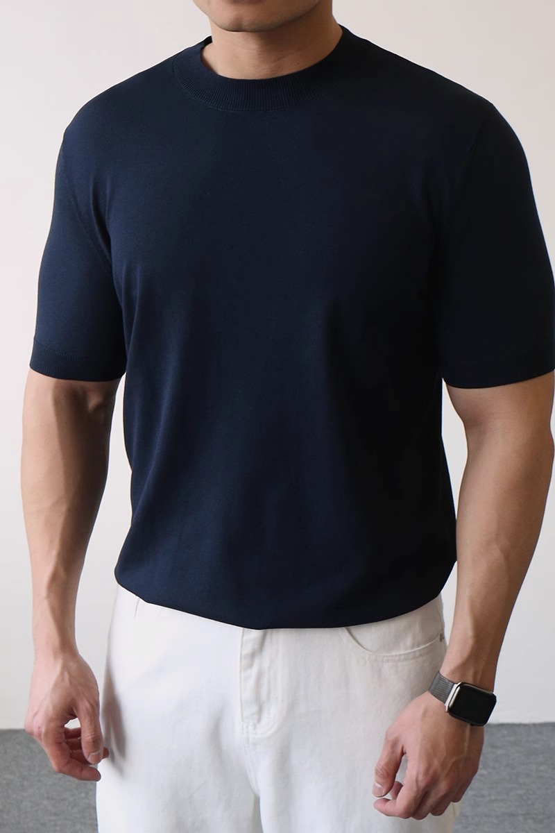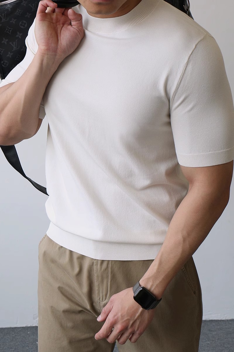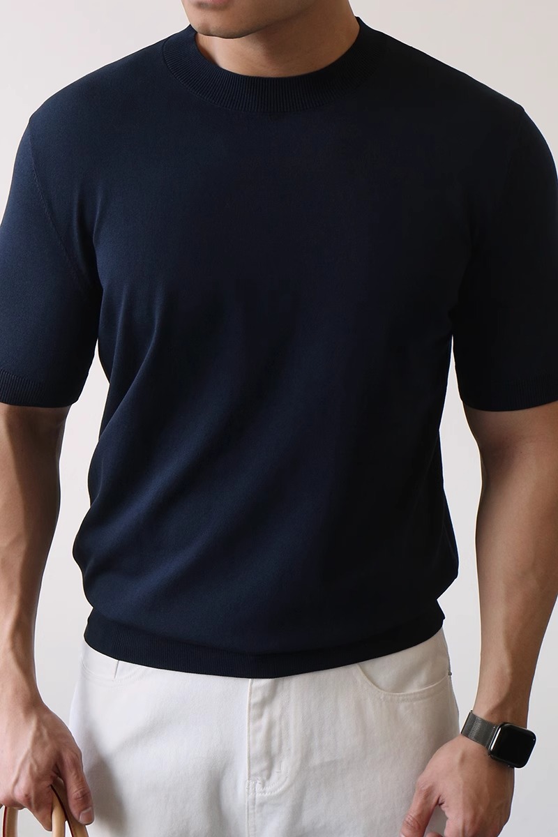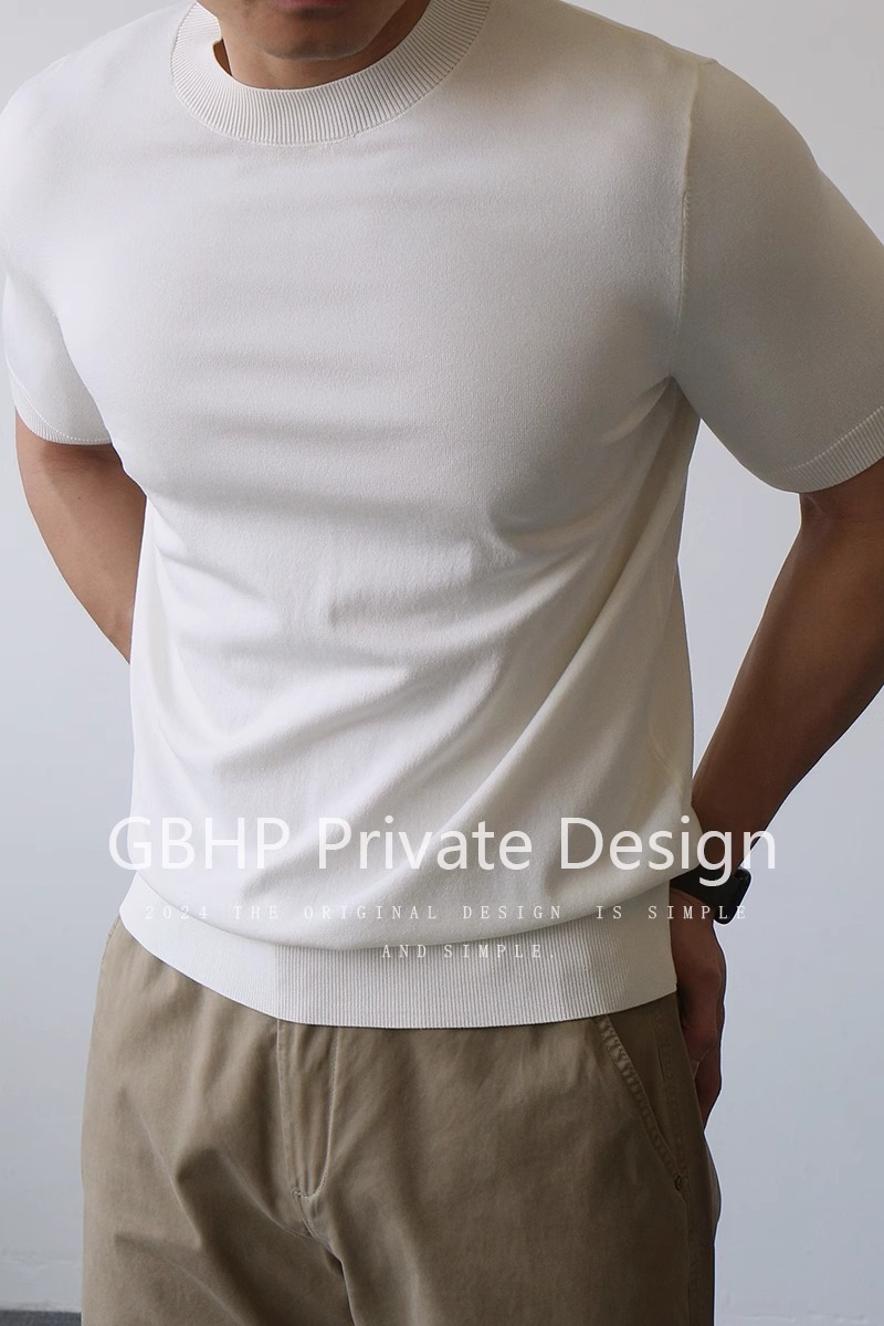 하프 터틀넥 반팔 스웨터 남성용 솔리드 컬러 바닥 셔츠 정장 내부 여름 얼음 실크 티셔츠 대외 무역 국경 간 도매스토어 가기
