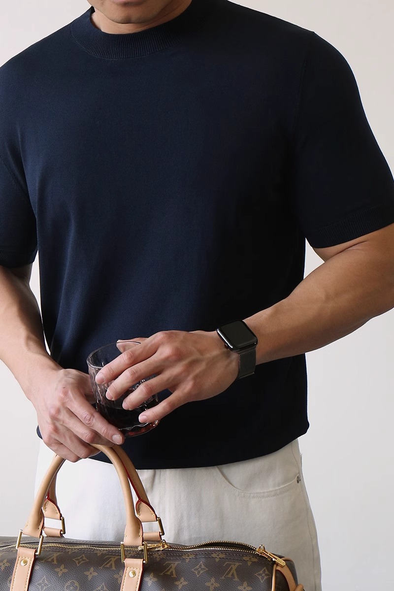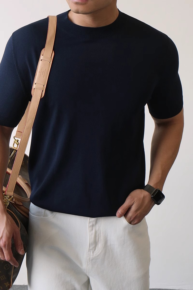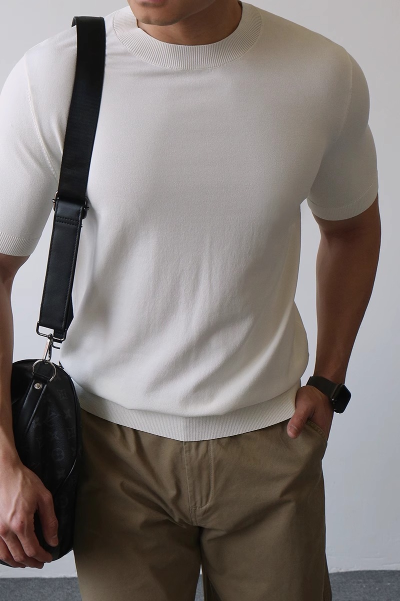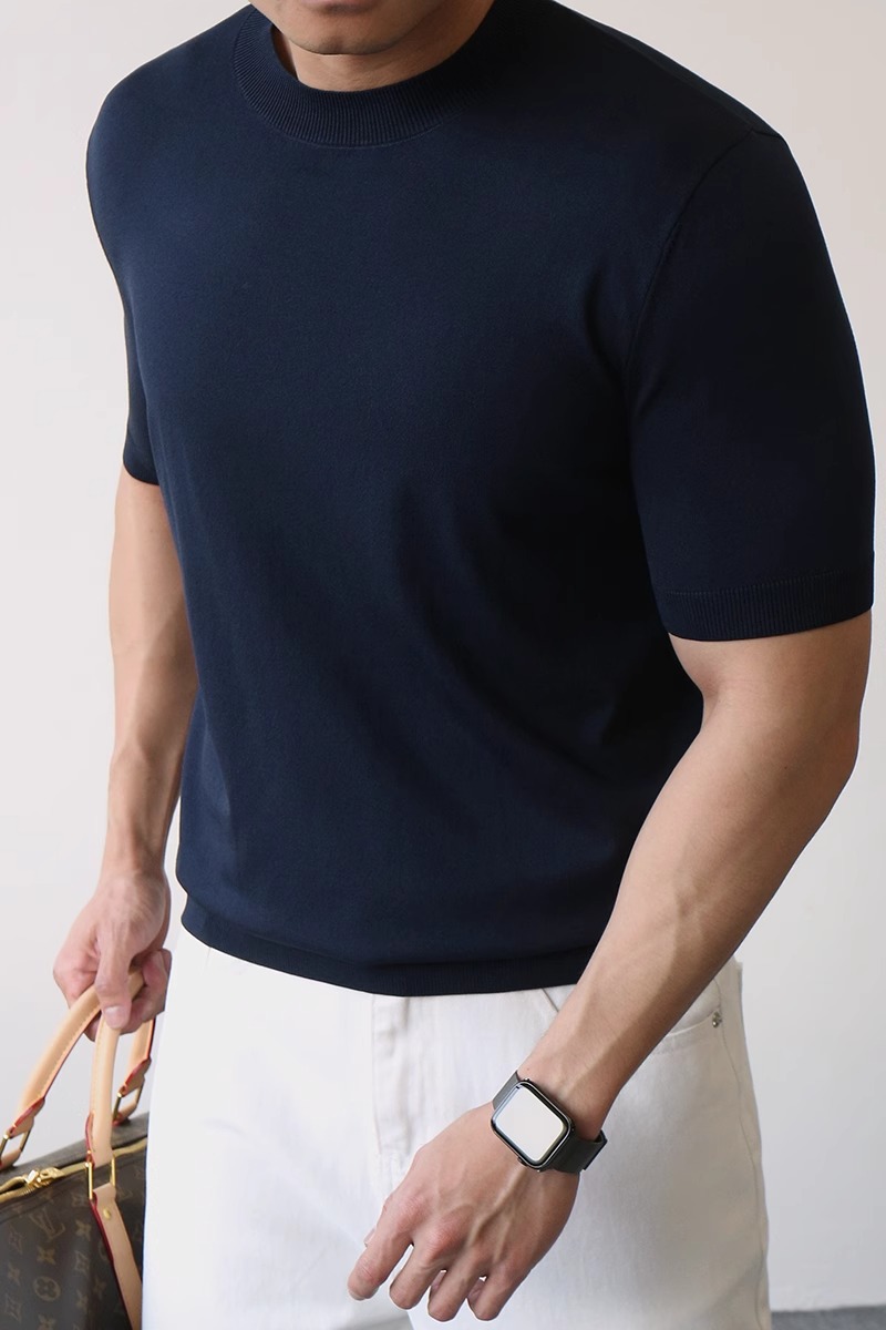 하프 터틀넥 반팔 스웨터 남성용 솔리드 컬러 바닥 셔츠 정장 내부 여름 얼음 실크 티셔츠 대외 무역 국경 간 도매스토어 가기