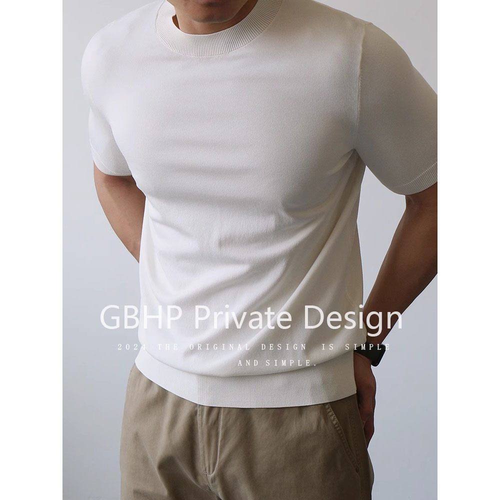 하프 터틀넥 반팔 스웨터 남성용 솔리드 컬러 바닥 셔츠 정장 내부 여름 얼음 실크 티셔츠 대외 무역 국경 간 도매