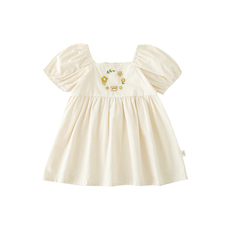 Wulibuyi 아동복 패션 수 놓은 드레스 소녀 한국 스타일 공주 드레스 아기 여름 캐주얼 롱 스커트스토어 가기