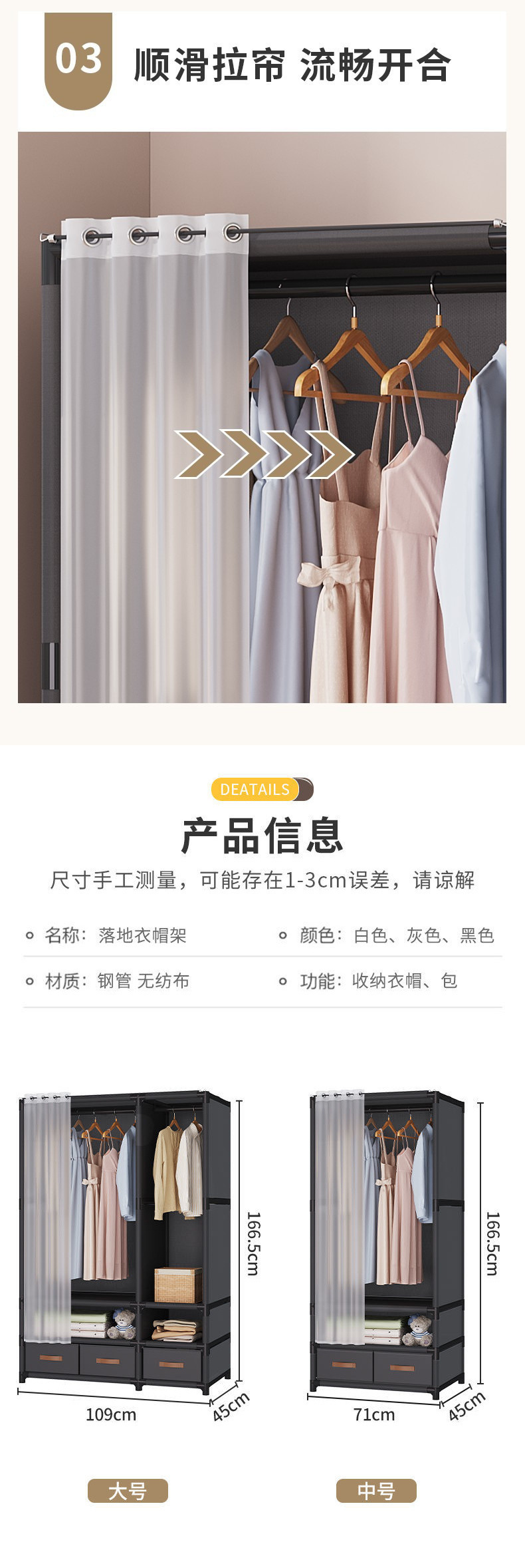대용량 단순 옷장 가정용 방진 천 옷장 강관 두꺼운 굵게 굽은 옷장과 렌탈 하우스 용 서랍