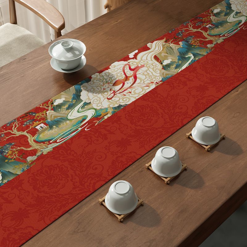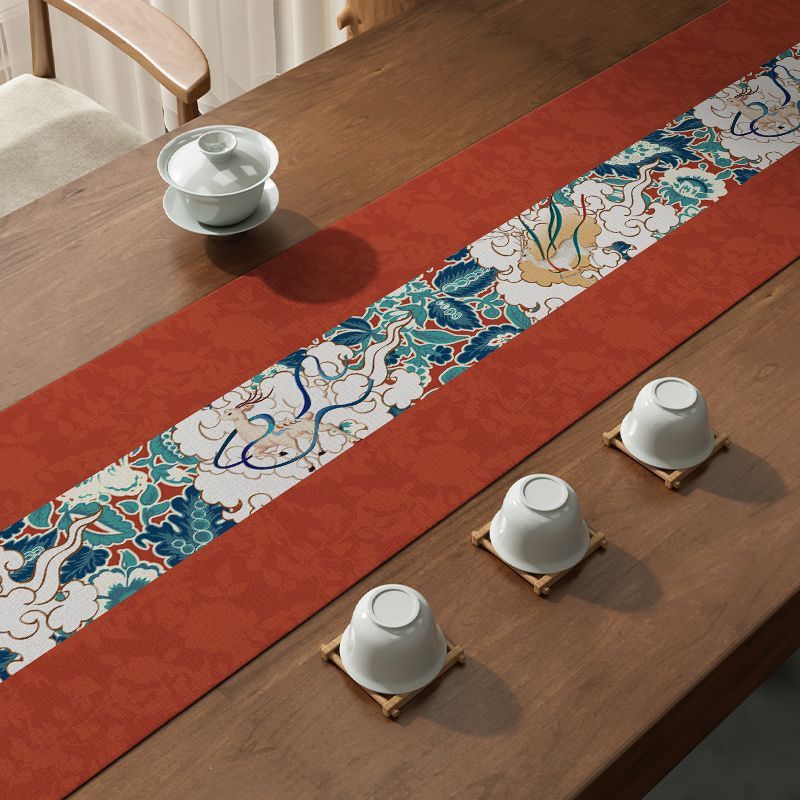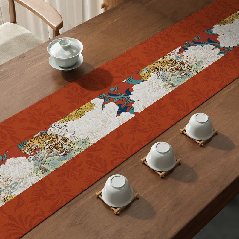 새로운 중국 스타일 차 테이블 러너 고급 국가 스타일 코튼 및 린넨 긴 차 테이블 쿠션 천 차 테이블 장식 테이블 천 커피 테이블 플래그천스토어 가기