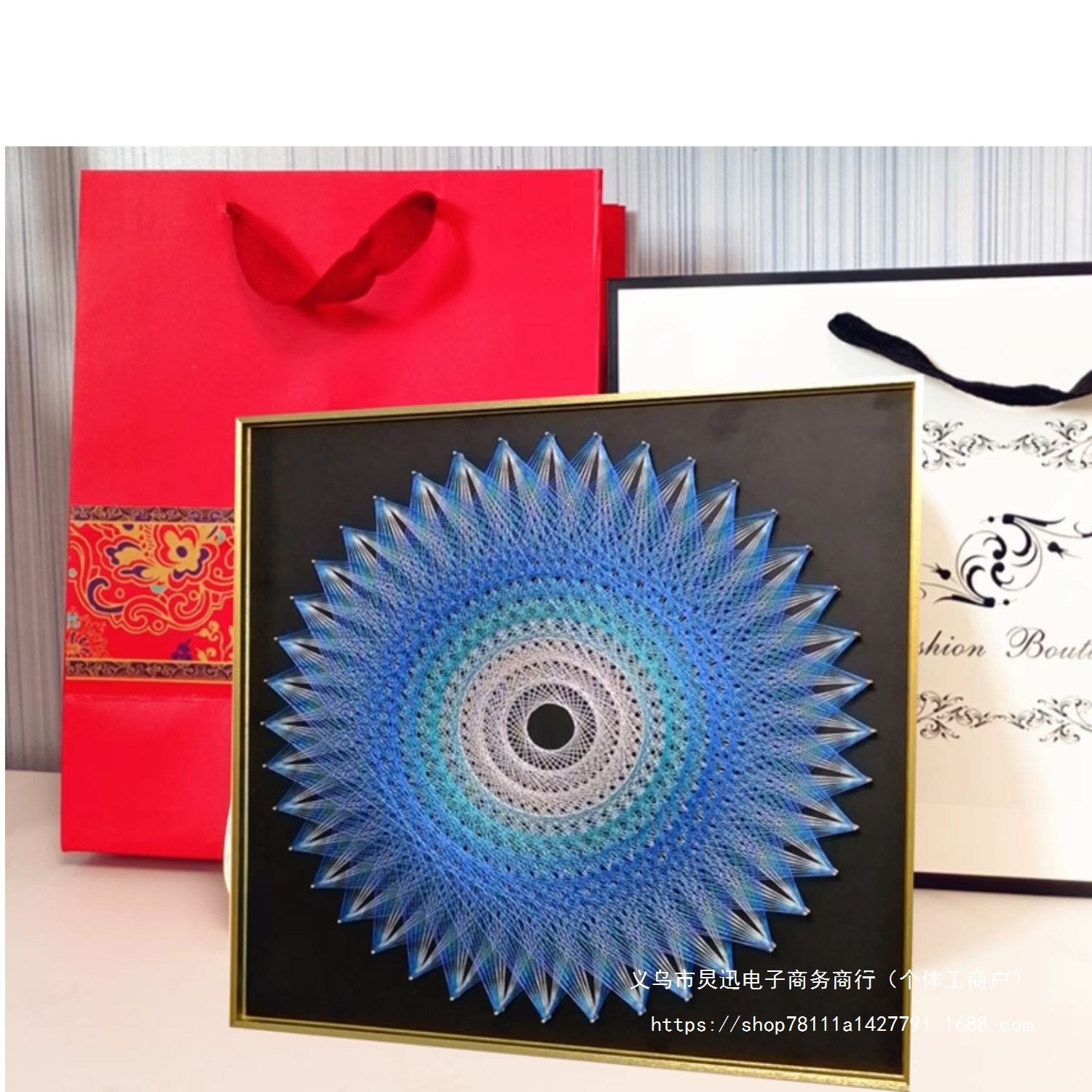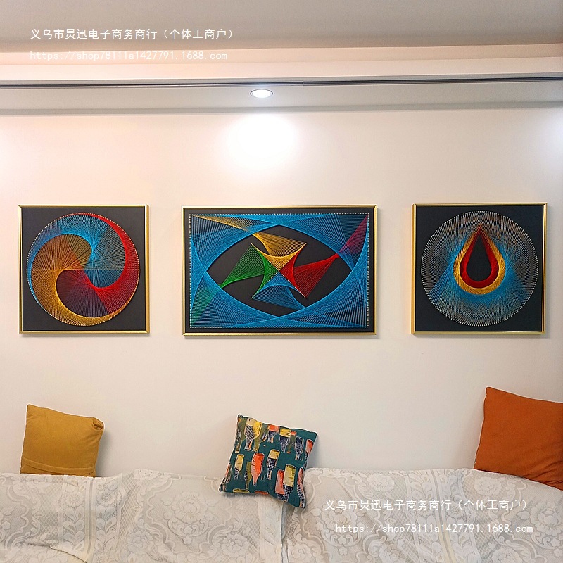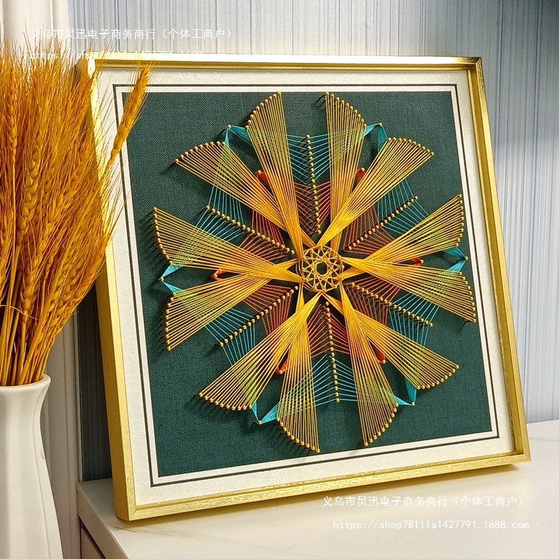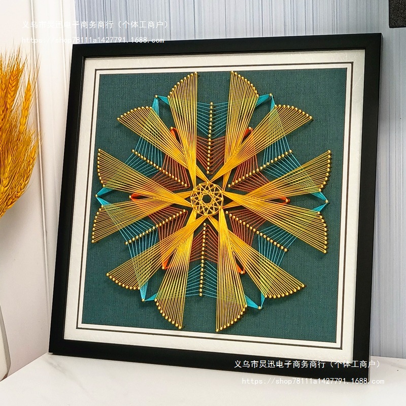 거실 추상 장식 그림 diy 기하학적 그림 네일 감기 그림 소재 끈 실크 손으로 만든스토어 가기