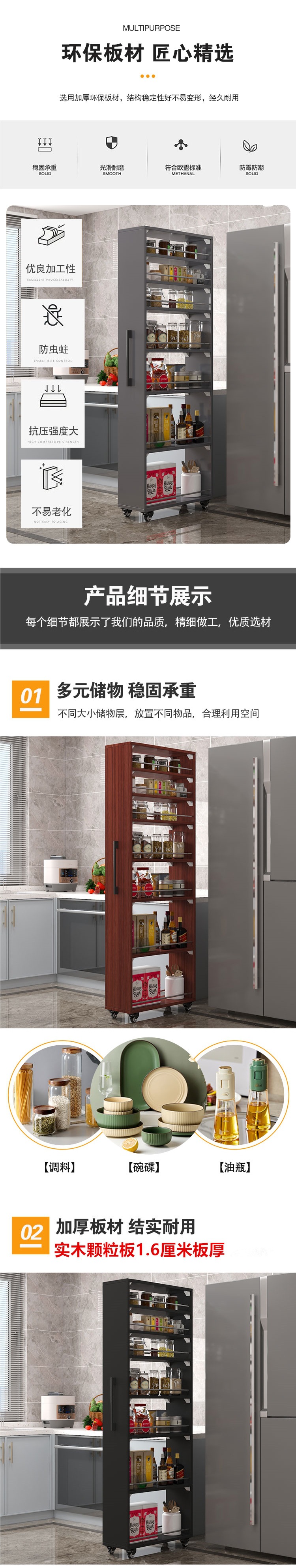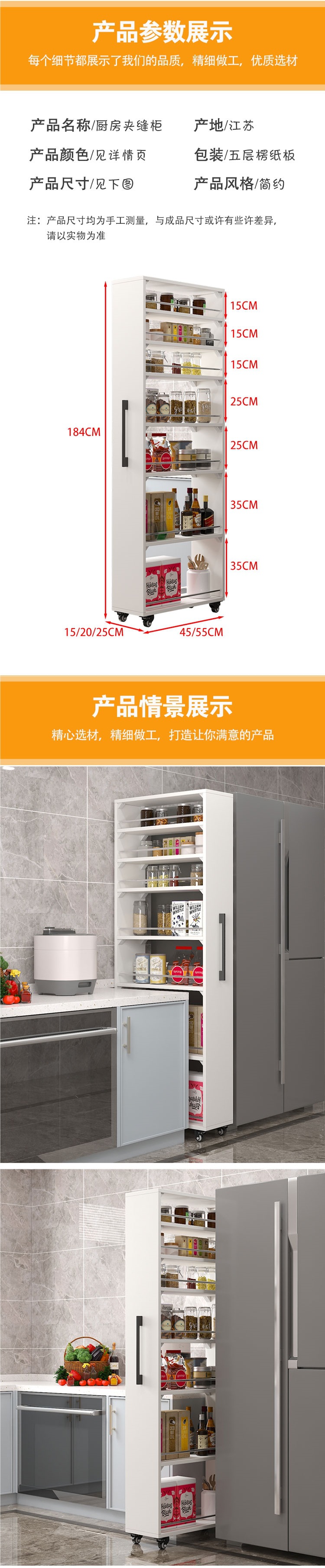15/20/25 갭 스토리지 랙 주방 냉장고 갭 스토리지 랙 좁은 사이드 캐비닛 사이드 풀 대형 용량 이동 가능스토어 가기