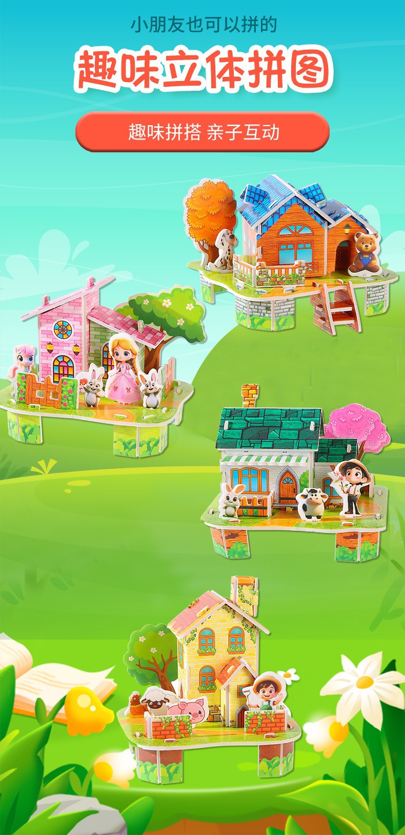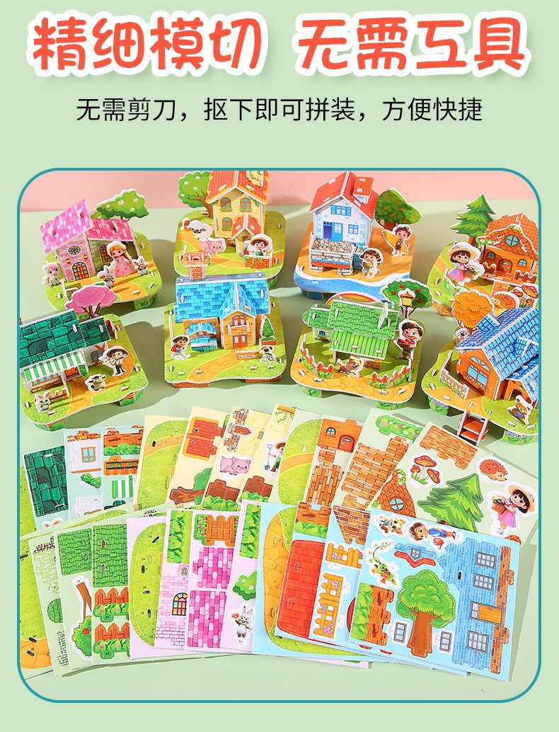 창조적 인 3D 입체 퍼즐 학생 만화 DIY 수제 어린이 3-6 세 조기 교육 장난감 선물 도매