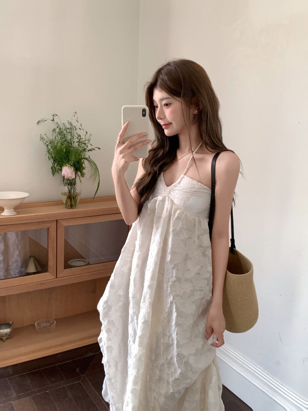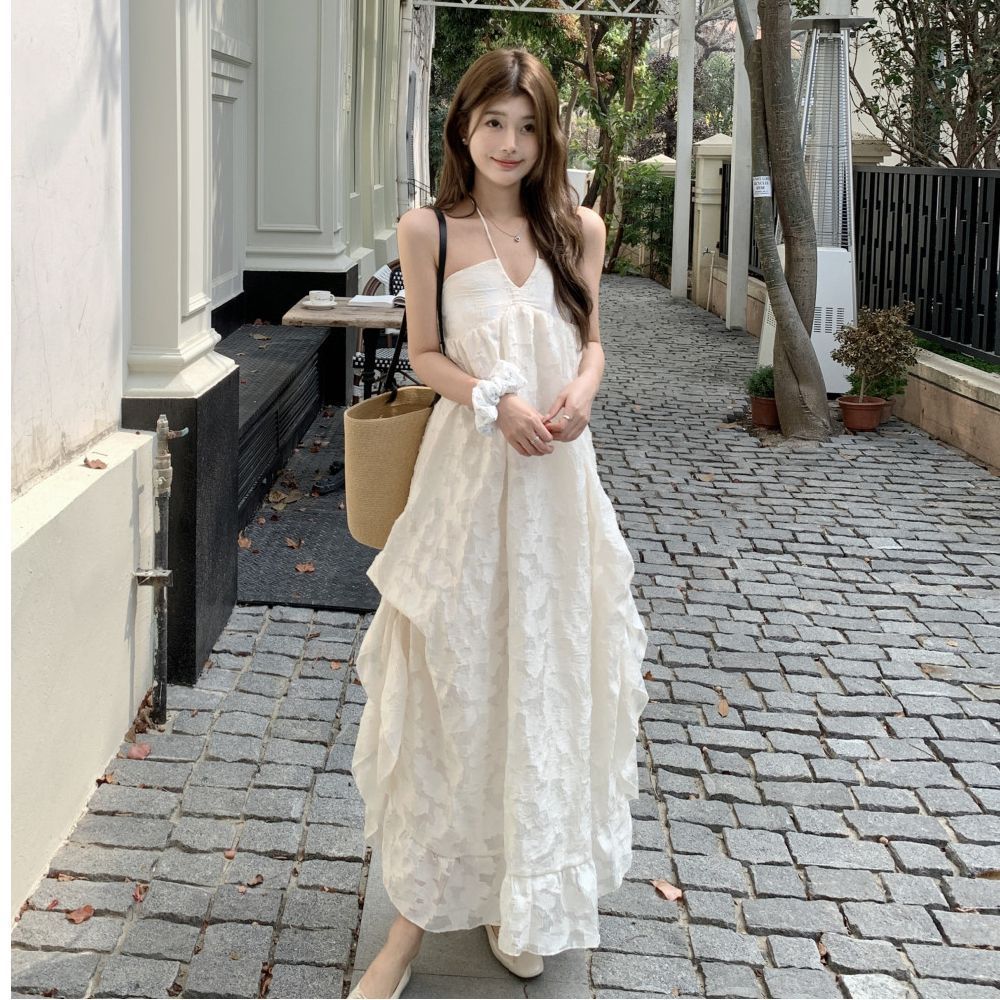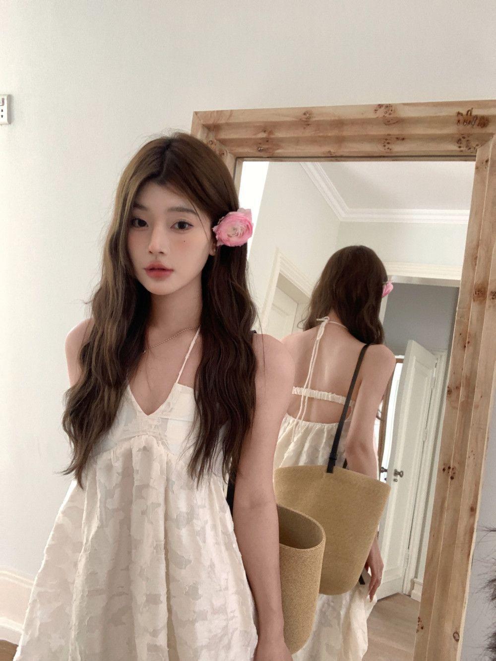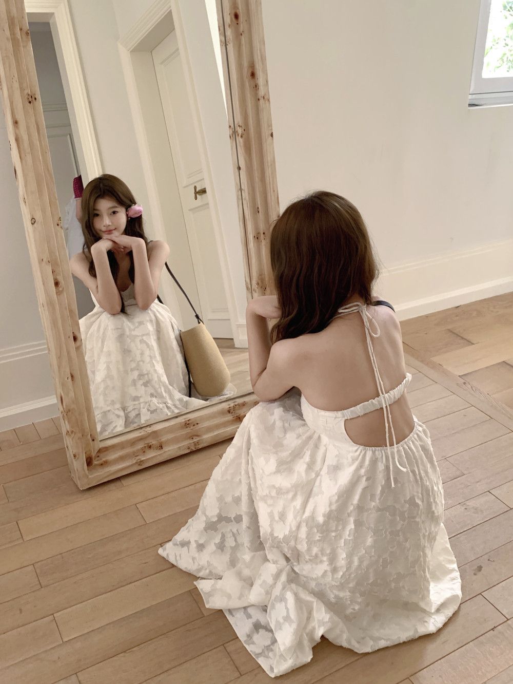 프랑스 스타일 목 원피스 여성 여름 해변 휴가 백리스 긴 원피스 슈퍼 페어리 우아한 루즈 A 라인 스커트스토어 가기