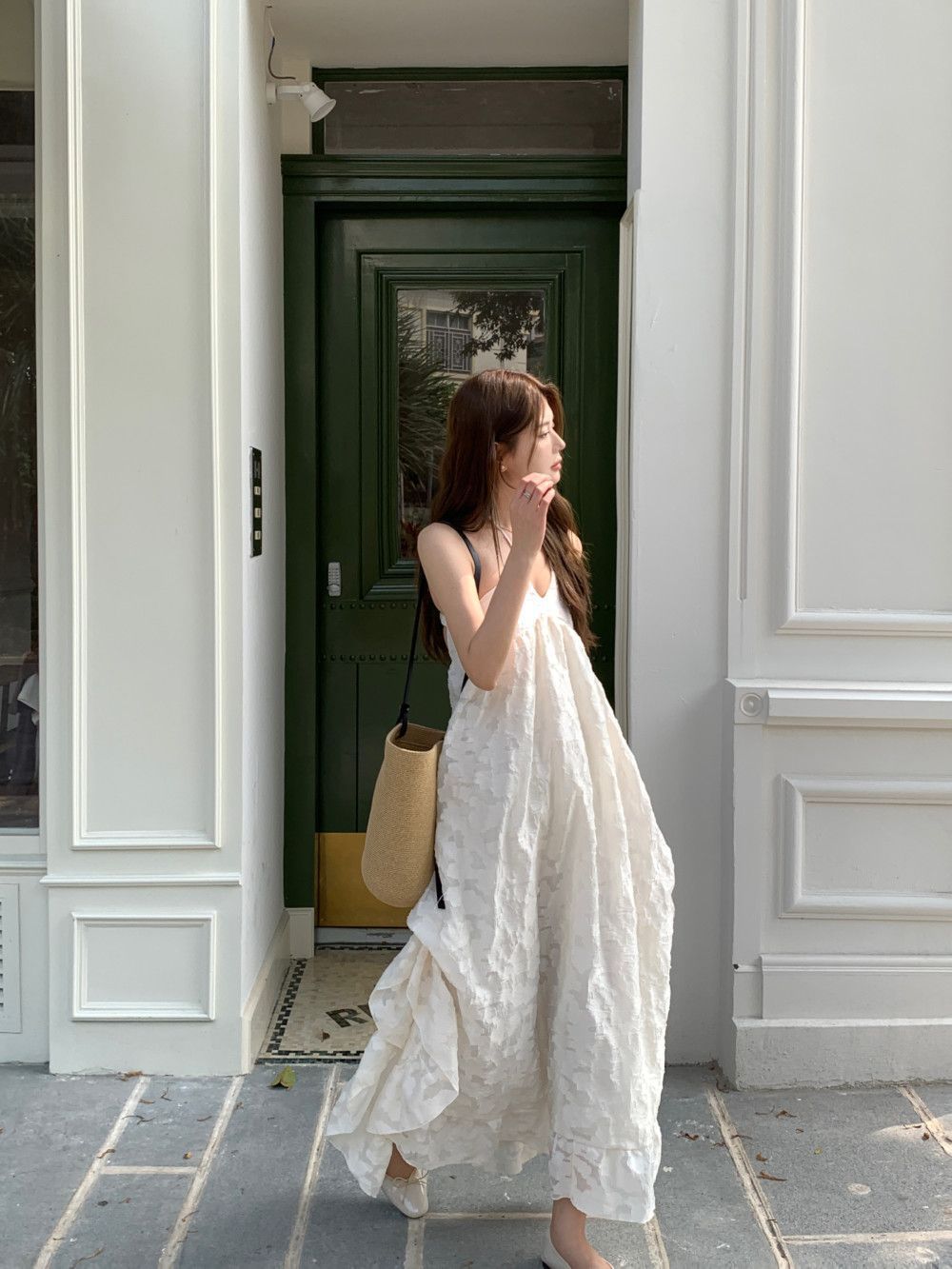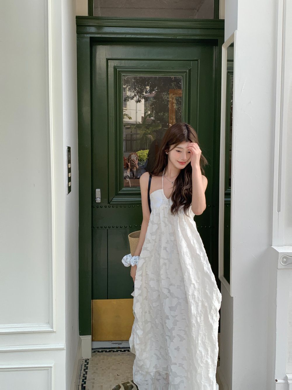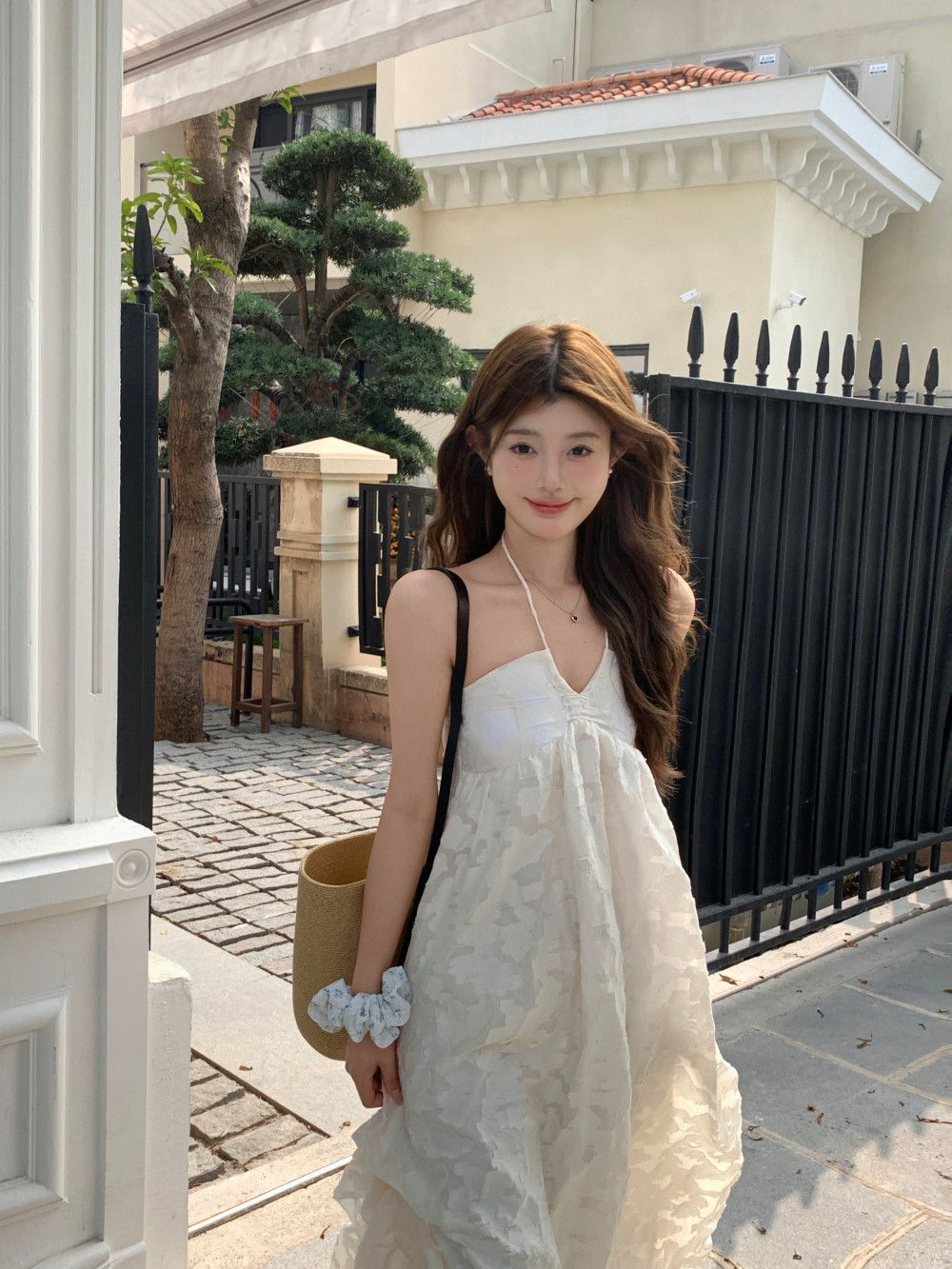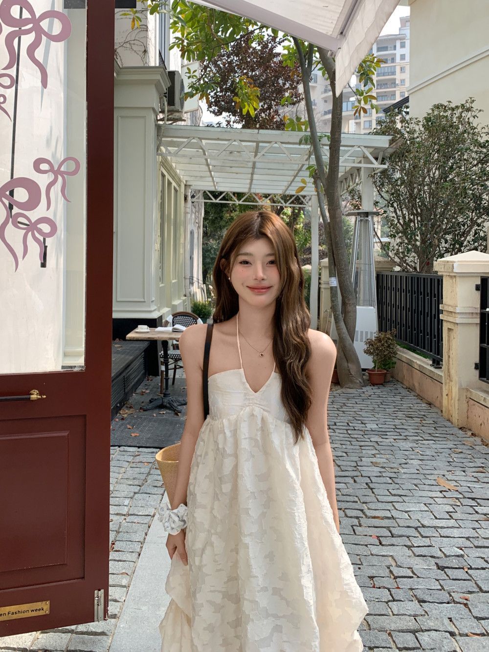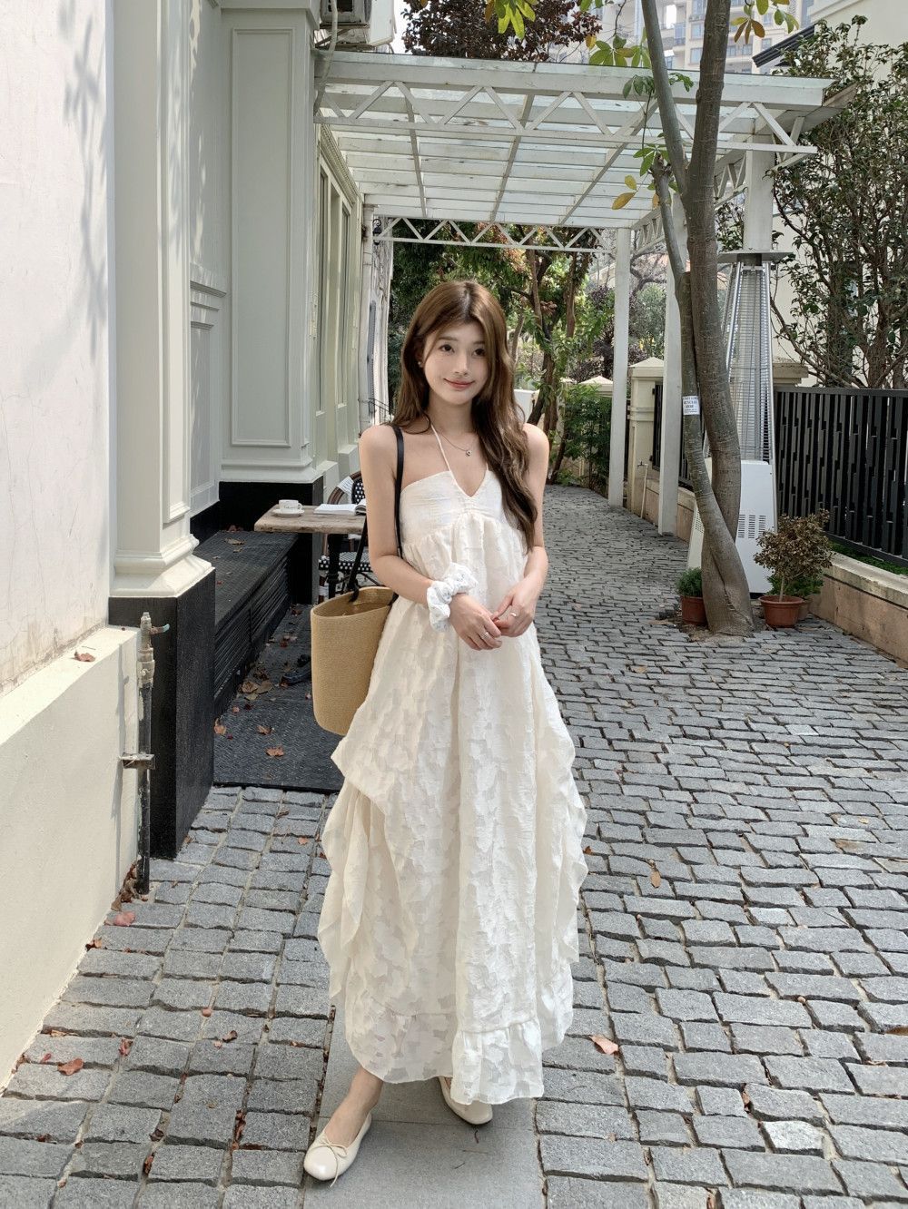 프랑스 스타일 목 원피스 여성 여름 해변 휴가 백리스 긴 원피스 슈퍼 페어리 우아한 루즈 A 라인 스커트스토어 가기