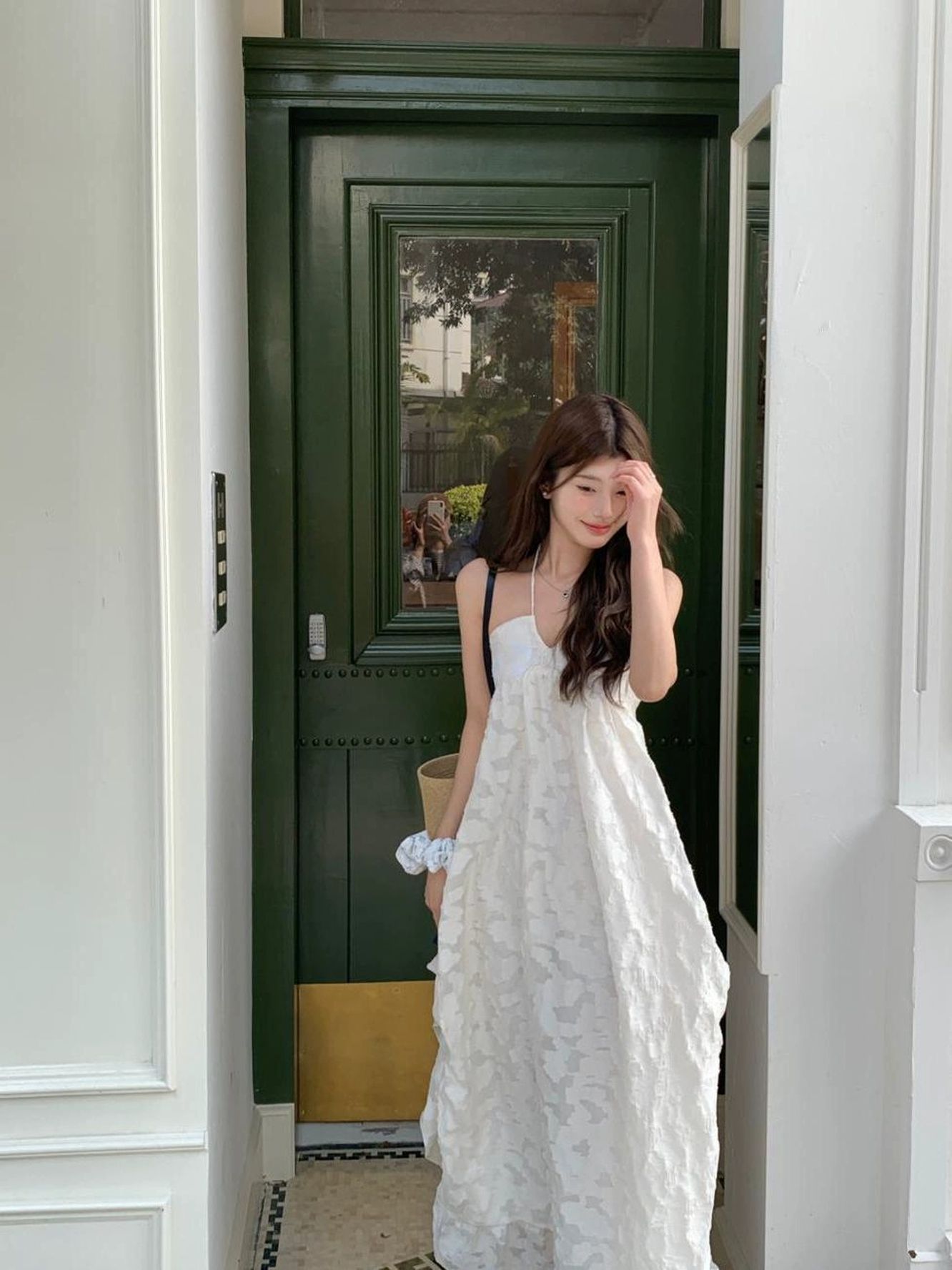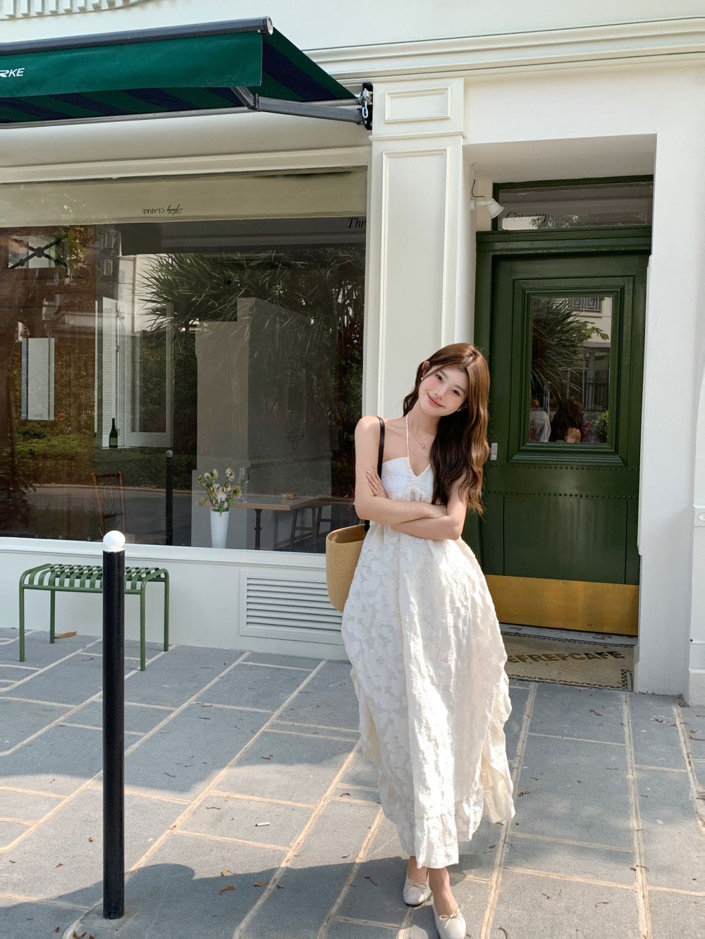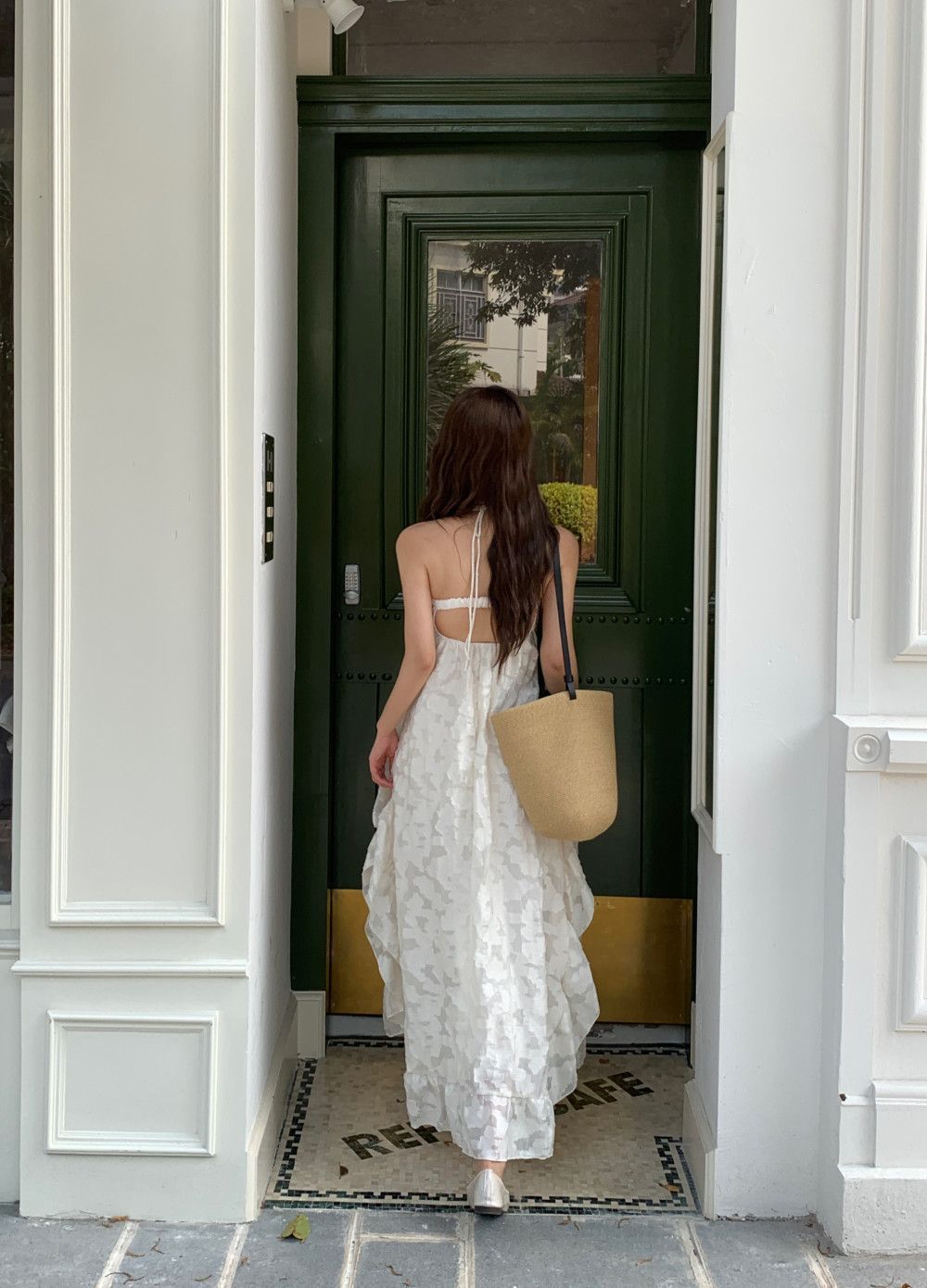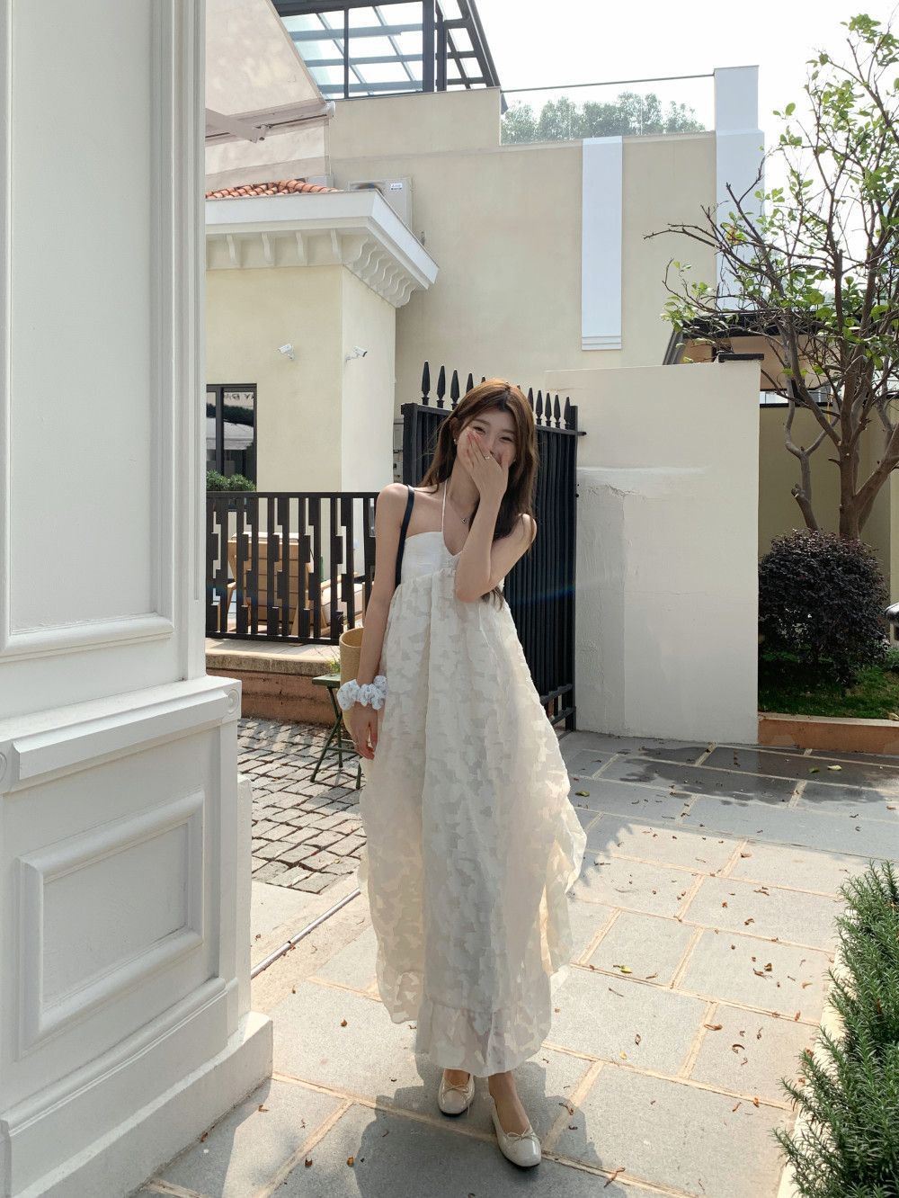 프랑스 스타일 목 원피스 여성 여름 해변 휴가 백리스 긴 원피스 슈퍼 페어리 우아한 루즈 A 라인 스커트스토어 가기