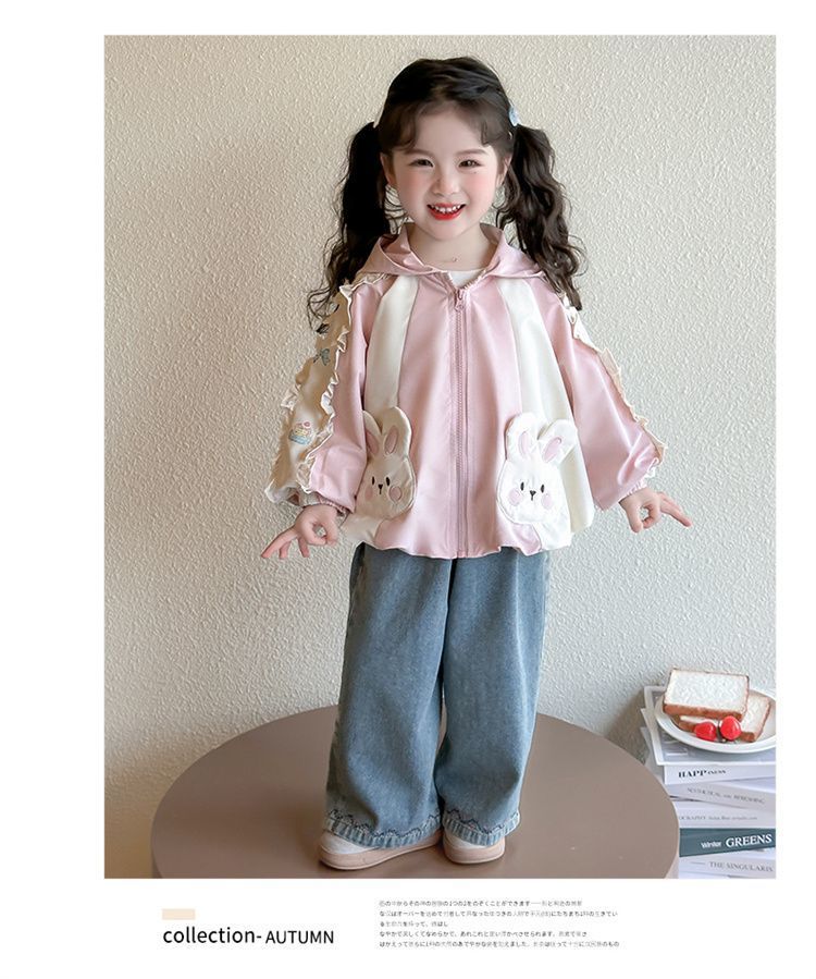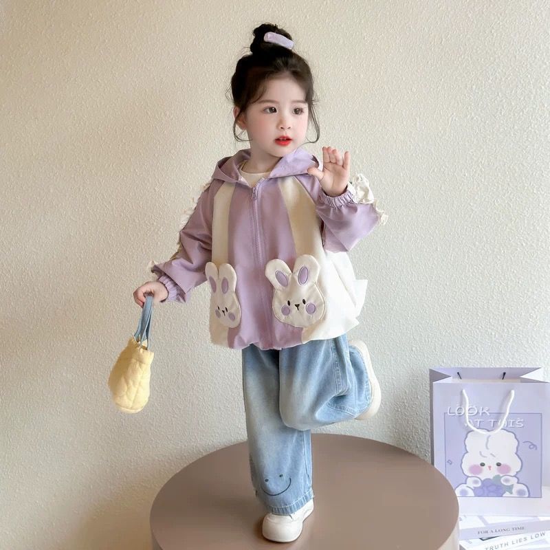 여자 코트 봄 2025 새로운 스타일 어린이 토끼 귀 만화 후드 탑 아기 소녀 봄, 가을 옷스토어 가기