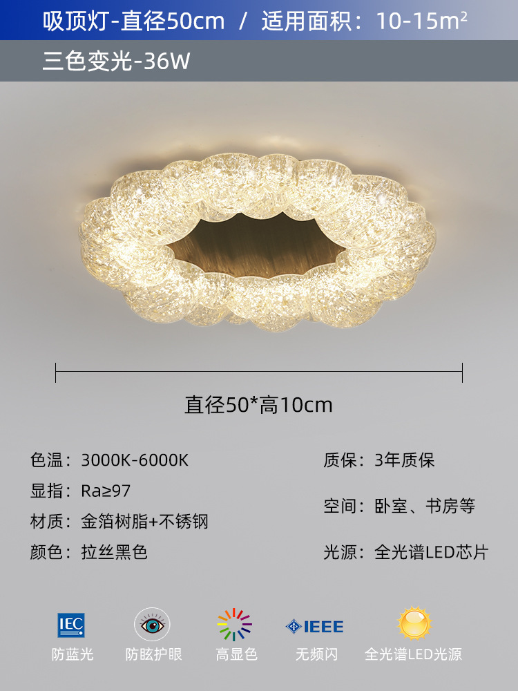 침실 램프 새로운 입장 고급 수지 천장 램프 전체 스펙트럼 눈 보호 간단한 현대 마스터 침실 책방 중산 램프