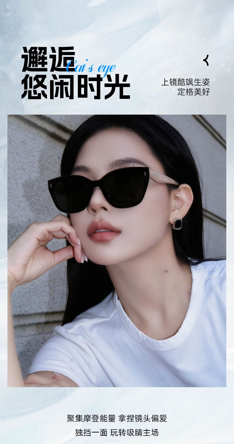 2025 새로운 대형 프레임 플랫 한 고양이의 눈 선글라스 여성의 UV400 나일론 편광 고화질 선글라스 8005스토어 가기