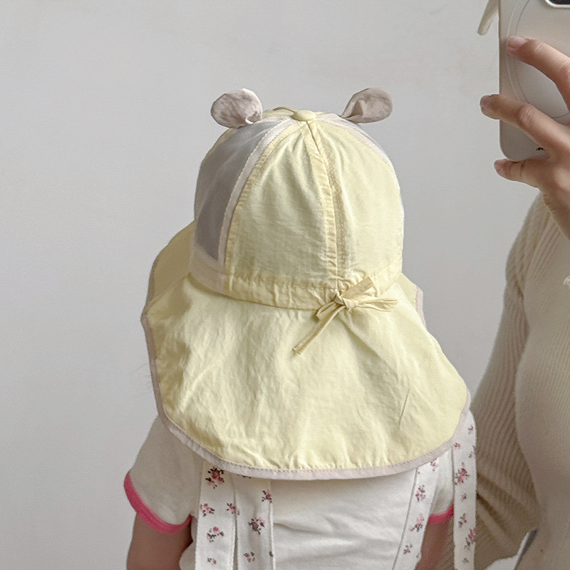 아기 모자 봄과 여름 얇은 속건성 통기성 어부 모자 유아 및 어린이 목 보호대가 있는 양산 모자 태양 보호 모자 한국어