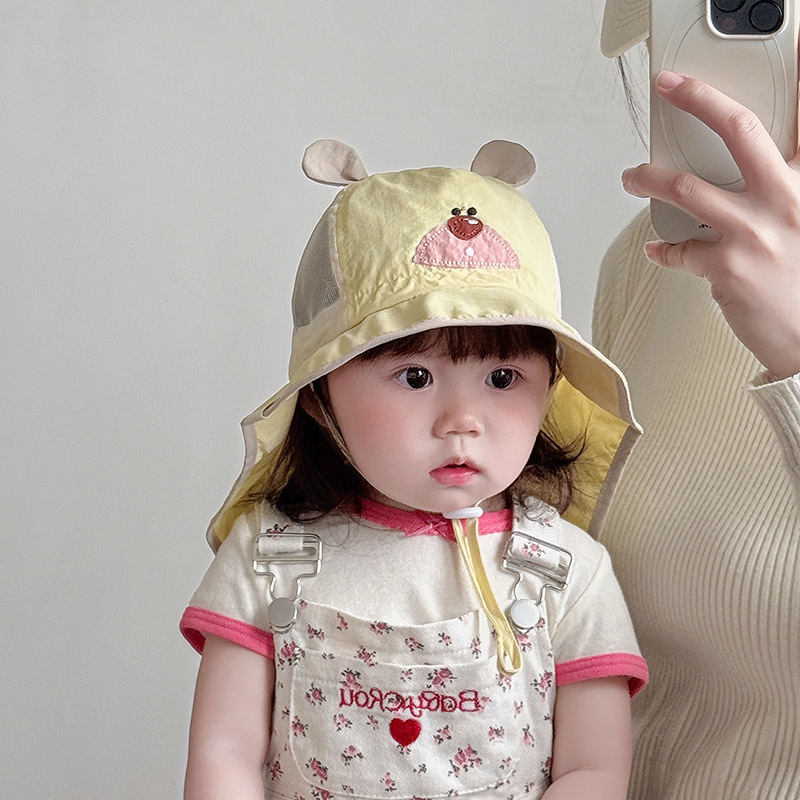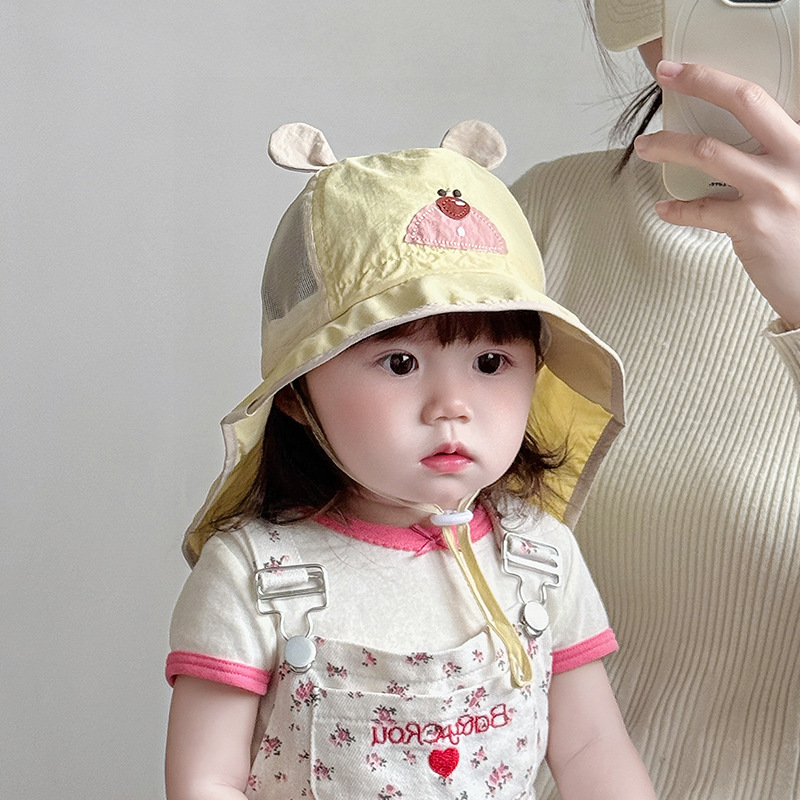 아기 모자 봄과 여름 얇은 속건성 통기성 어부 모자 유아 및 어린이 목 보호대가 있는 양산 모자 태양 보호 모자 한국어스토어 가기