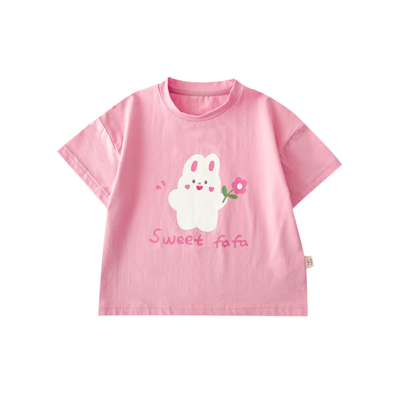 Wulibuyi 소녀 만화 토끼 티셔츠 아기 한국어 스타일 귀여운 반팔 티셔츠 여름 어린이 다목적 탑