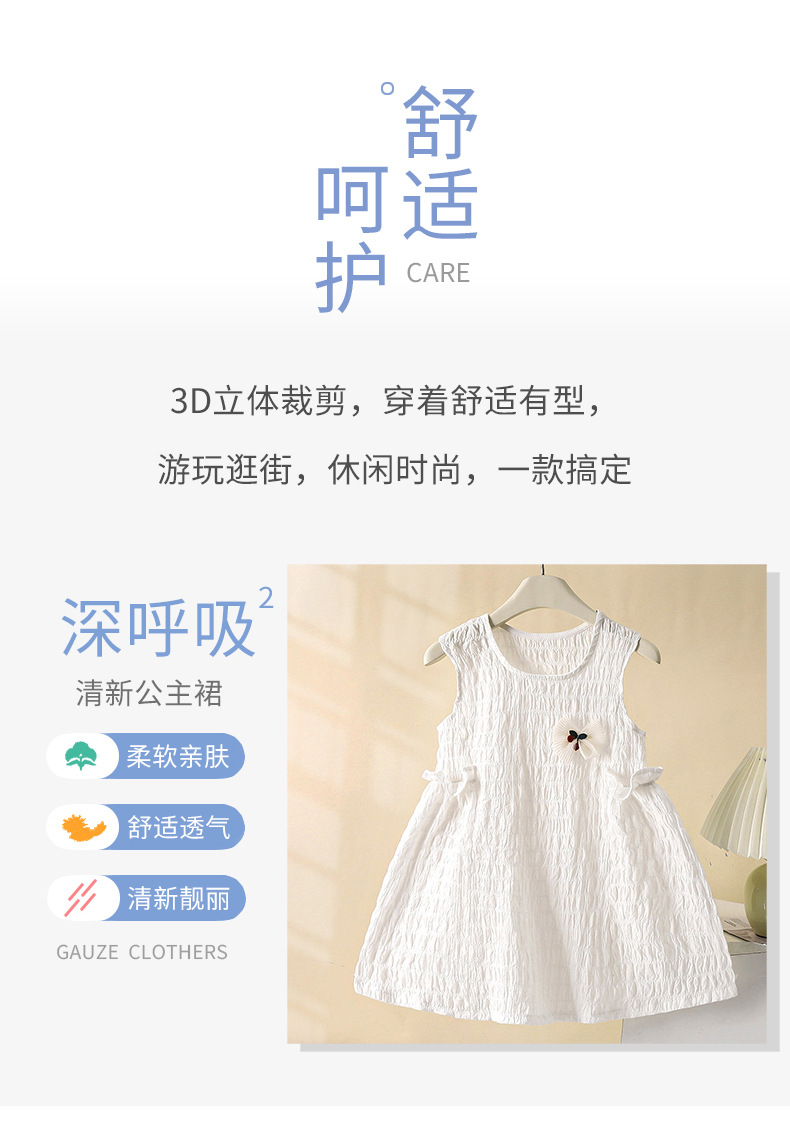 새로운 여자 민소매 원피스 아기 여름 멋진 통기성 조끼 공주 원피스 단색 구름 면화 원피스스토어 가기