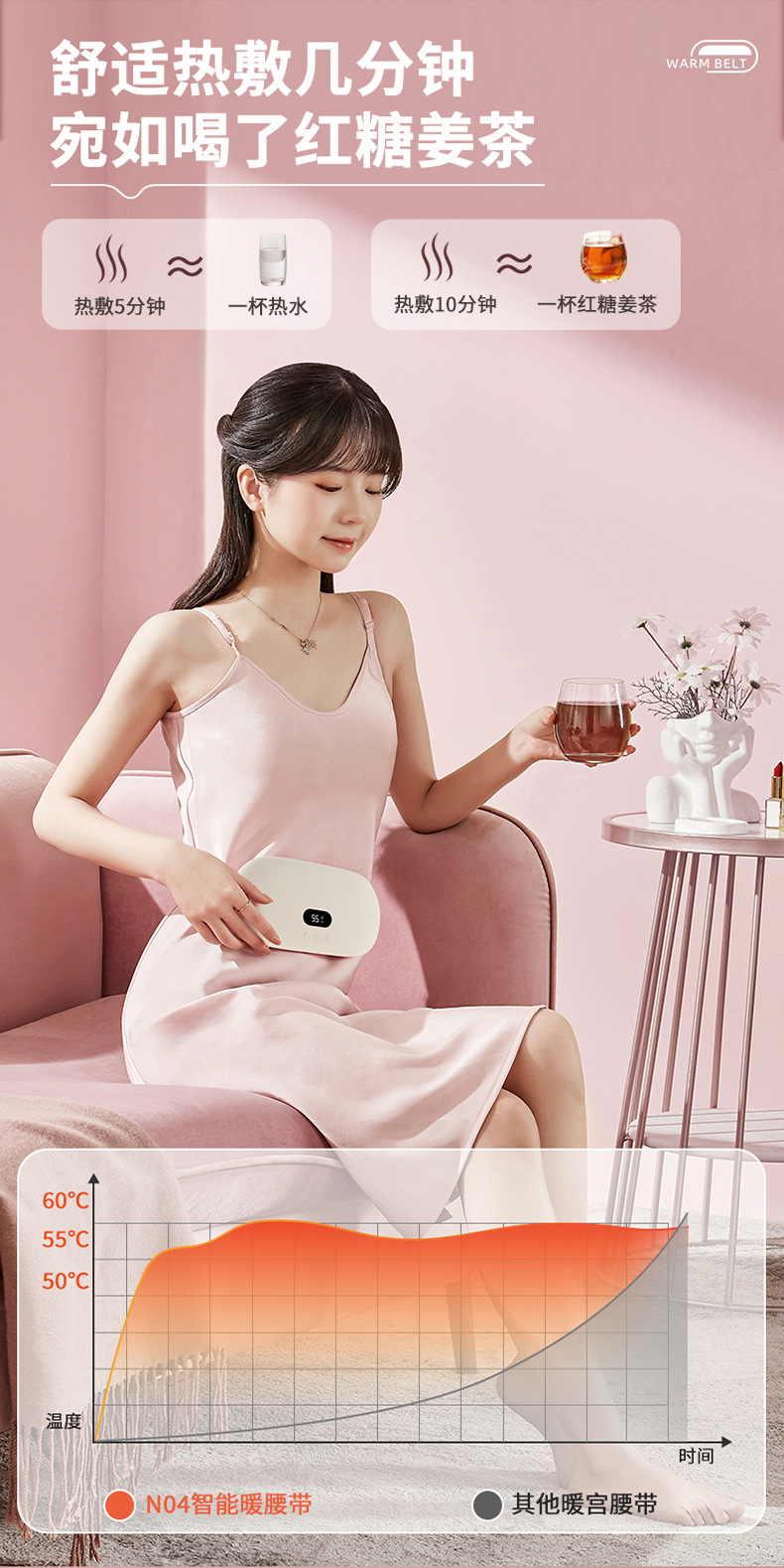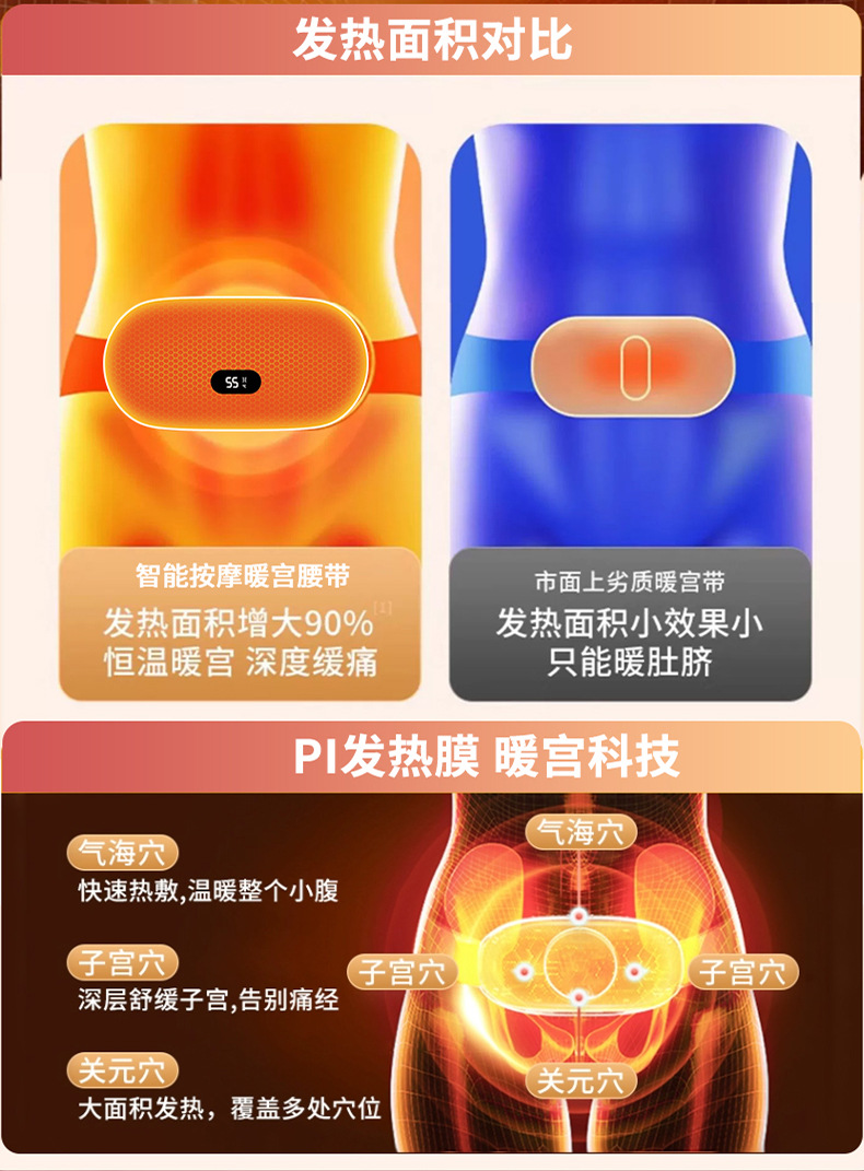 Su Mi의 새로운 따뜻한 궁전 벨트 디지털 디스플레이 큰 이모 아티팩트 USB 뜨거운 압축 따뜻한 궁전 보물 그래 핀 난방 따뜻한 궁전 벨트스토어 가기