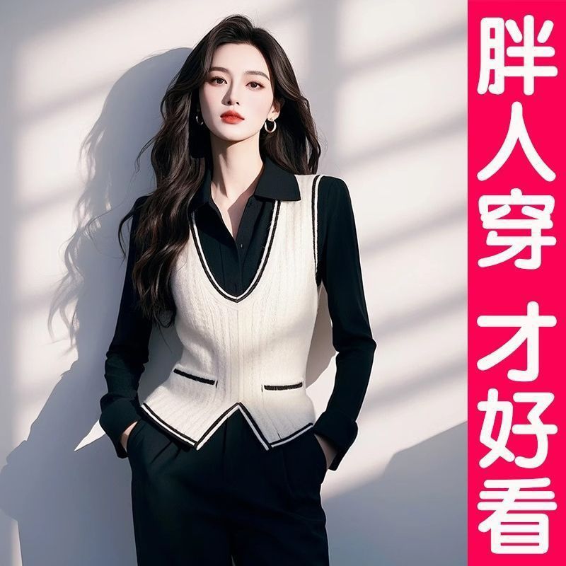 플러스 사이즈 통통녀 올해 폭발 조끼 스웨터 여성 2025 년 봄 새 접힌 조끼 느슨한 슬림 재킷