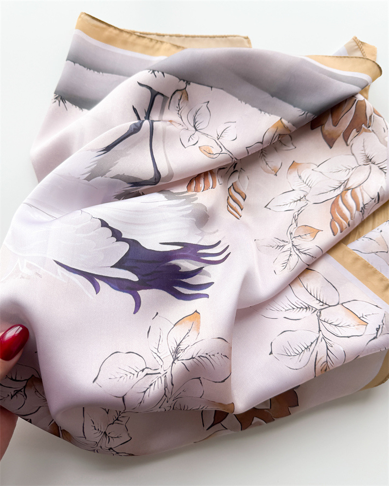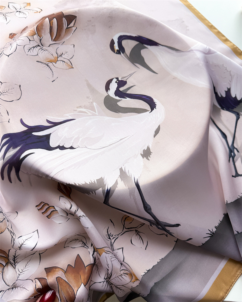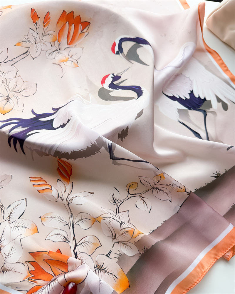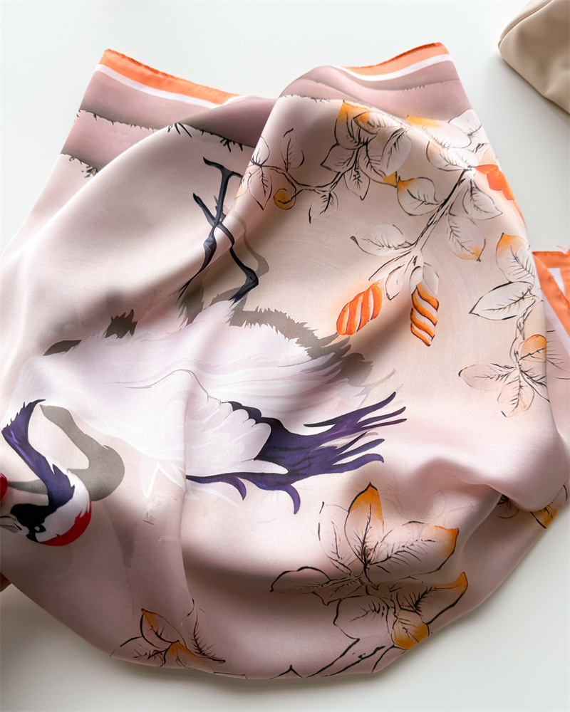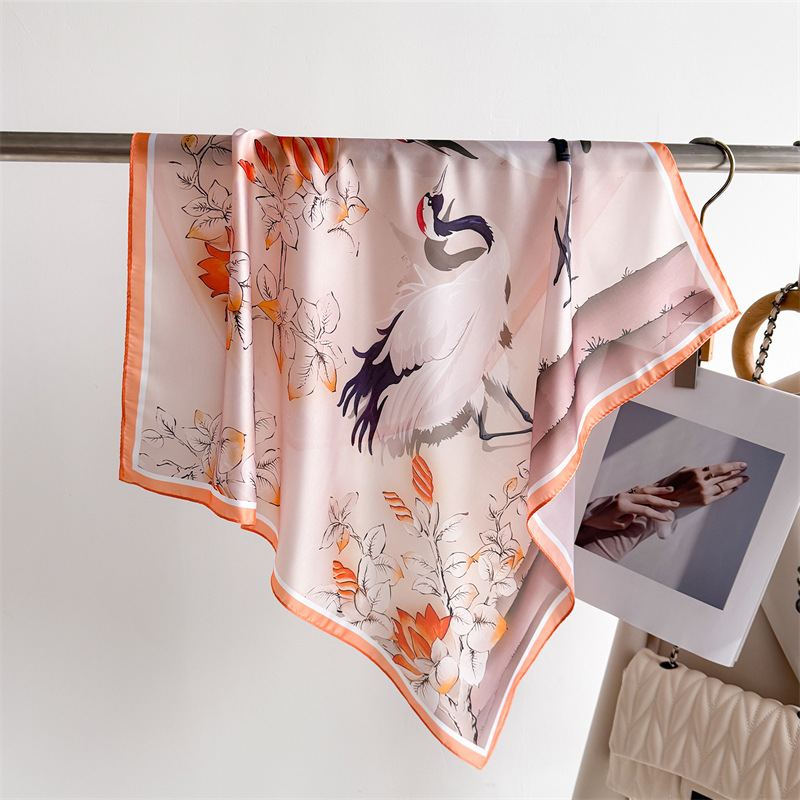 70cm 작은 광장 스카프 실크 스카프 봄 여름 Danfeng 크레인 인쇄 스카프 전문 올 매치 스카프