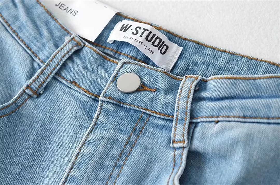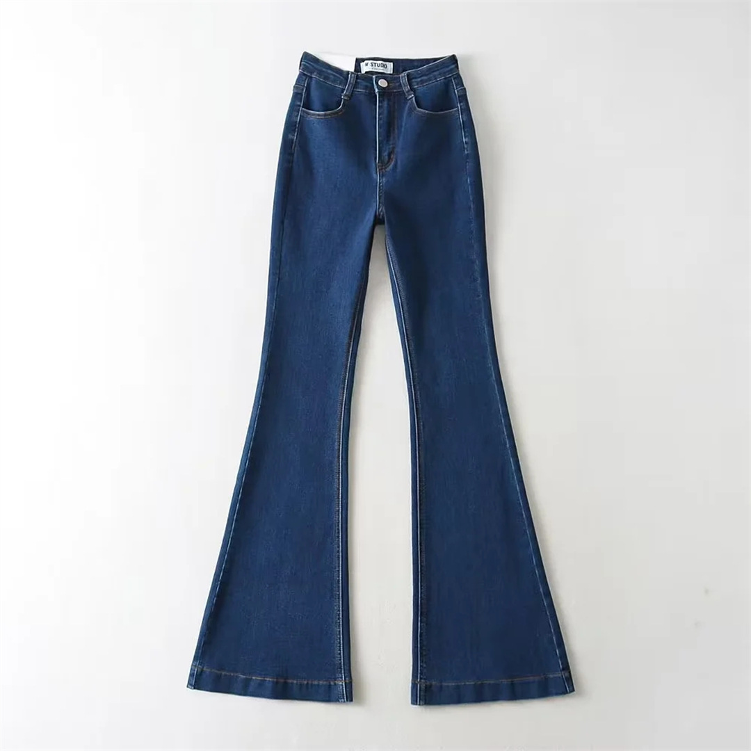 높은 허리 단단한 뿔 데님 바지 여성 복고풍 봄과 가을 새로운 스트레치 슬림핏 긴 다리 다리 바지스토어 가기